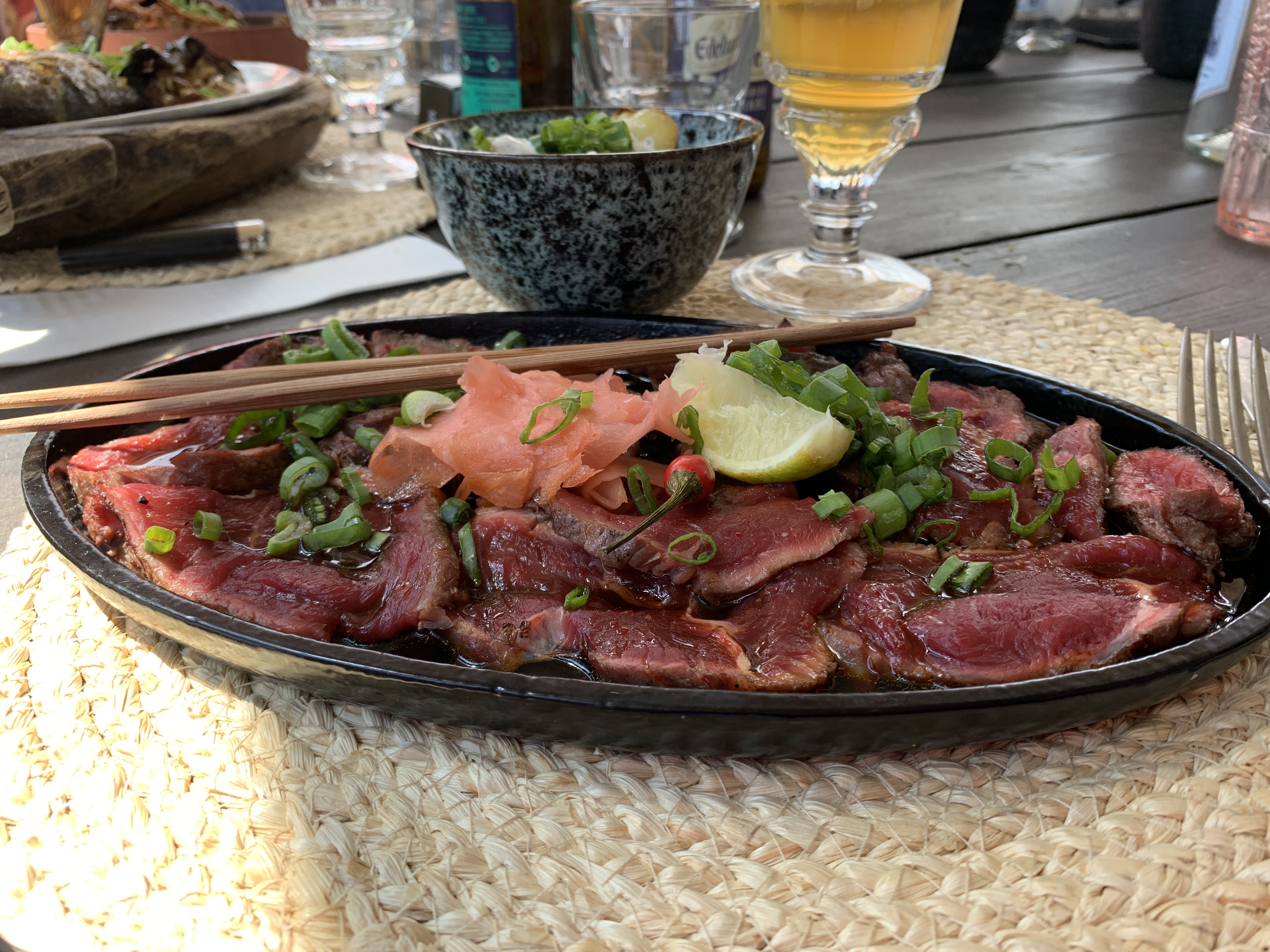 Beaucoup trop cher . Très joli spot . jolie déco . Excellent accueil en juin . Prix beaucoup trop élevés mais on mange sur la plage . La salade du tigre qui pleure est décevante , surtout pour 34€ le poisson a 38€ .