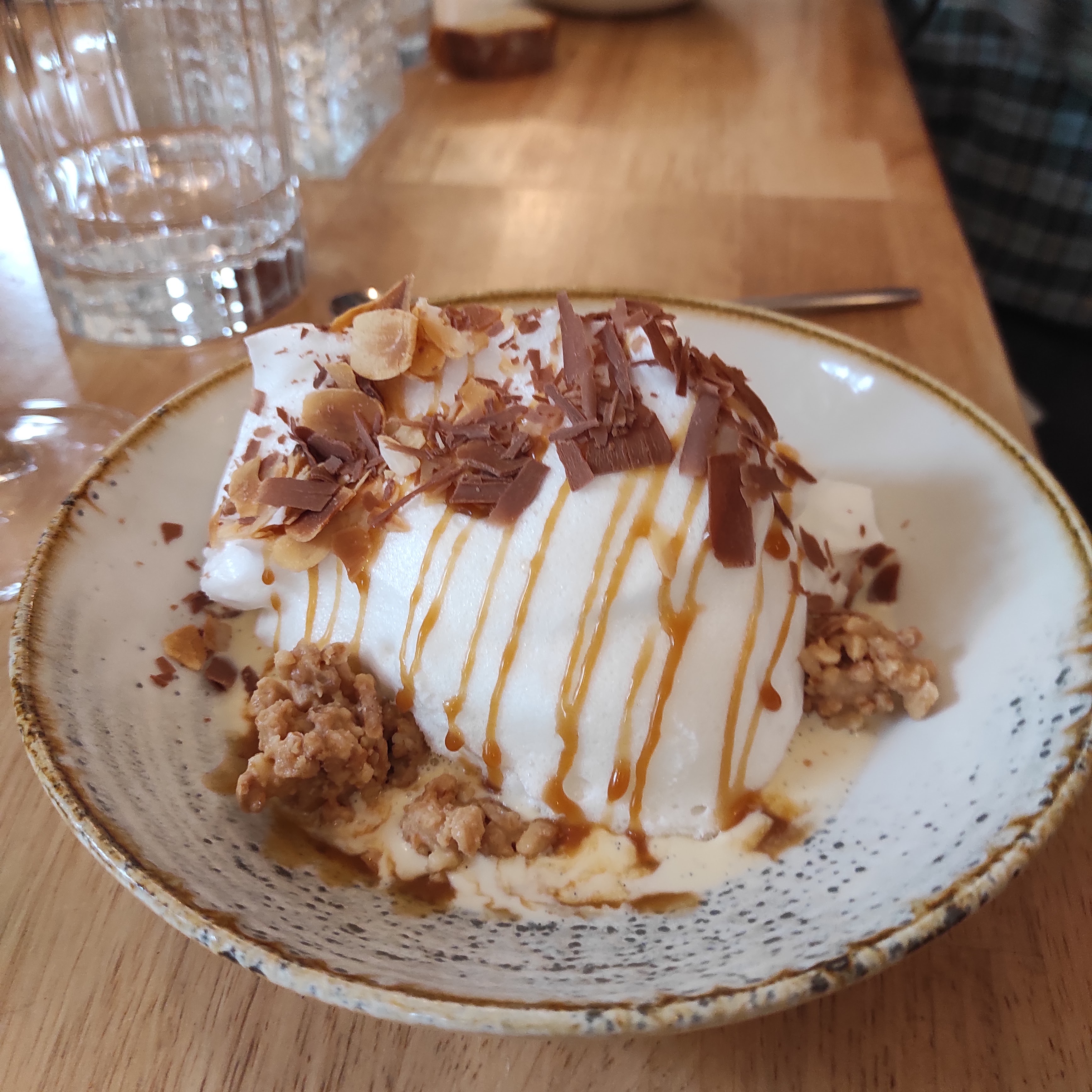 Le menu du déjeuner à cet endroit était fantastique. Nous avons commandé deux repas à 2 plats, une entrée/plat et un plat/dessert. Je les ai tous partagés. L'entrée en terrine de saumon était tout simplement merveilleuse. Le plat végétarien et le plat de poisson étaient excellents, avec une belle purée de carottes et d'autres légumes. Voici une photo du dessert glacé, qui était également délicieux.