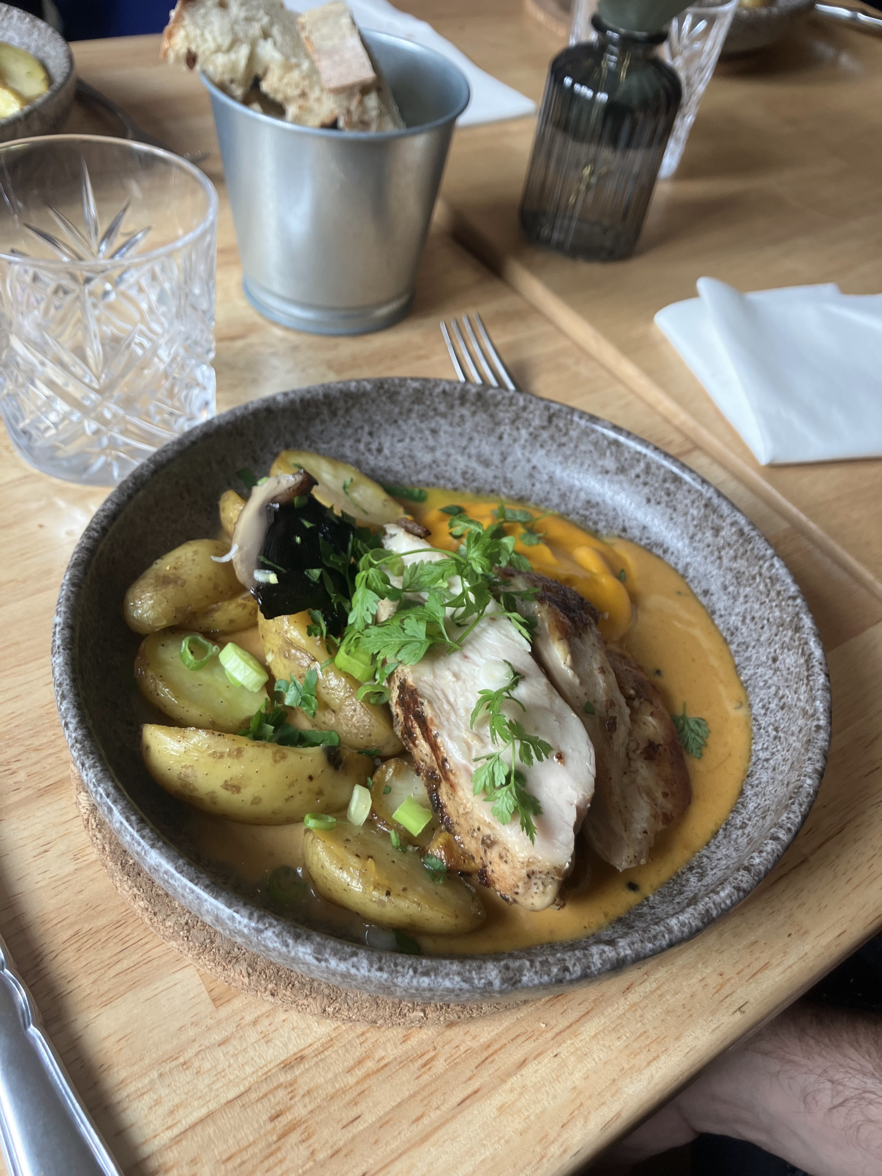 Décor chaleureux, carte restreinte avec un menu entrée-plat-dessert à 21 euros avec à chaque fois une option végétarienne et sans gluten. Des produits frais, très bien cuisinés et présentés. Un régal !