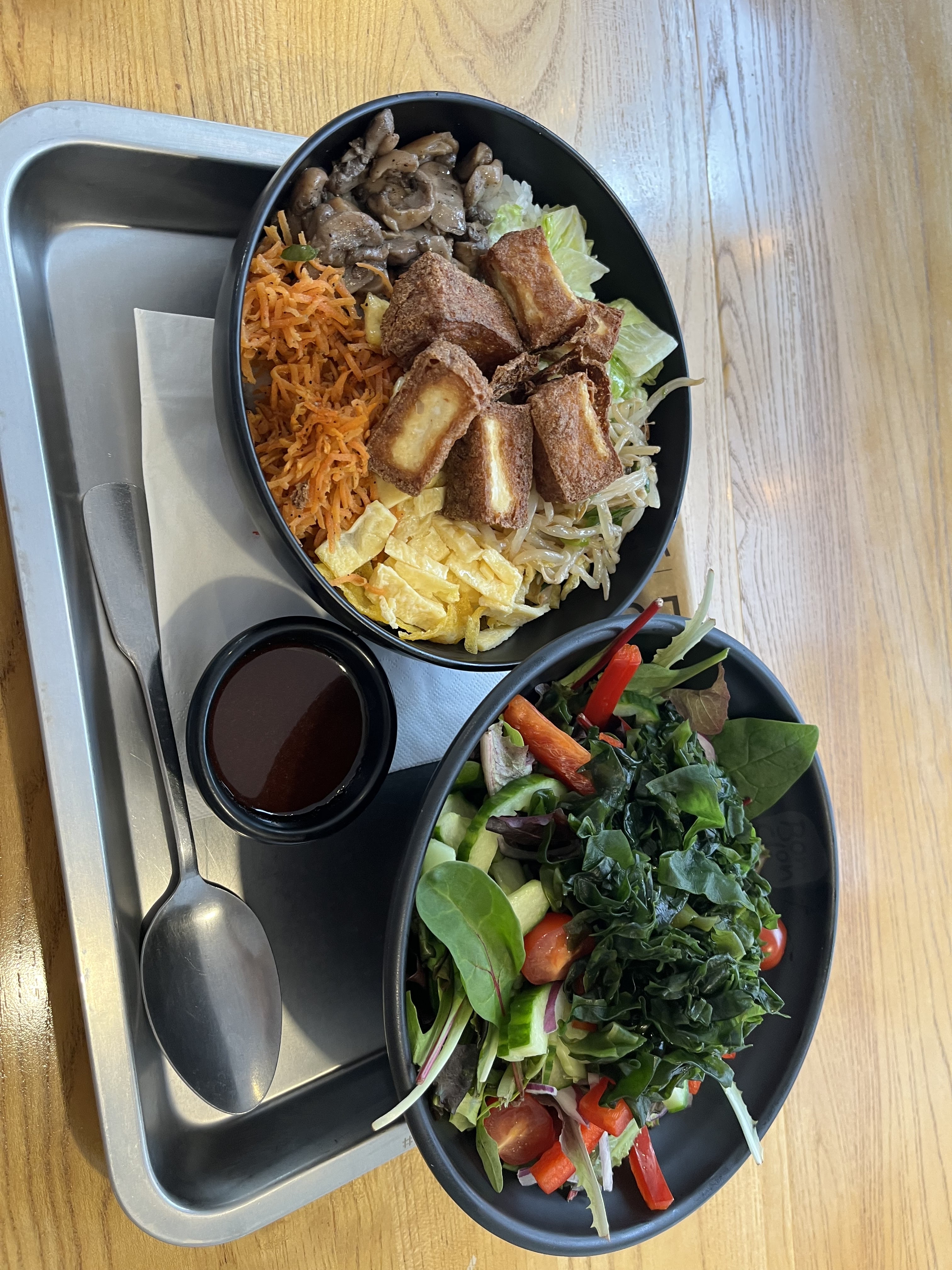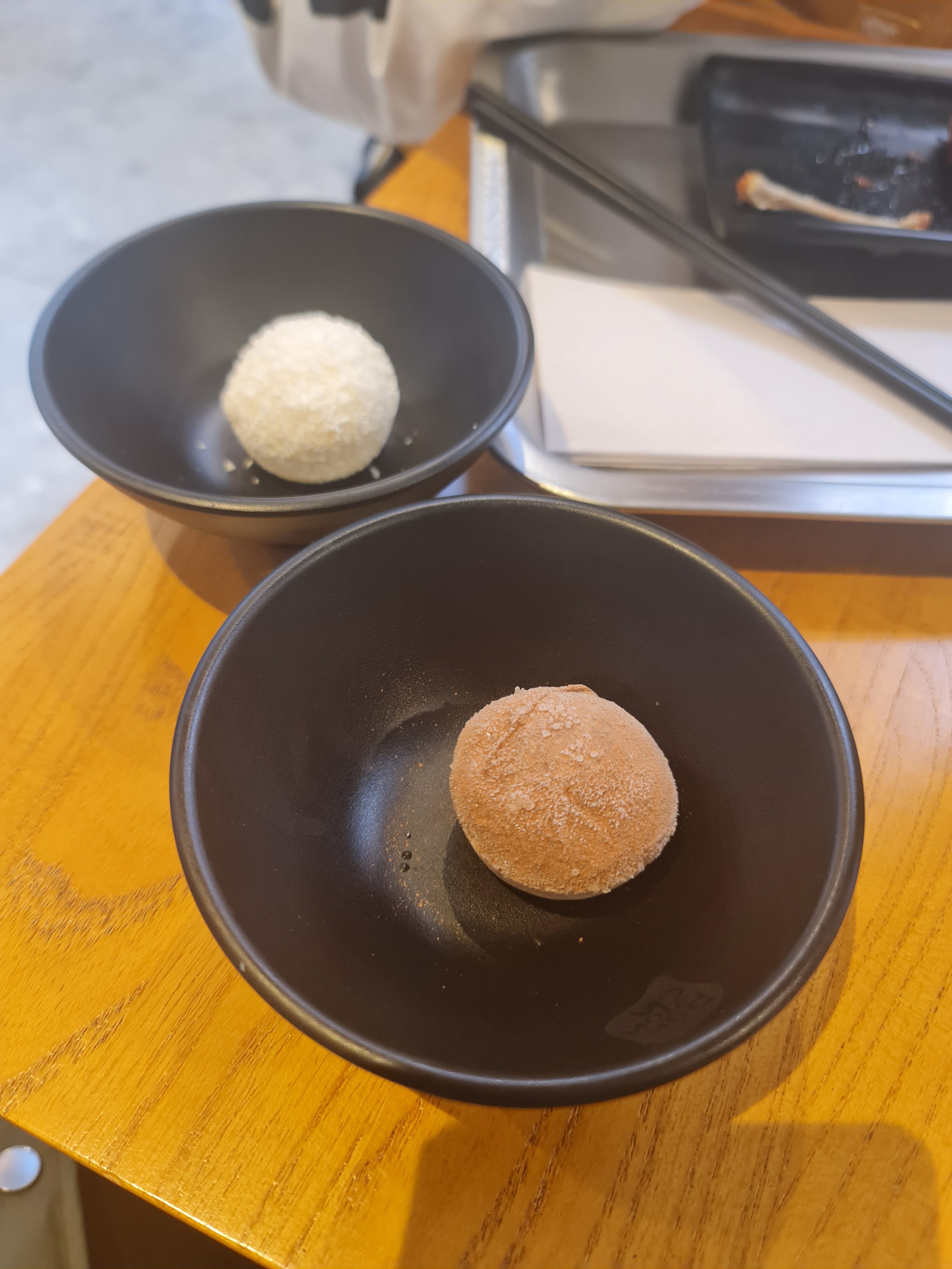 Pas ouffissime. La salade au tofu était correcte avec une sauce bien relevée servie à côté ce qui est vraiment appréciable mais le tofu était un peu trop gras. Les frites étaient trop molles et avec un goût d’huile. Vraiment pas aimé. Bon mochis. Note très salée : 20€40