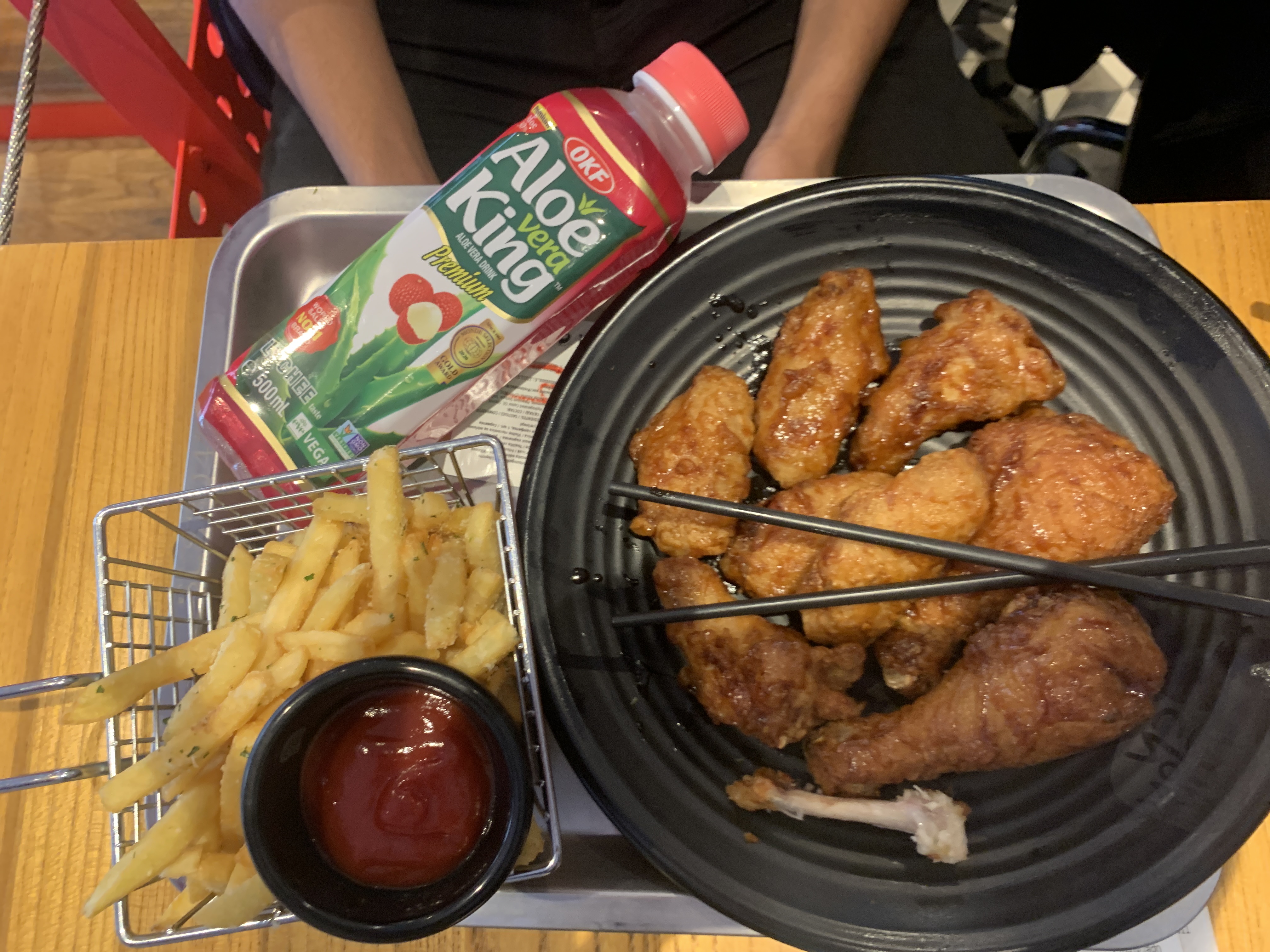 J’ai pris un mix de poulet XXL (suffisant pour 2-3 personnes). Le poulet était tendre à l’intérieur et croustillant à l’extérieur et avait bon goût avec la sauce de soja à l’ail. En revanche, le poulet était mal assaisonné et certains morceaux trop salés et d’autres pas assez. Les accompagnements n’étaient pas terribles : les frites avaient une bonne texture mais un arrière goût et les radis n’étaient pas vinaigrés mais seulement sucrés. Nous avons également commandé du poulet, cette fois-ci avec de la sauce piquante, et on ne sentait QUE le goût du piment, qui n’est pas très subtil et qui couvrait toute la saveur du poulet (je ne parle pas du niveau de piment mais bien de la saveur) Le service était très rapide (5min environ) Globalement, bon potentiel même si certains aspects pourraient être améliorés