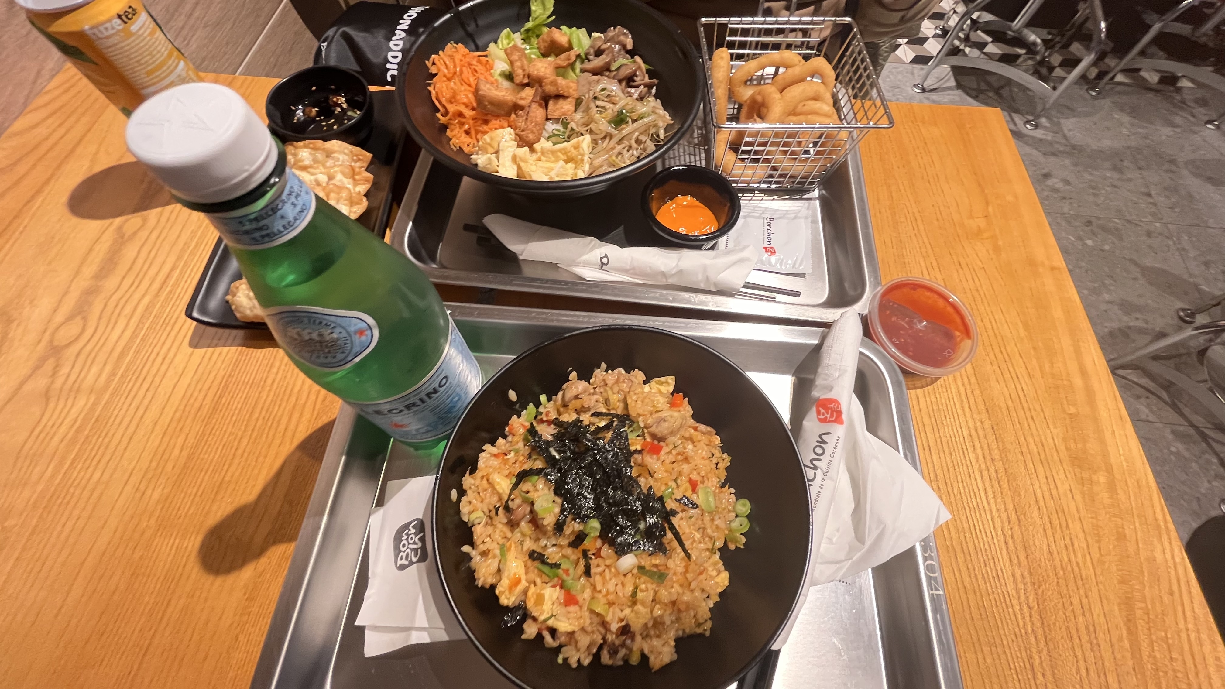 Le poulet frit est excellent je conseille après le bibimbap n’est pas le meilleur que j’ai mangé et pas assez de place assise sinon dans je conseille quand même