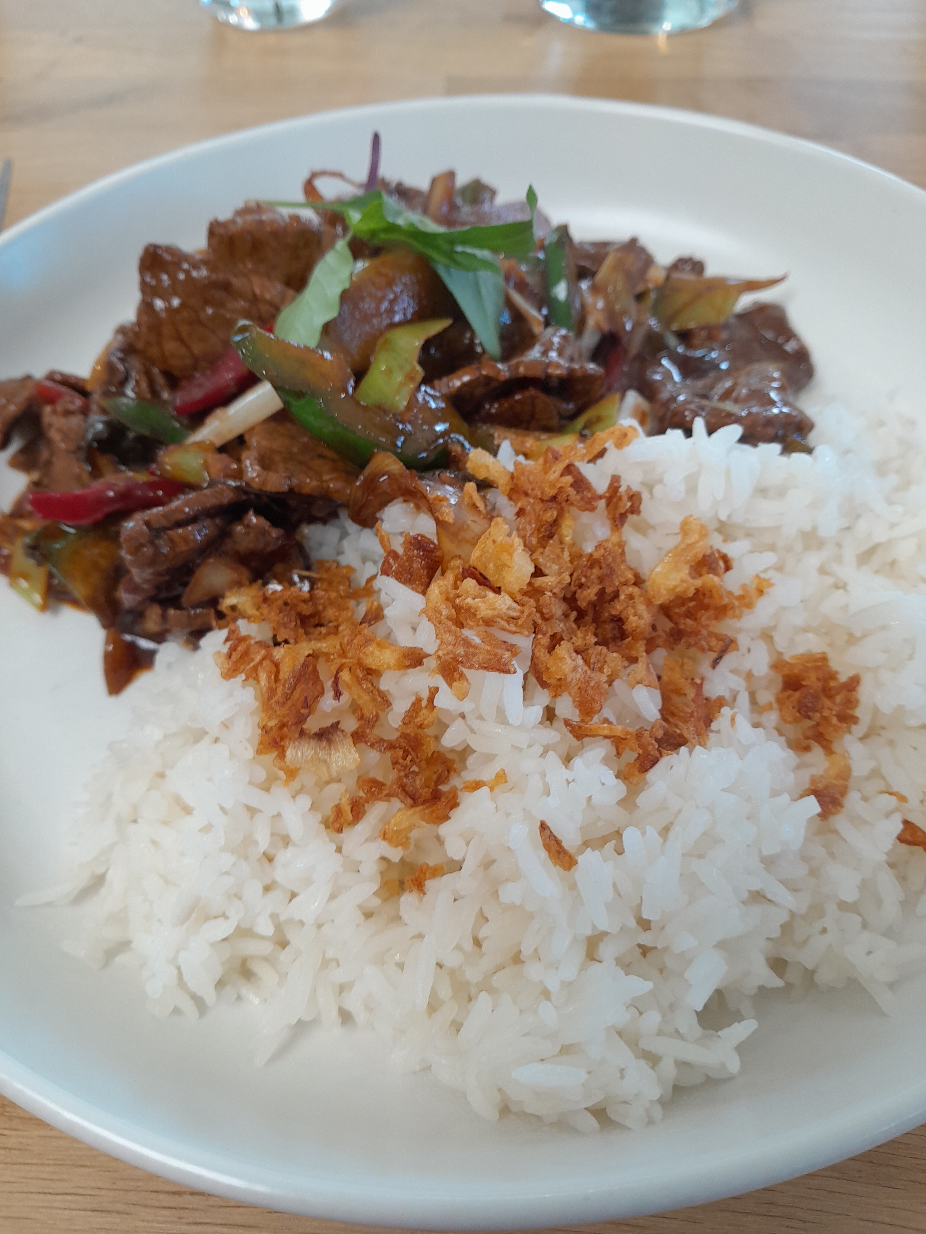 21h retour du boulot et nous avons envie de nous faire plaisir en terrasse et manger Asiatique. Une belle surprise pour nous, un accueil comme en Asie. Sourire, bienveillance, gentillesse et dans l'assiette un délicieux voyage vers le Cambodge, Thaïlande, Vietnam... - Porc au caramel délicieux et très parfumé. - Loc Lak très bon avec la petite sauce citron et poivre noir, cela fond dans la bouche. - Masi Goreng parfum, copieux et coloré Merci pour votre accueil et à très bientôt. Recommandé les yeux fermés