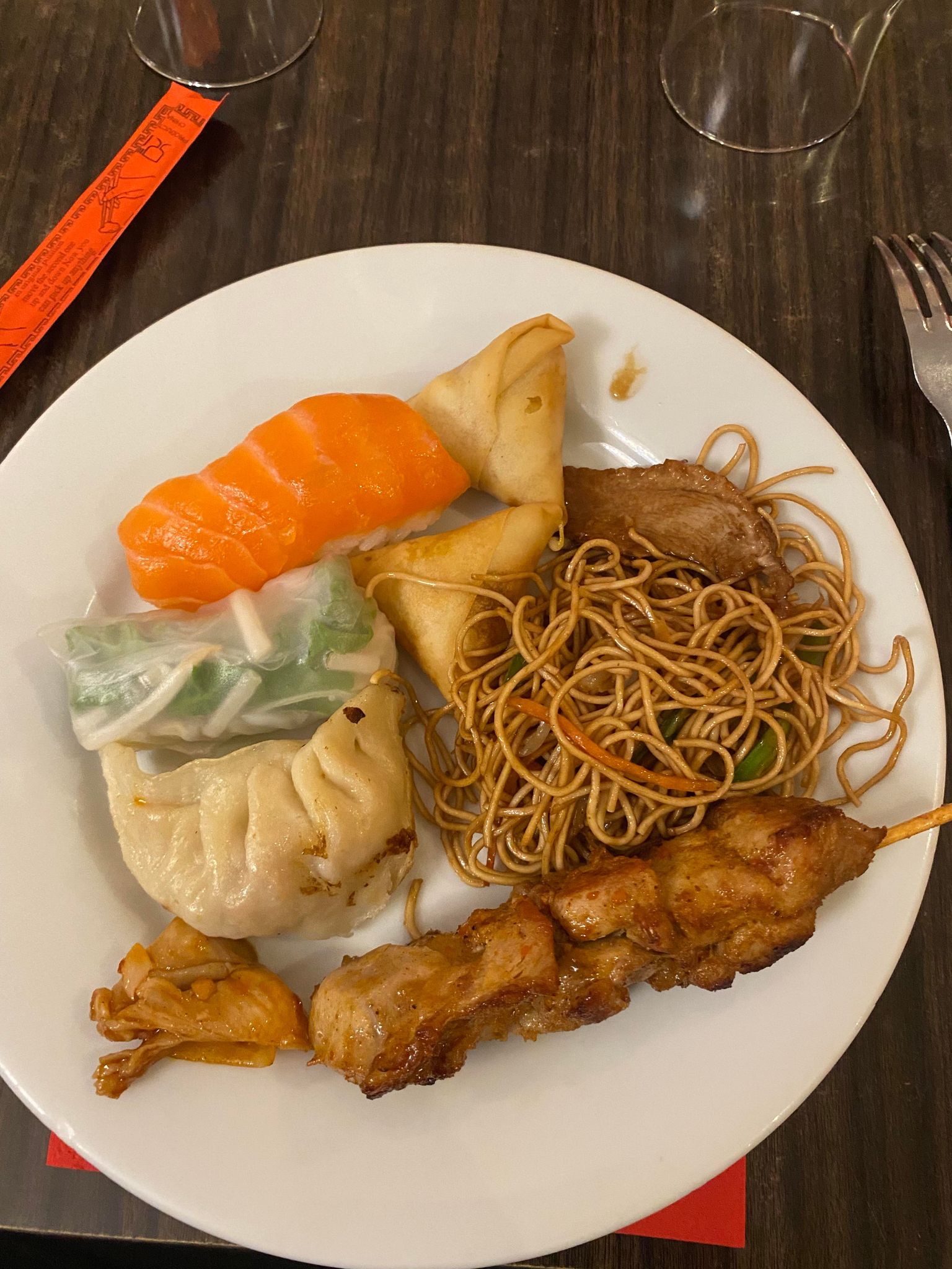 Belle surprise ! Un grand choix dans le buffet, japonais, chinois ou wok et la nourriture est bonne, nous avons trouvé notre restaurant asiatique ! De plus, la grosse affluence d'un samedi soir est géré avec beaucoup de professionnalisme. Le personnel gère efficacement l'attente et les clients n'hésitent pas à attendre 30min pour avoir leur table (sans réservation) ; ce qui est gage de qualité.