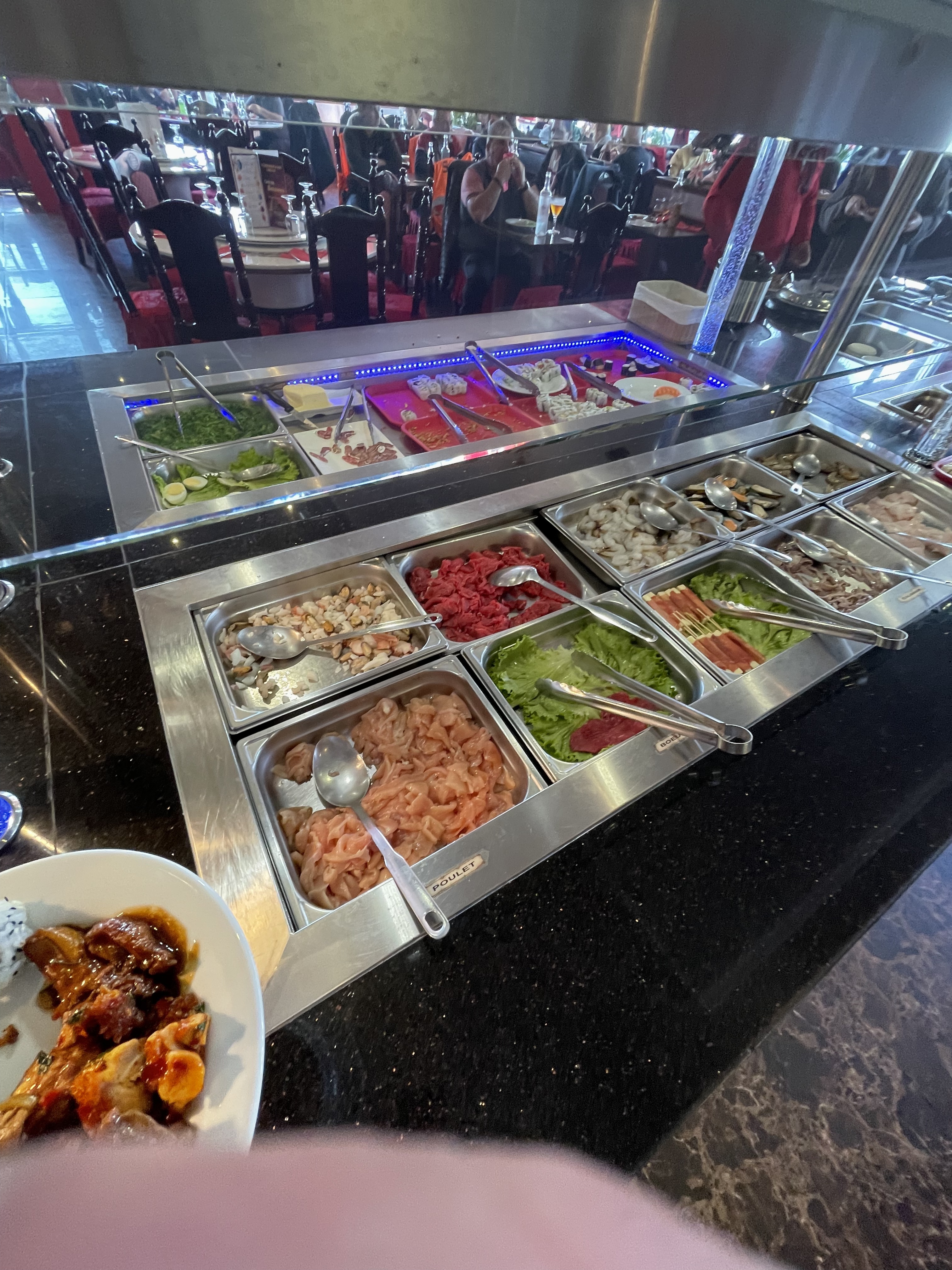 Un buffet exceptionnel, beaucoup de choix et de saveurs, les plats sont chauds et régulièrement approvisionnés. Le cadre est authentique et service très rapide. Les assiettes sont régulièrement débarrassées. Le rapport qualité prix est très bon, et le personnel accueillant et souriant. Aux heures d'affluence, prévoyez d'attendre un peu pour obtenir une table, c'est la rançon du succès pour ce buffet asiatique à volonté. Je recommande !