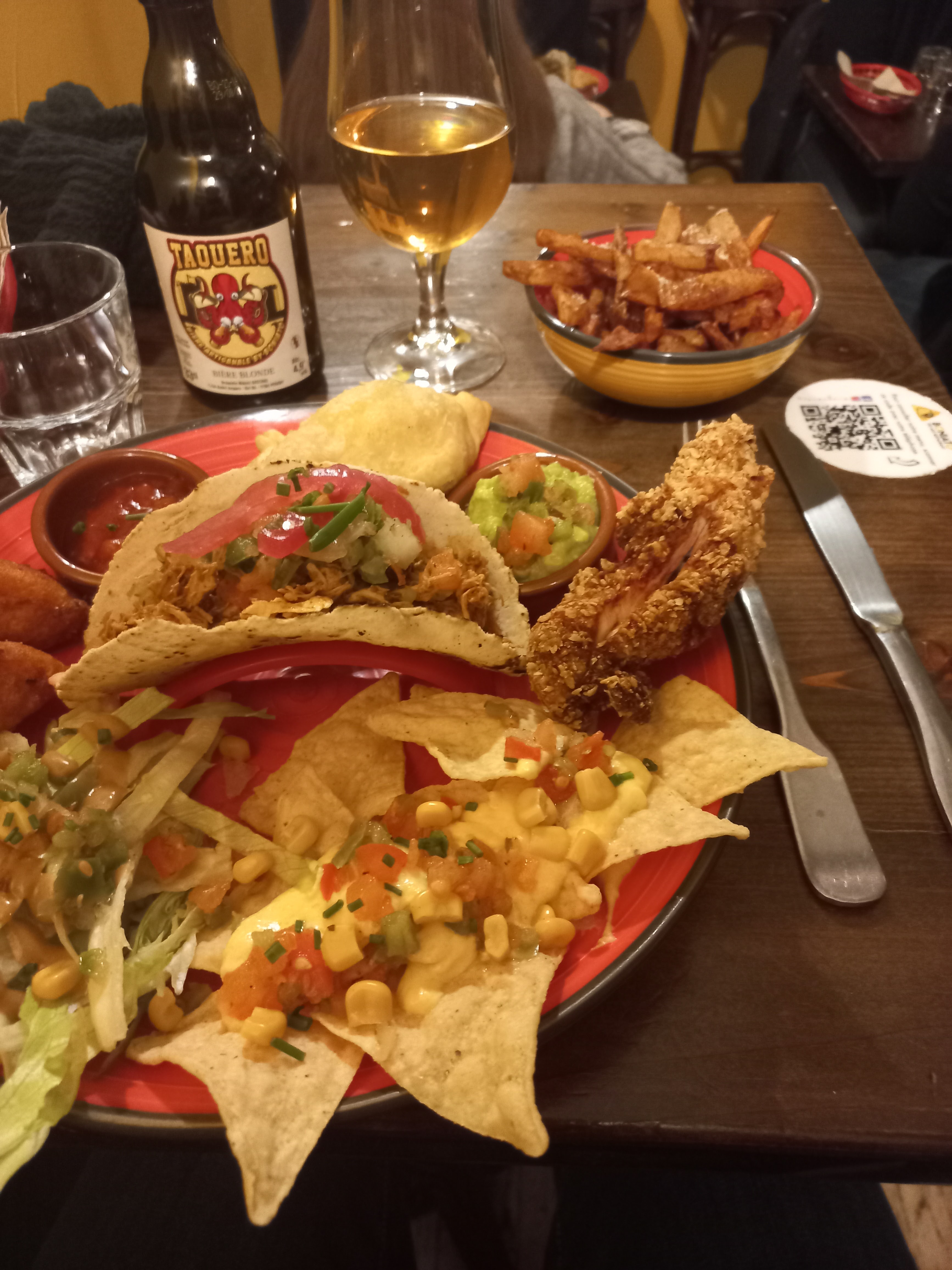 Une très bonne expérience ! Tout était délicieux, les nachos et les tacos, un régale ! Rapport qualité/quantité/prix plus que raisonnable. Et le serveur super sympa, avenant et souriant ! Je recommande vivement :)