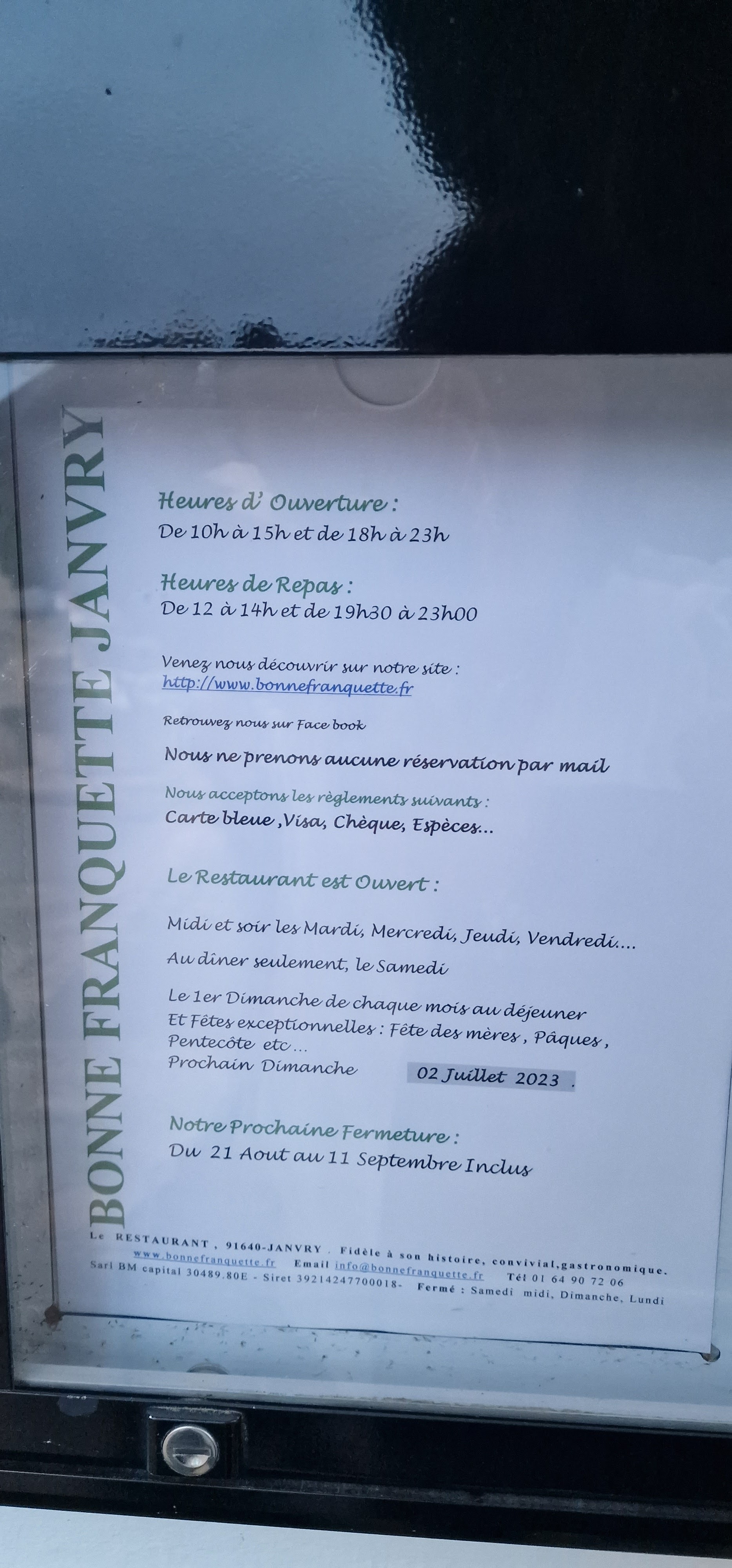 Voici toutes les informations sur le Restaurant Bonne Franquette Janvry qui ce trouve au 1 Rue du Marchais, 91640 Janvry (91). Sur cette fiche vous trouverez les photos, l'adresse, les horaires d'ouverture, le numero de téléphone et les avis clients.Vous pouvez églement rédiger un avis si vous le souhaitez en bas de page.