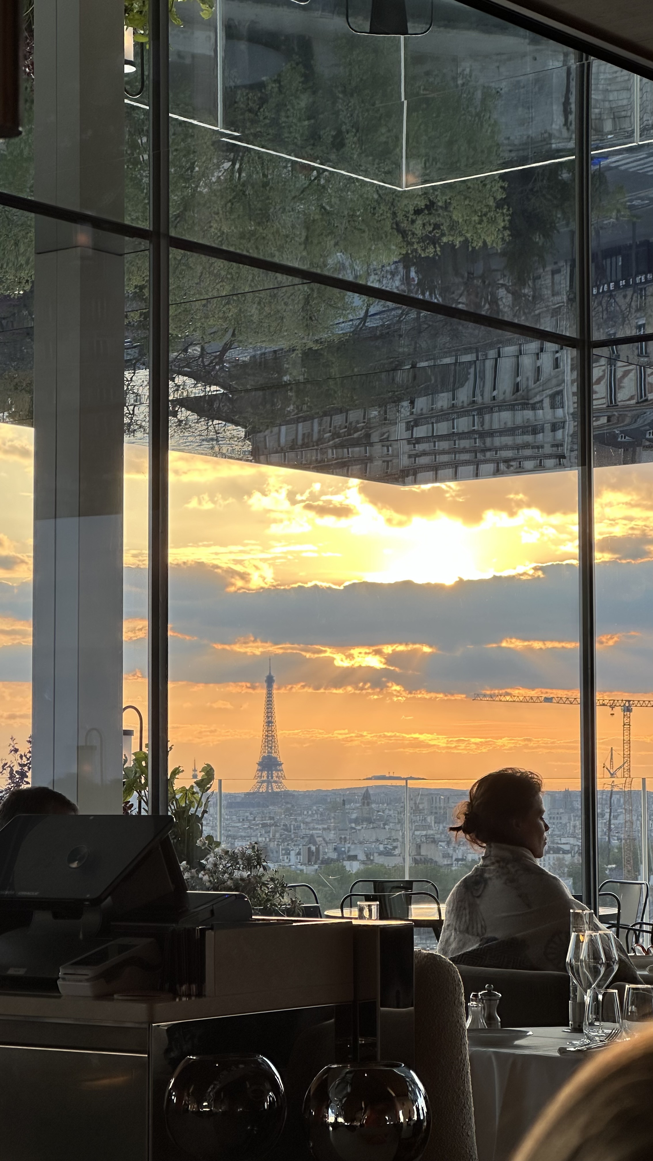 Un magnifique diner entre mère et fille. Nous avons été très bien accueilli par l'hôte, puis notre serveur était au petit soin et de très bon conseil. Le cadre est magnifique avec une vue spectaculaire sur Paris le tout décoré avec goût sur une ambiance musical agréable avec une dj qui mix sur place. La cuisine est excellente, nous avons pris le foie gras et le tartare de boeuf Angus préparé sur place avec les noix de saint-jacques et sa mousseline de patate douce. Gros coup de coeur pour le dessert : l'éclair vanille pécan. Un vrai régal nous reviendrons sans hésitez.