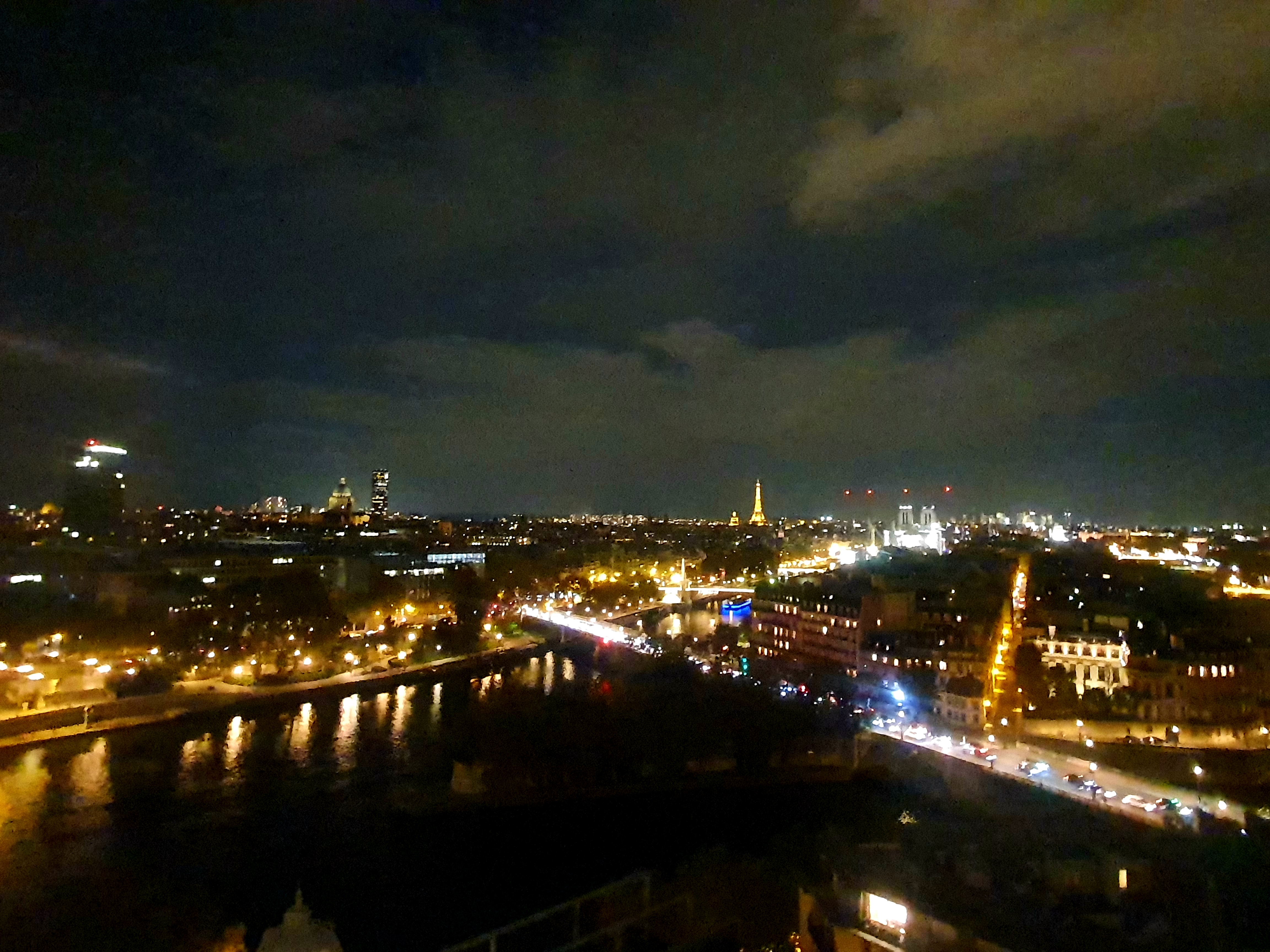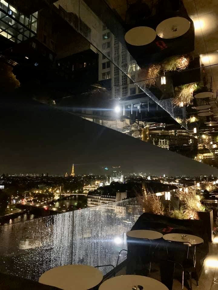 Les restaurants qui offrent une vue sur l’horizon parisien sont tellement rares ! Ici on profite même de la vue sur la Seine qui s’écoule dans le reflet d’un miroir astucieusement placé sur le plafond de la terrasse qui longe tout le restaurant. Lumineux, une déco soignée, l’ambiance y est chaleureuse pour le dîner ou le déjeuner. Évidemment le budget est un peu élevé et les portions sont un peu faibles sur certains plats. Je recommande aussi vivement le bar sur la partie opposée de l’étage. Je n’ai pas encore vu le club !