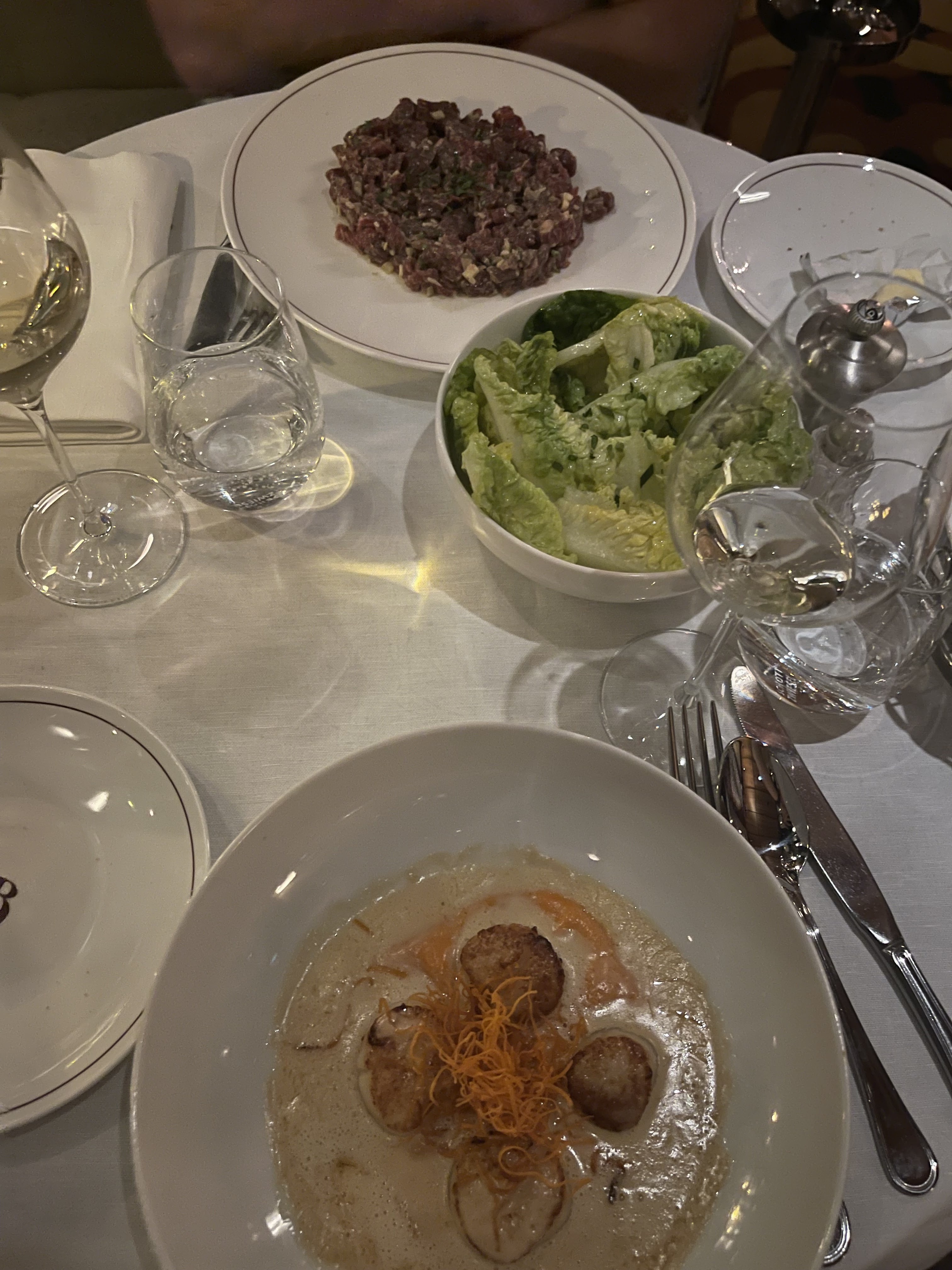 Une expérience gastronomique plus que parfaite commençant par le cadre et la vue panoramique sur tout paris. Le service était au petit soin avec un petit clin d'œil a Ilyes qui a émerveillé notre soirée Les plats étaient succulents : on a dégusté comme entre thon rouge, tacos homard et en plats linguines homard et filet de bar.