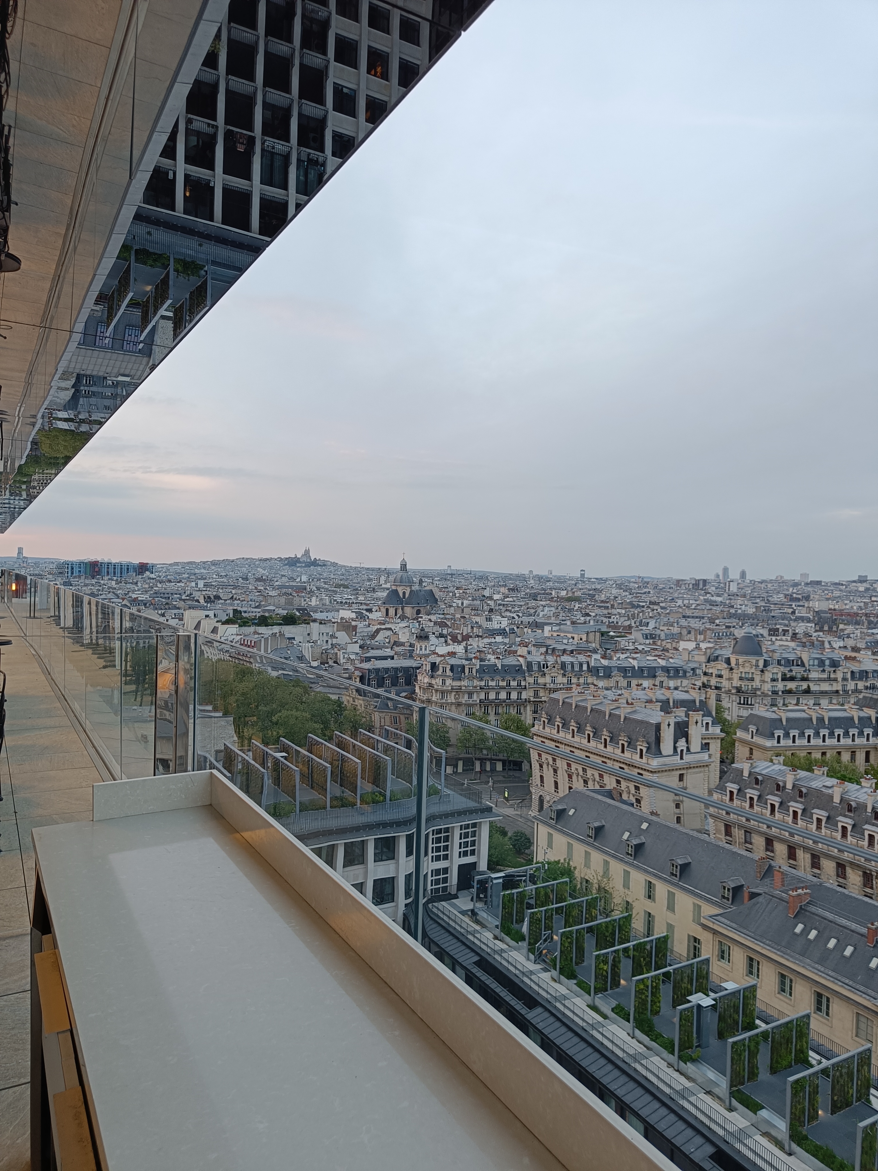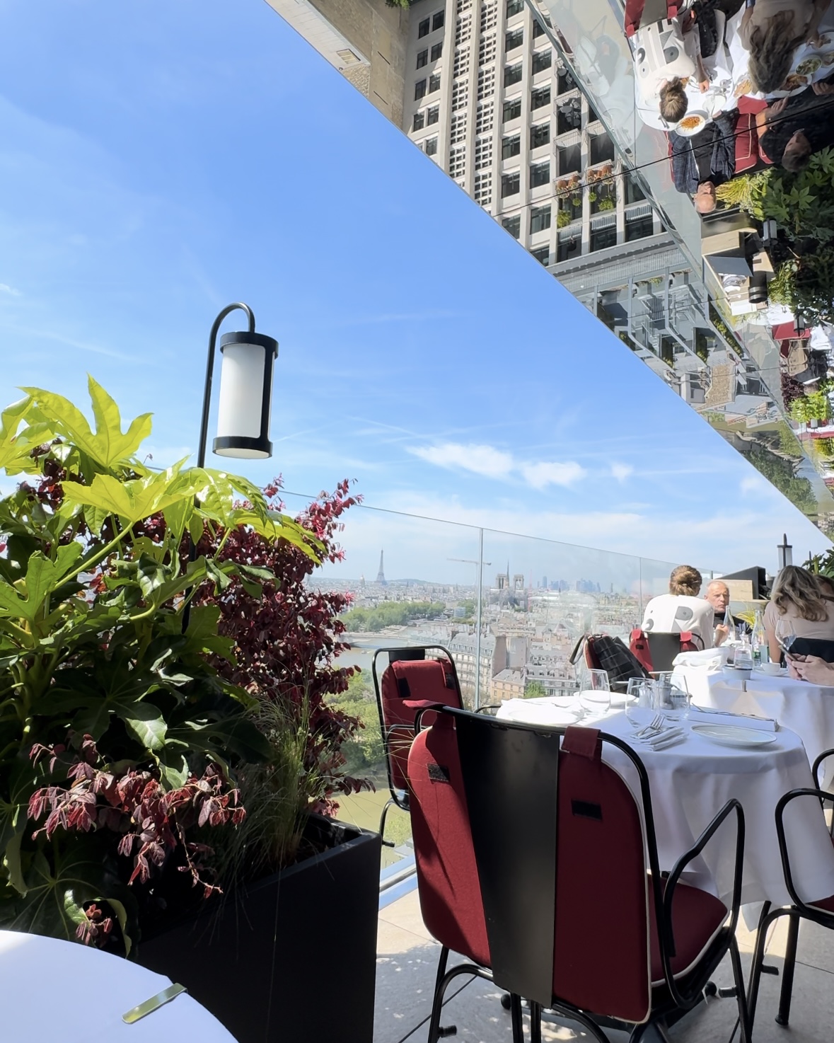 Belle terrasse à la vue imprenable à 360 degrés sur tout Paris ! Service agréable qui s'approche du standard gastronomique. Néanmoins, la musique sur place est très forte et la qualité des plats n'est pas totalement à la hauteur des attentes du haut de gamme. Ce que vous payez, c'est le lieu, pas ce que vous avez dans l'assiette.