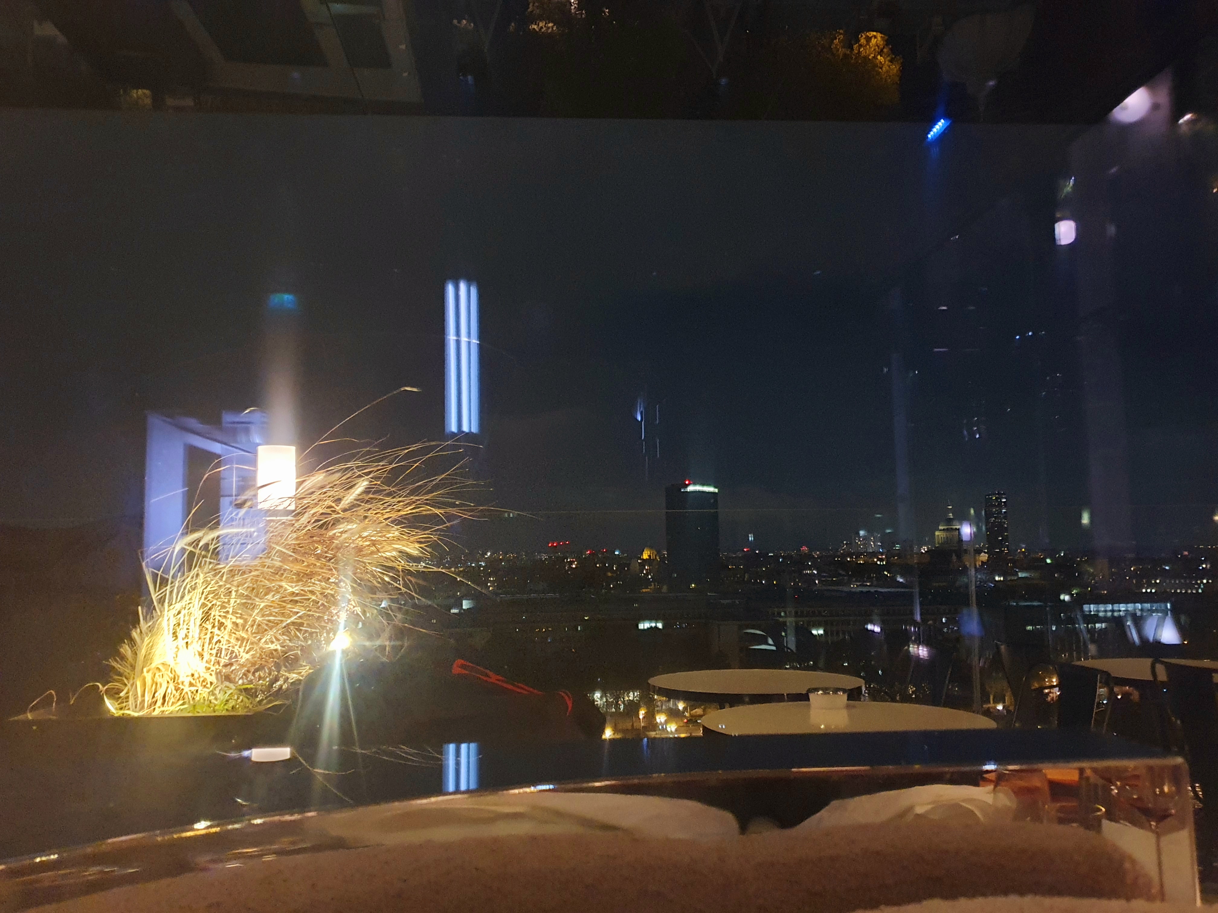 Très belle vue sur Paris, un accueil chaleureux. Pour l’anniversaire d’un ami, le repas et la bouteille de vin étaient à la hauteur, je n’oublie pas le personnel de service très sympa et à l’écoute. Nous y retournerons pour le club qui n’était pas ouvert car c’était le lundi dernier. Notre table était un peu coincée mais bon cela a permis à un monsieur de la table voisine de proposer de nous prendre une photo du groupe du coup c’était agréable.