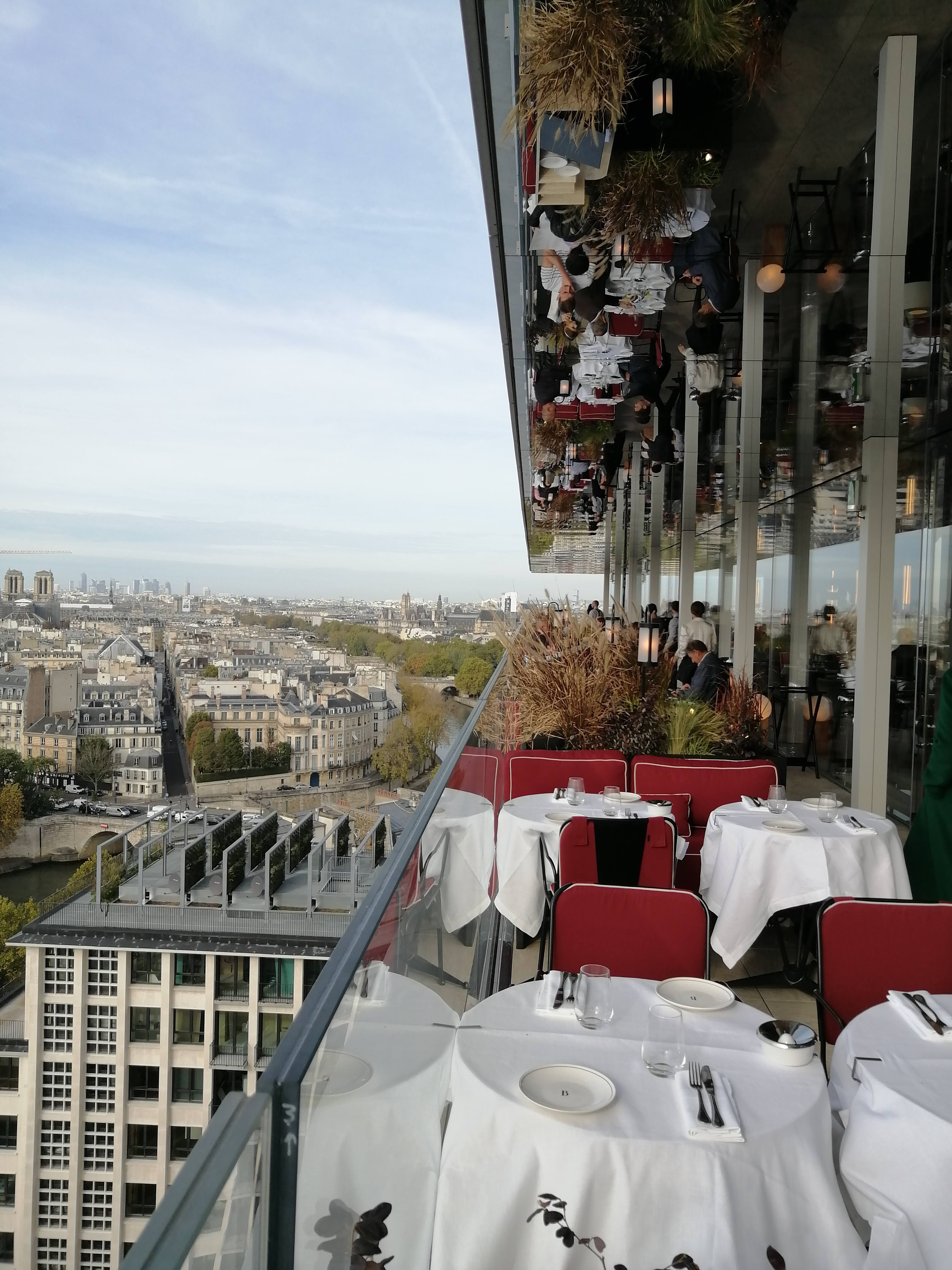 Il semblerait que ce restaurant soit l'un des lieux incontournables de Paris. L'emplacement (15ème étage d'un immeuble proche du fleuve et à quelques pas de la Bastille) est tout simplement incroyable même si vous venez de Paris. Au final, la nourriture est la plus importante et la qualité est excellente, le seul doute que j'ai est le prix qui est très élevé et dont je ne suis pas sûr qu'il soit justifié (bonne nourriture mais pas extraordinaire pour justifier une partie du prix). Le personnel est bon et accueillant. je reviendrai