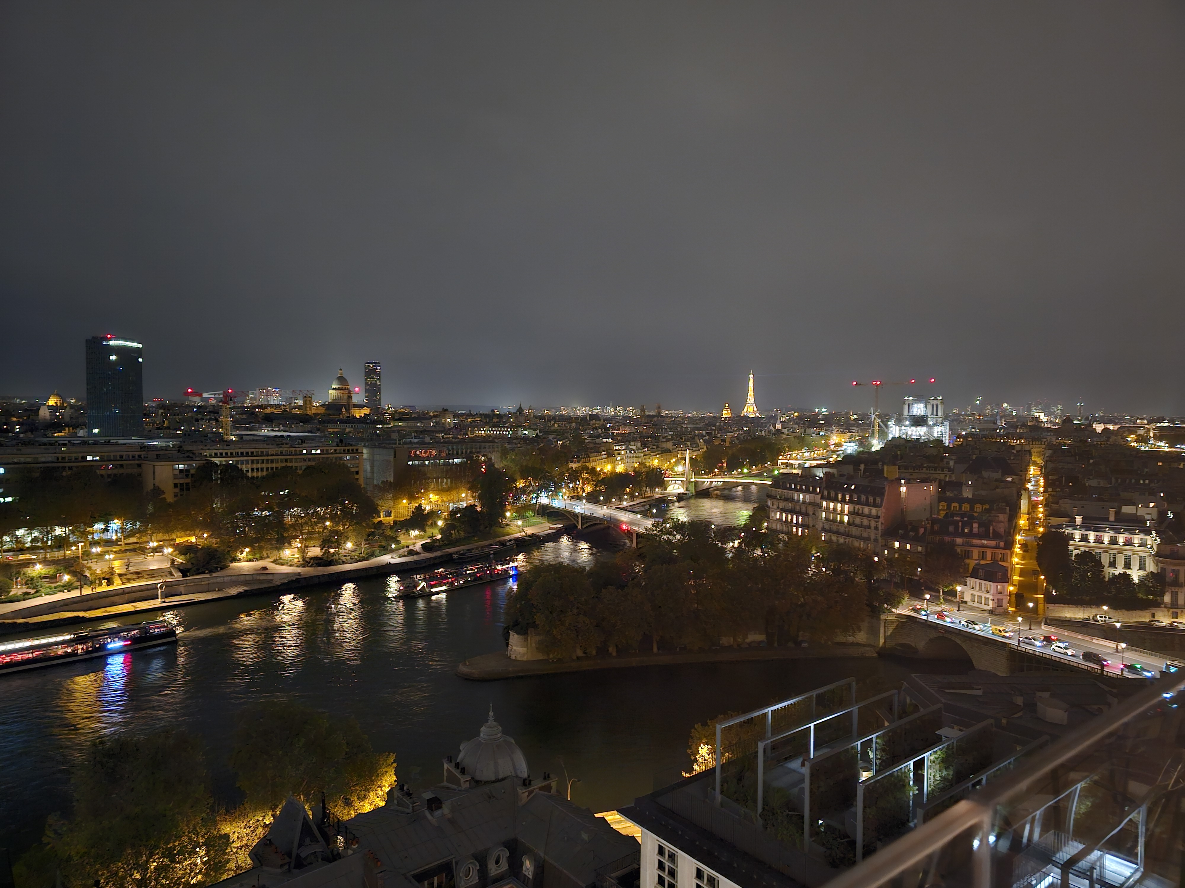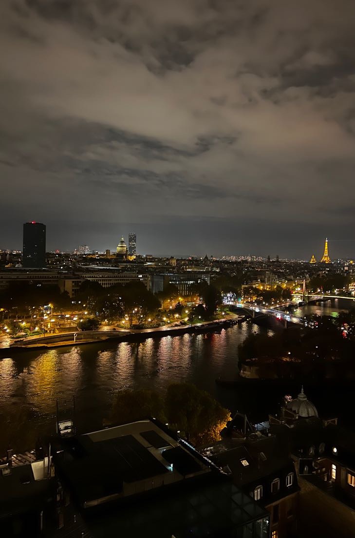 Une superbe soirée !! Une vue incroyable au bar que tout Paris, un service avec beaucoup de classe et d’attention de la part de Tim. Le bœuf wagu avec une coupe de champagne, parfait ! On se sent attendus et accueilli Le restaurant est tout aussi impressionnant avec le miroir de la Seine! Une ambiance avec le DJ assumée et réussite ! Super service de Jules qui nous a suivi tout au long du dîner, nous a conseillé sur le vin et a pris soin de nous! Alors juste un grand merci!!
