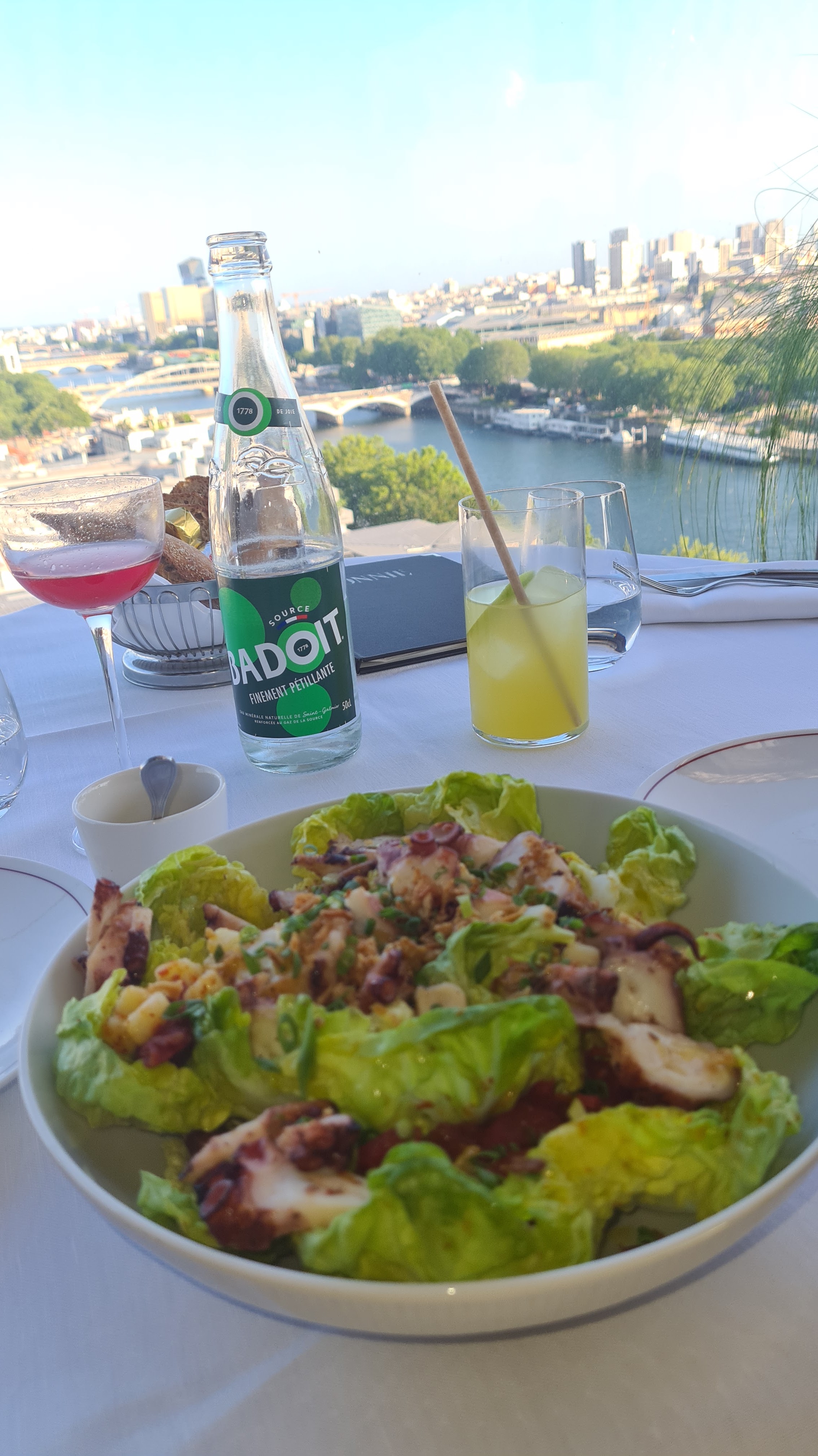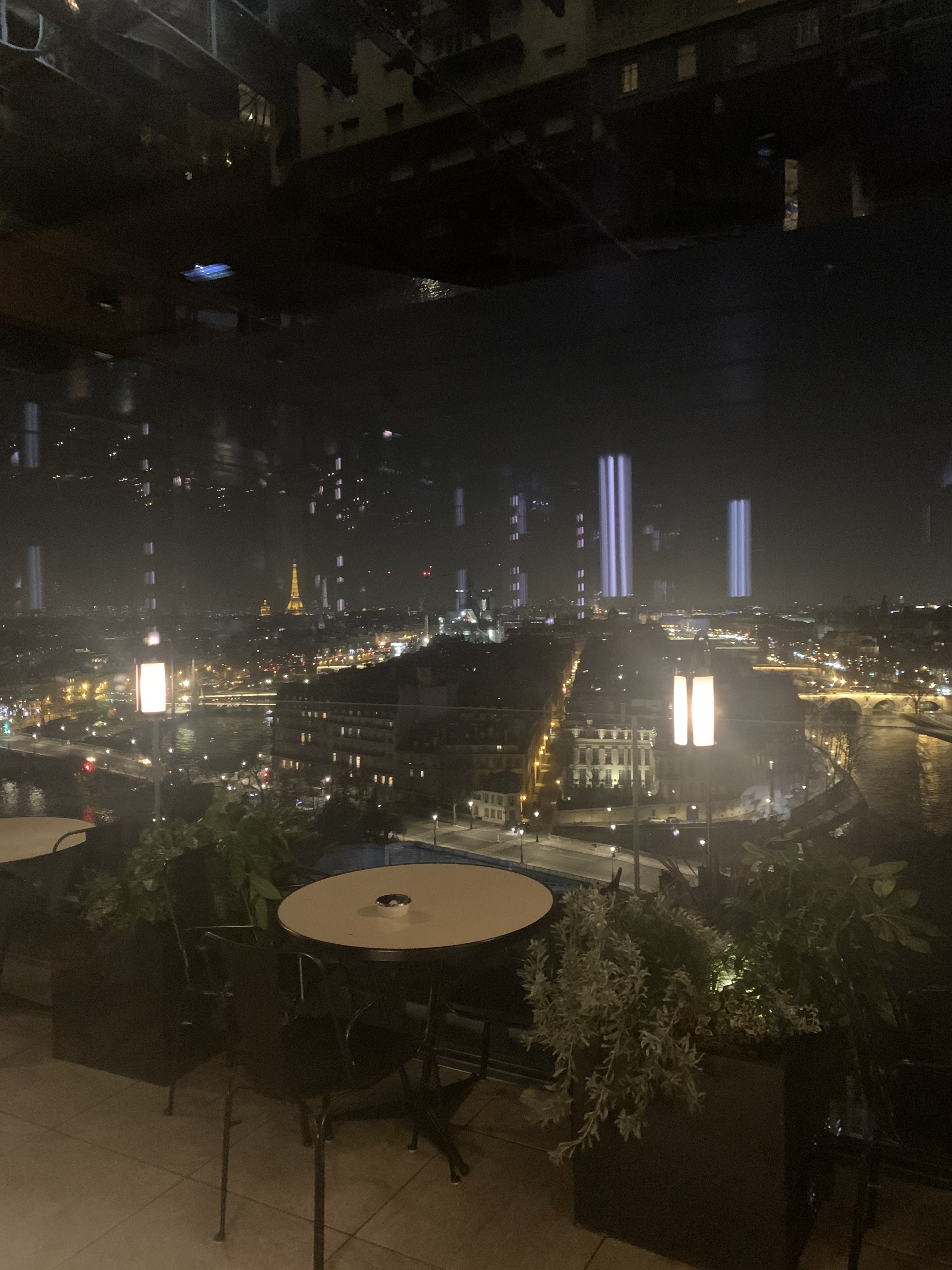 Première expérience qui s’est super bien passée. Service au top, personnel qui vous met à l’aise, et à votre écoute (je tiens à remercier plus particulièrement Inès qui s’est très bien occupée de nous.) Le cadre est très joli surtout en extérieur, avec une incroyable vue sur Paris. Le menu est varié, j’ai bien aimé les linguines au homard. En terme de prix nous en avons eu pour environ 80€ chacune, ce que nous pouvons comprendre vu le cadre etc. Nous sommes également parties au Bar, je recommande, superbe vue aussi ! Petit bémol, il n’y a que 3 cocktails sans alcool sur la carte, le tour donc est vite fait. Le Like a virgin, et celui à myrtille sont bons. Merci à vous.