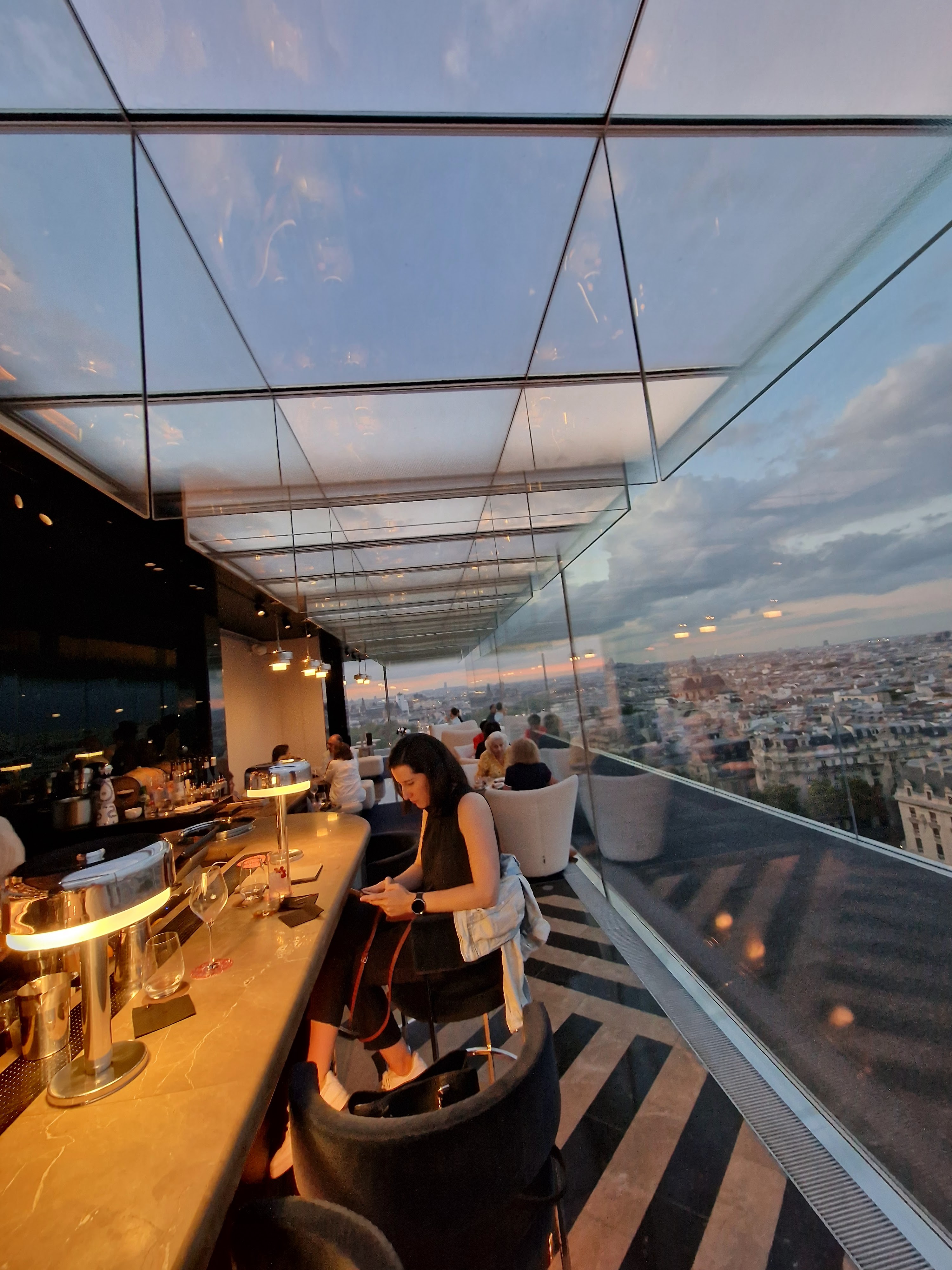 Vue unique sur Paris. La clientèle est excellente. Le personnel est très attentionné et l'ambiance est charmante. 4,3/5 étoiles !