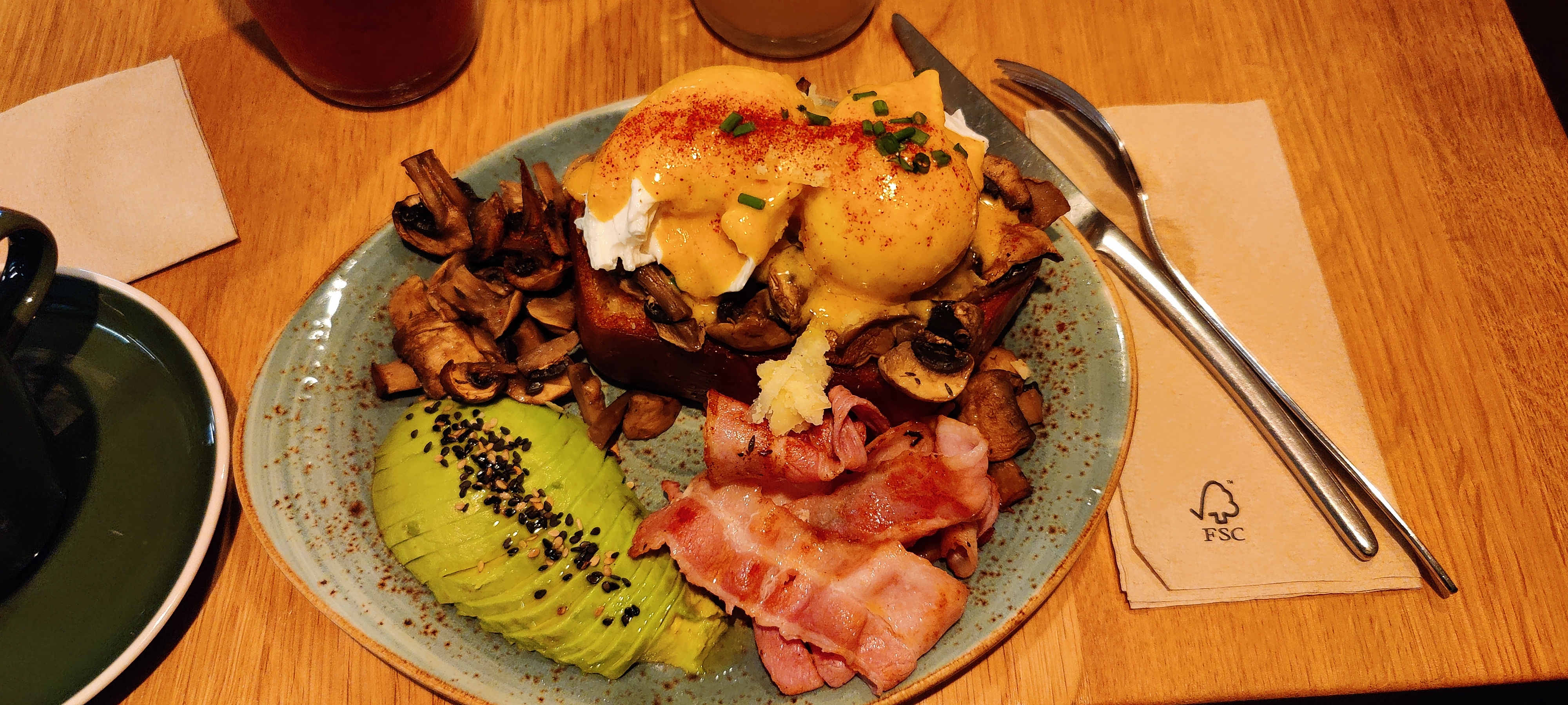 Deuxième fois que j'y vais, j'ai commandais des œufs Bénédicte et un frappé choco coco, je suis encore plus heureuse que la première fois. C'était très bien cuit et moelleux au niveau de la brioche. Je reviendrais rien que pour ce plat avec du monde ! Donc attendez nous 😉