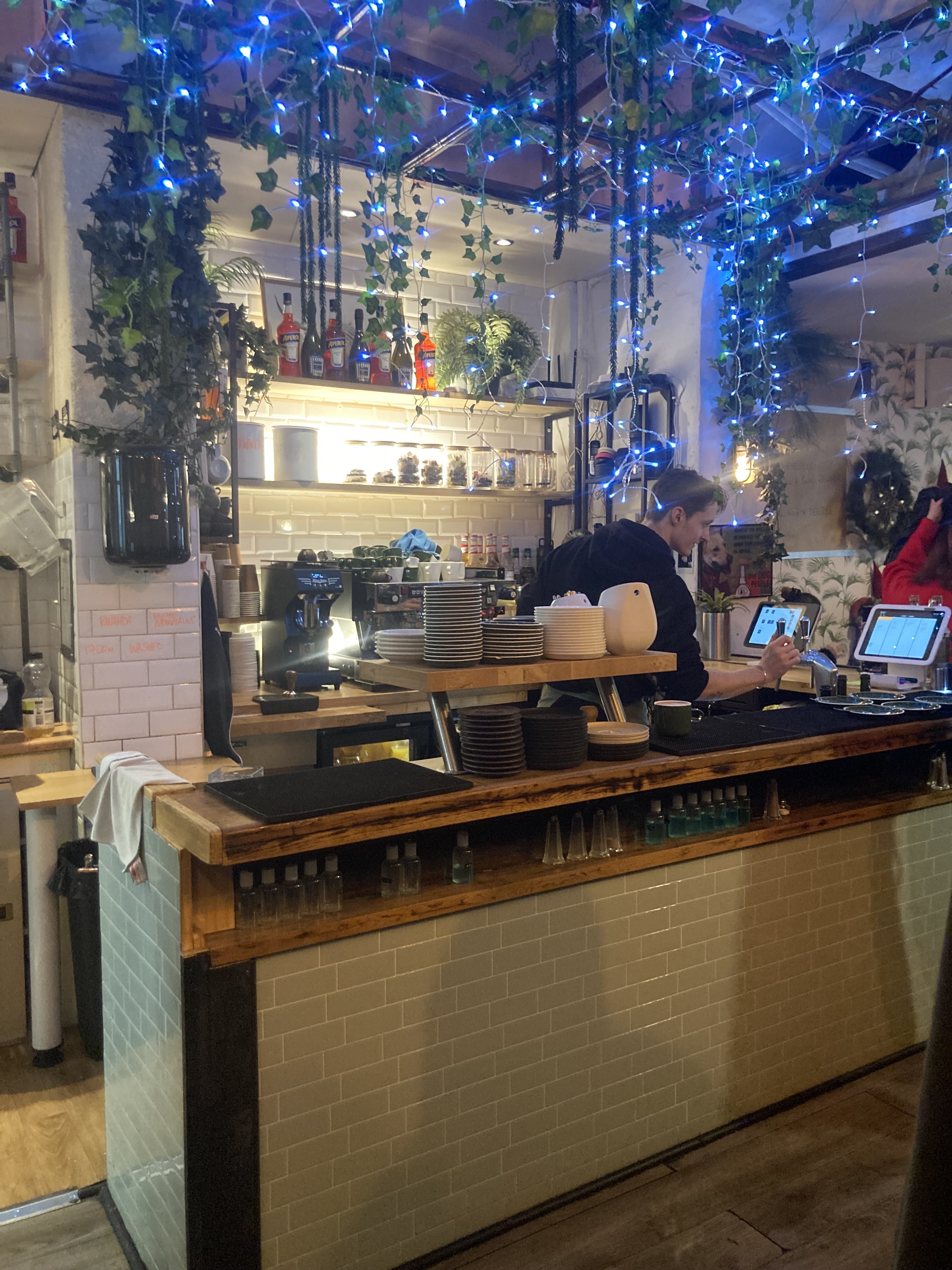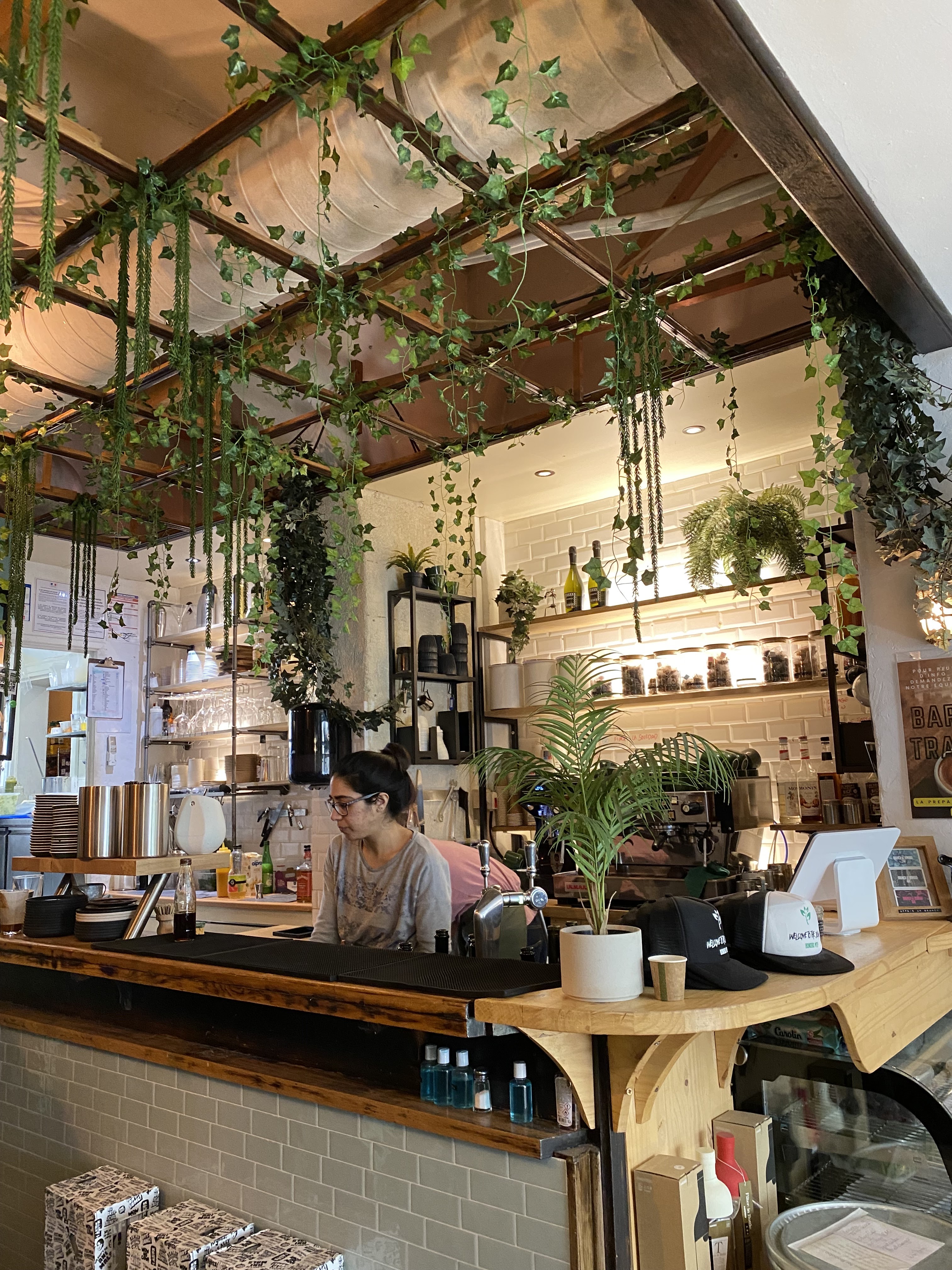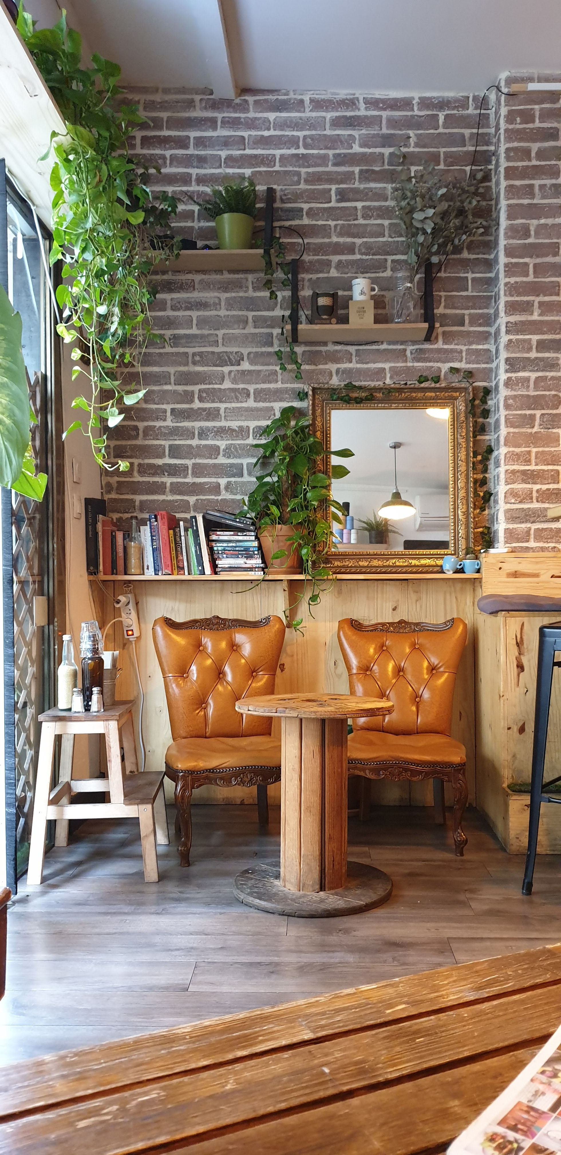 J'ai été interpelé par la vitrine.. le cadre intimiste, le mobilier de bois, le grand canapé, la lumière tamisée et les plantes tombantes ont achevé de me convaincre d'y entrer. La carte est intéressante, avec des consommations bio, des alternatives au lait de vache et des boissons tendances. Le dirty chaï au lait d'avoine est à tomber par terre, le chaï latte et le pumpkin latte sont délicieux ! J'y reviens dès que possible, un coup de cœur !