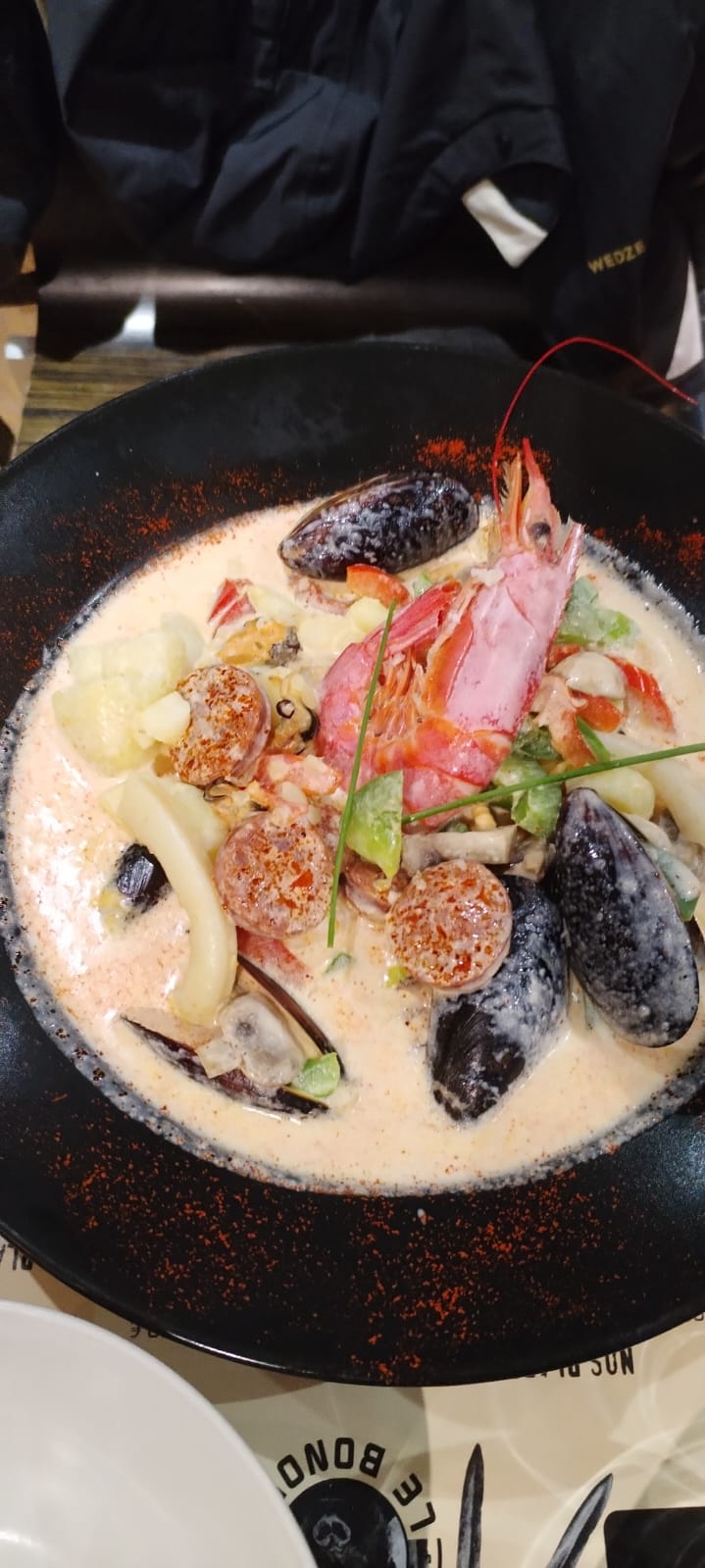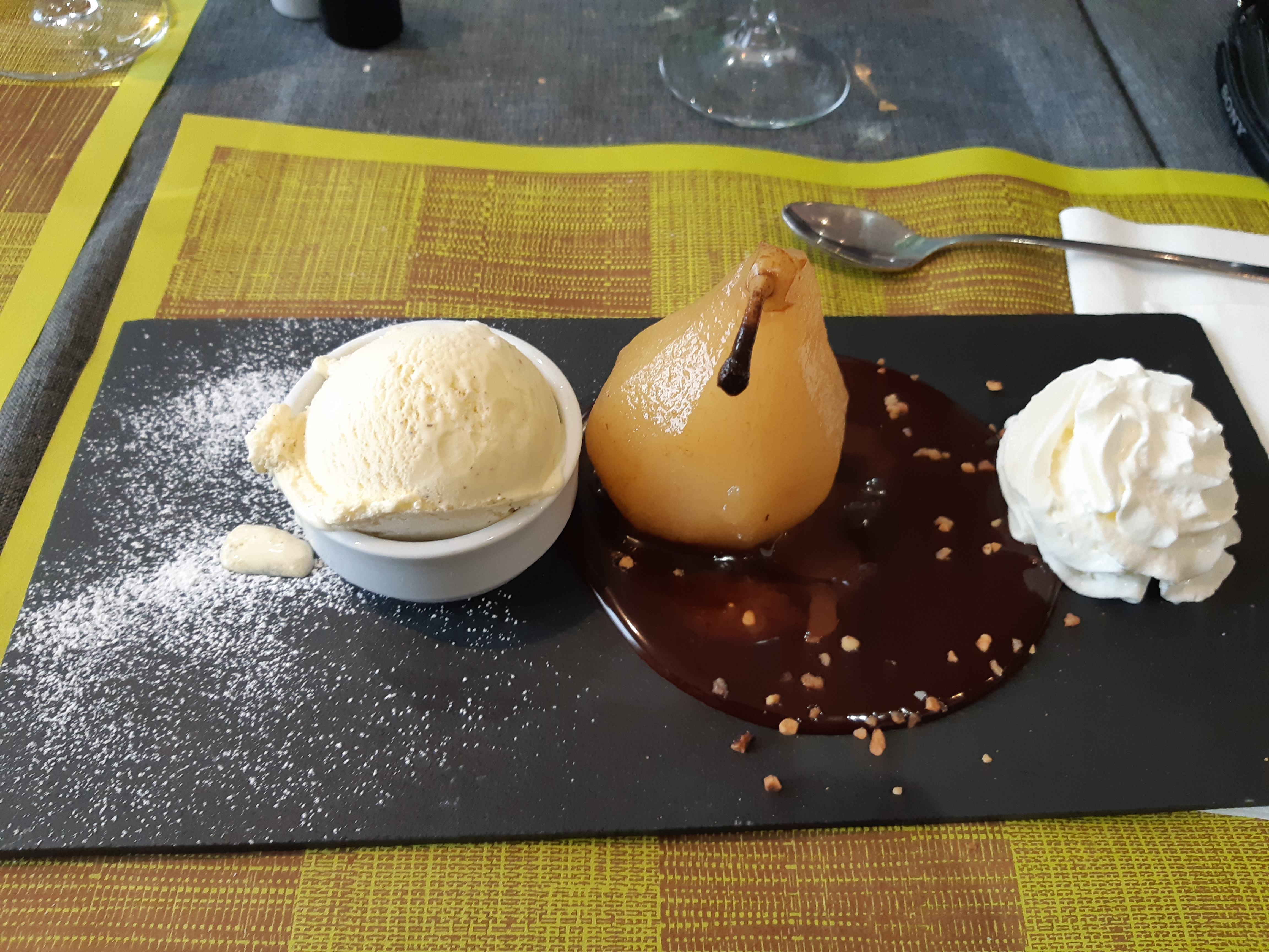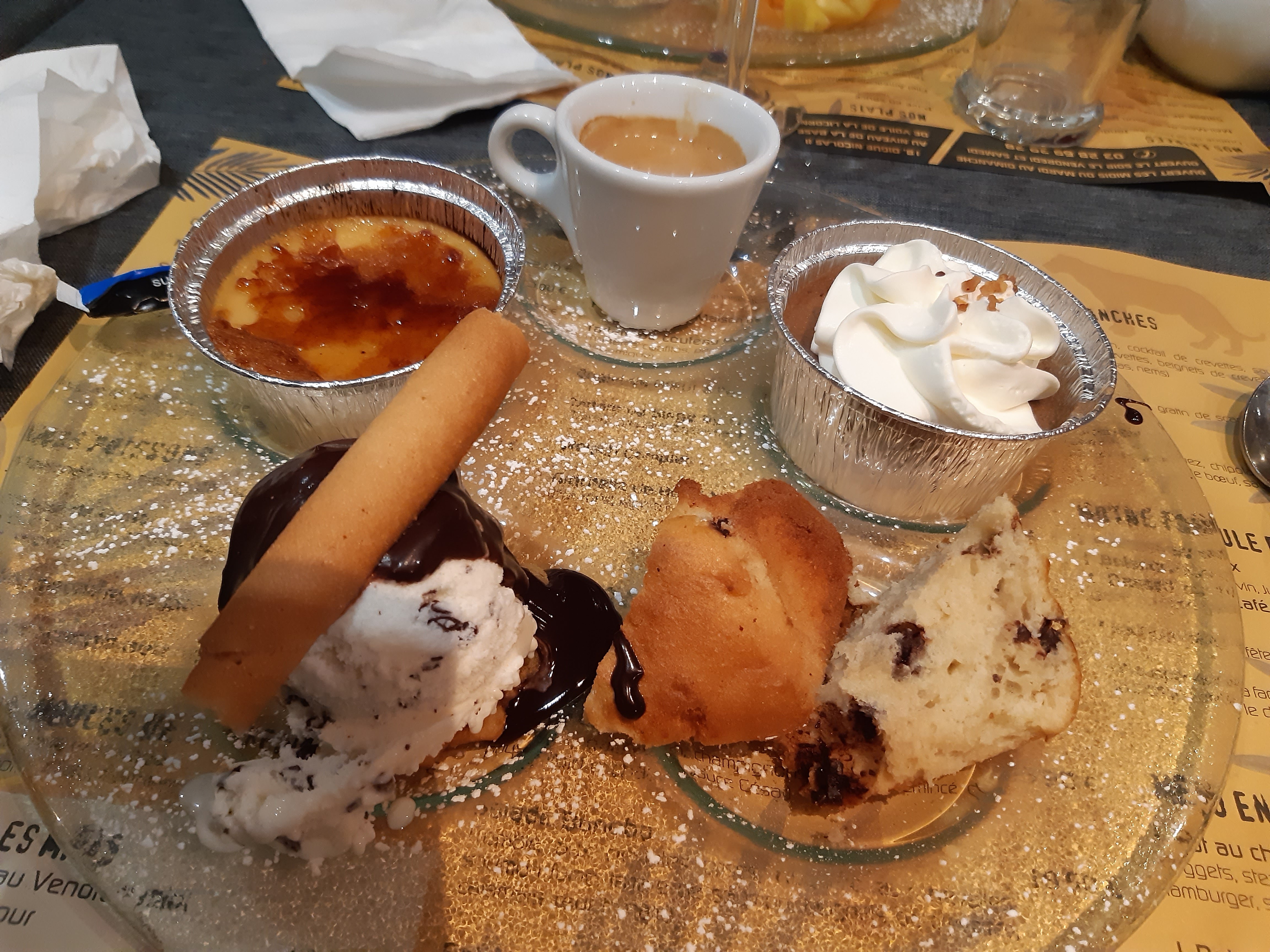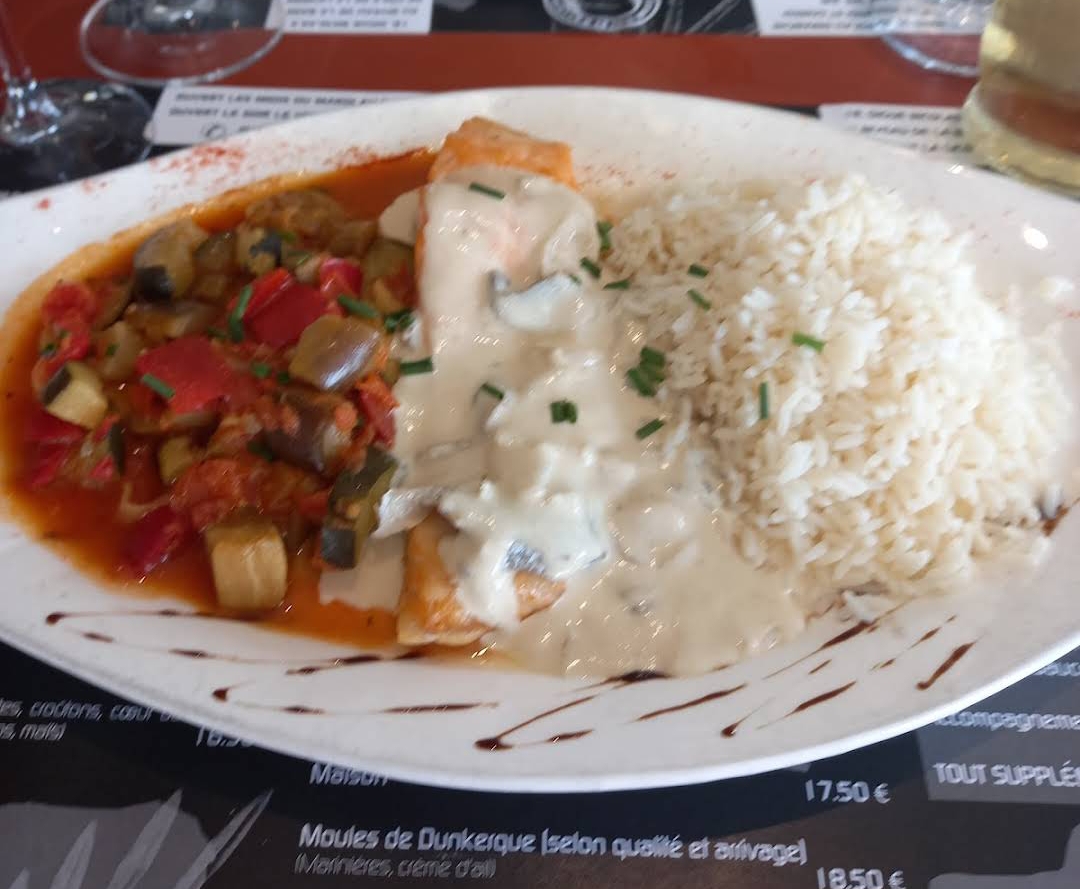 Les moules au curry très bien mais nous avons pris en dessert 1 éclair façon profiterole la pâte surgelée très dure et une tarte fine surgelée réchauffée au micro onde en partie décongelée donc peu mieux faire et rapport qualité prix moyen