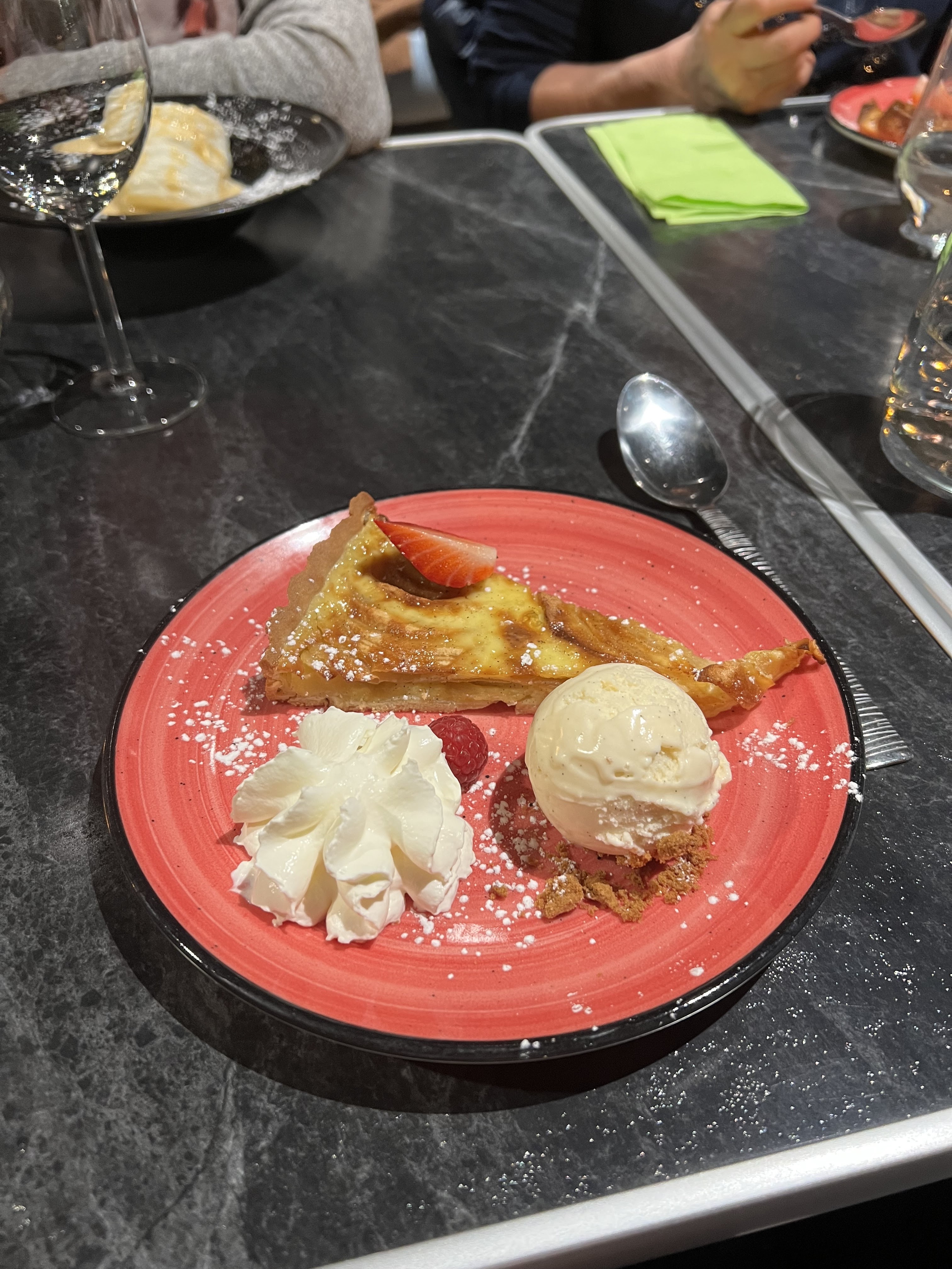 Brasserie sympathique, nous avons bien mangé et dégusté une excellente tarte aux pommes avec glace vanille et chantilly. Personnel très gentil