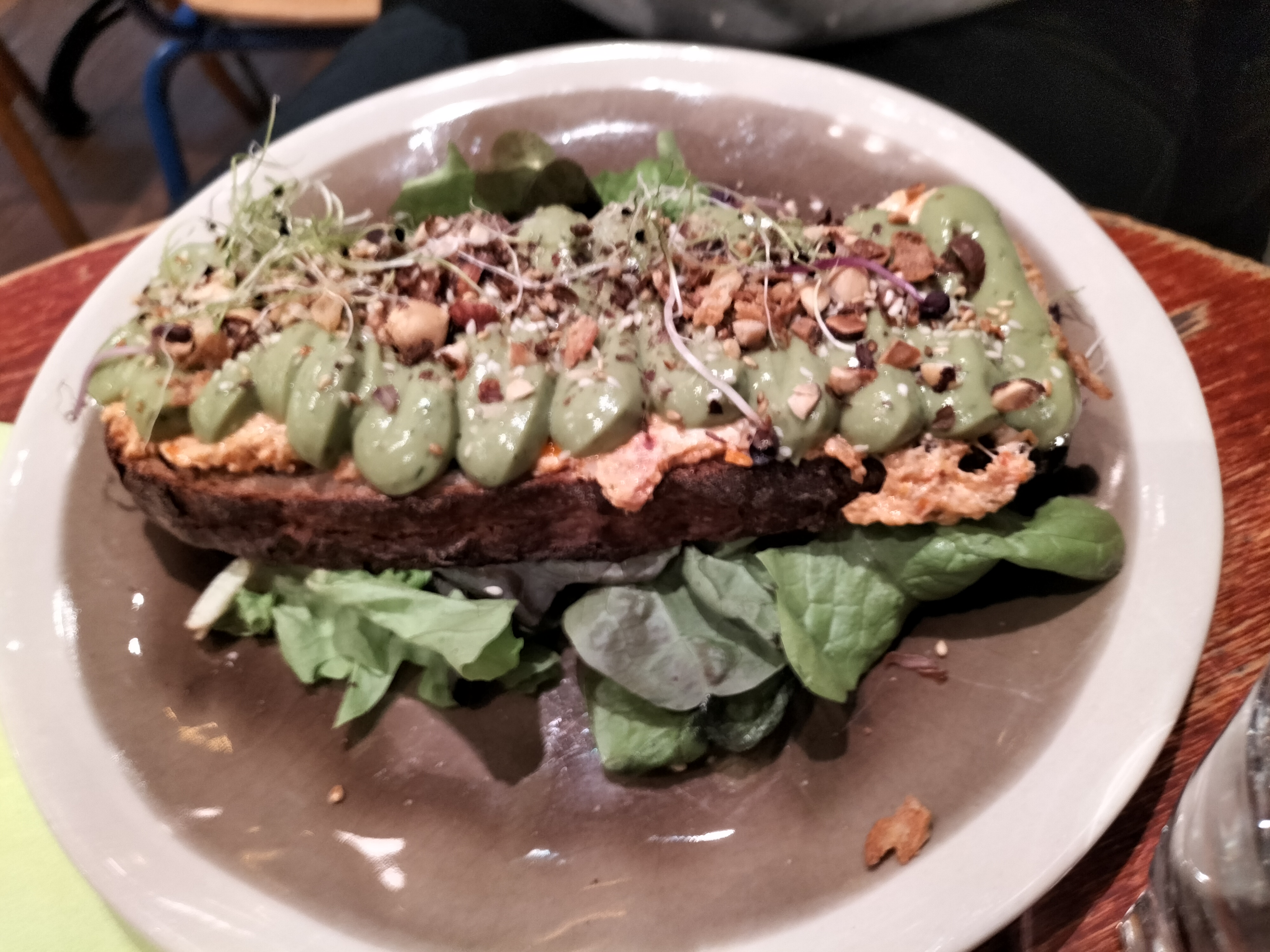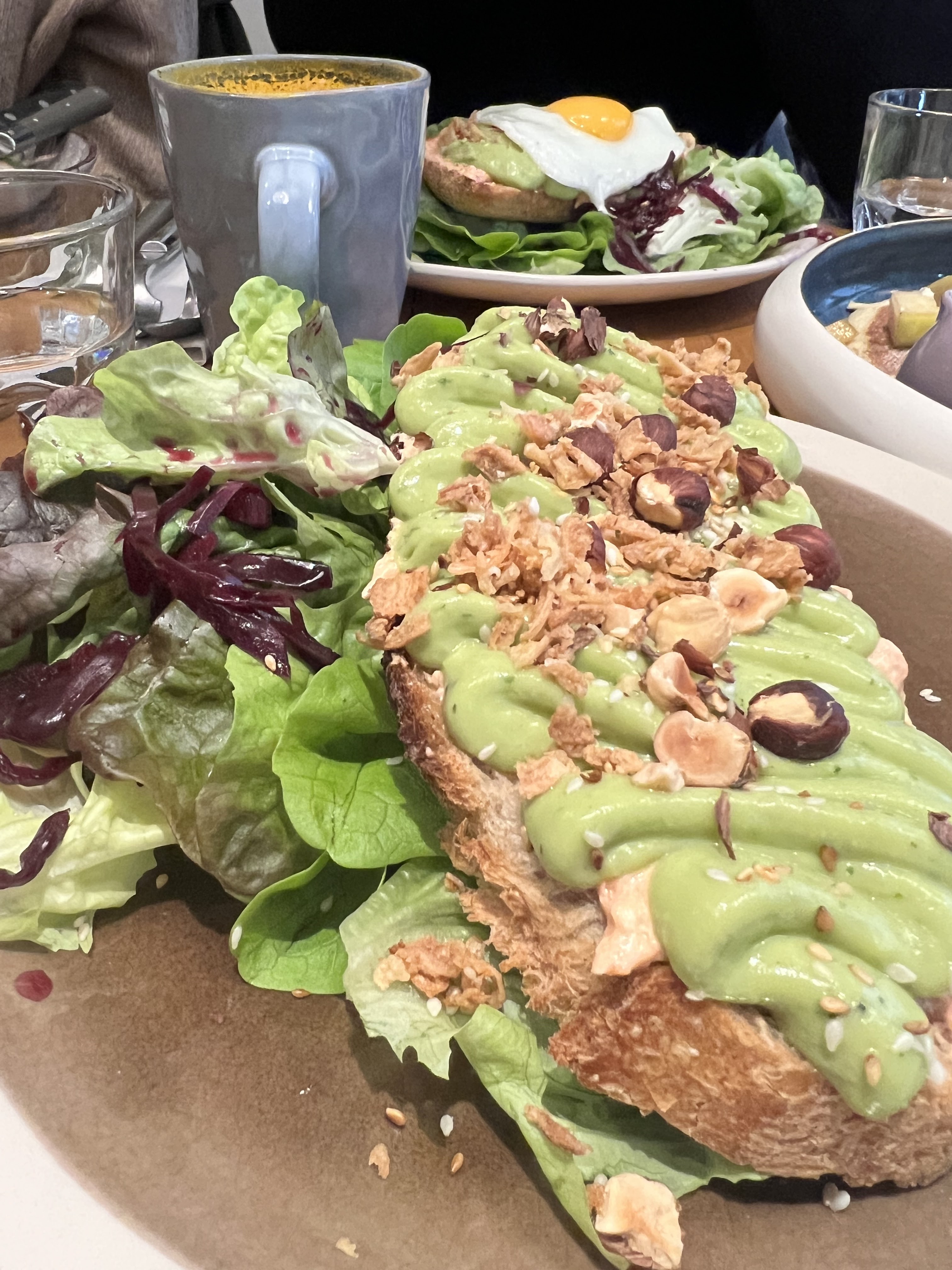 Super endroit si vous voulez trouver de la bonne nourriture, une atmosphère chaleureuse et des gens sympathiques. Mon partenaire n'était pas aussi content, il a dit que son croissant était un peu détrempé à cause de la salade moelleuse en dessous, mais mon pain grillé à l'avocat était excellent. J'ai apprécié ❤️