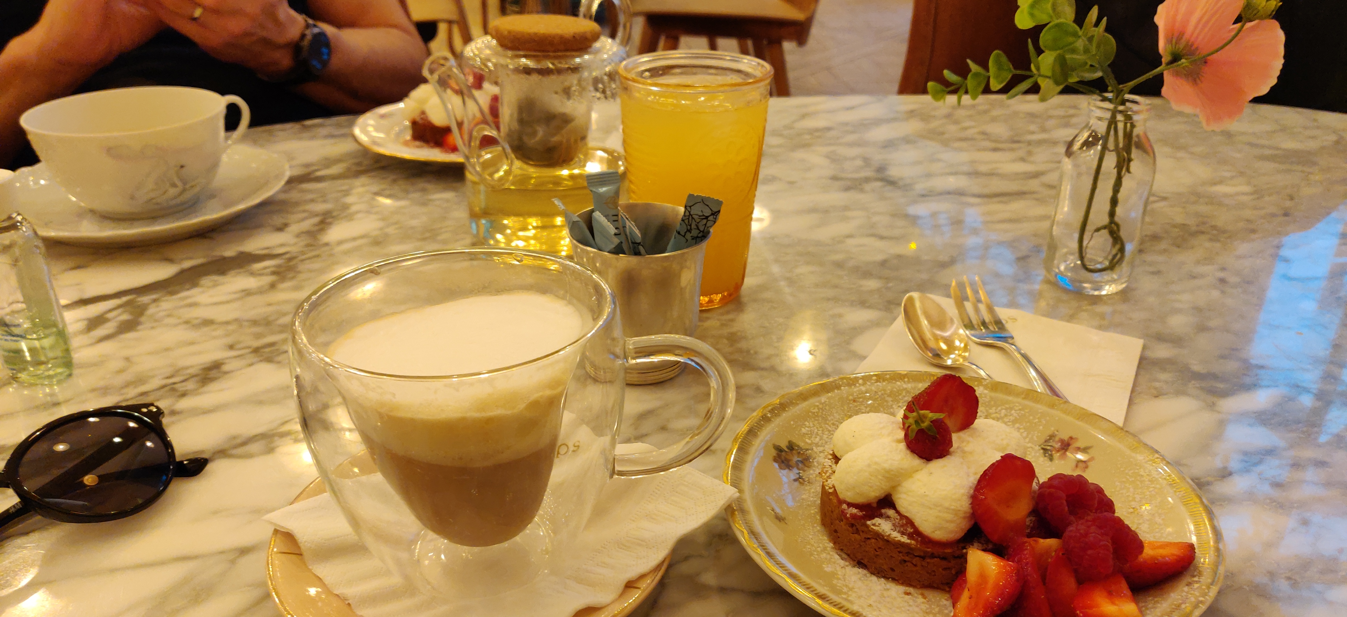 Nous nous sommes arrêtés pour prendre une collation, attirés par le cadre : même les desserts sont décidément bons