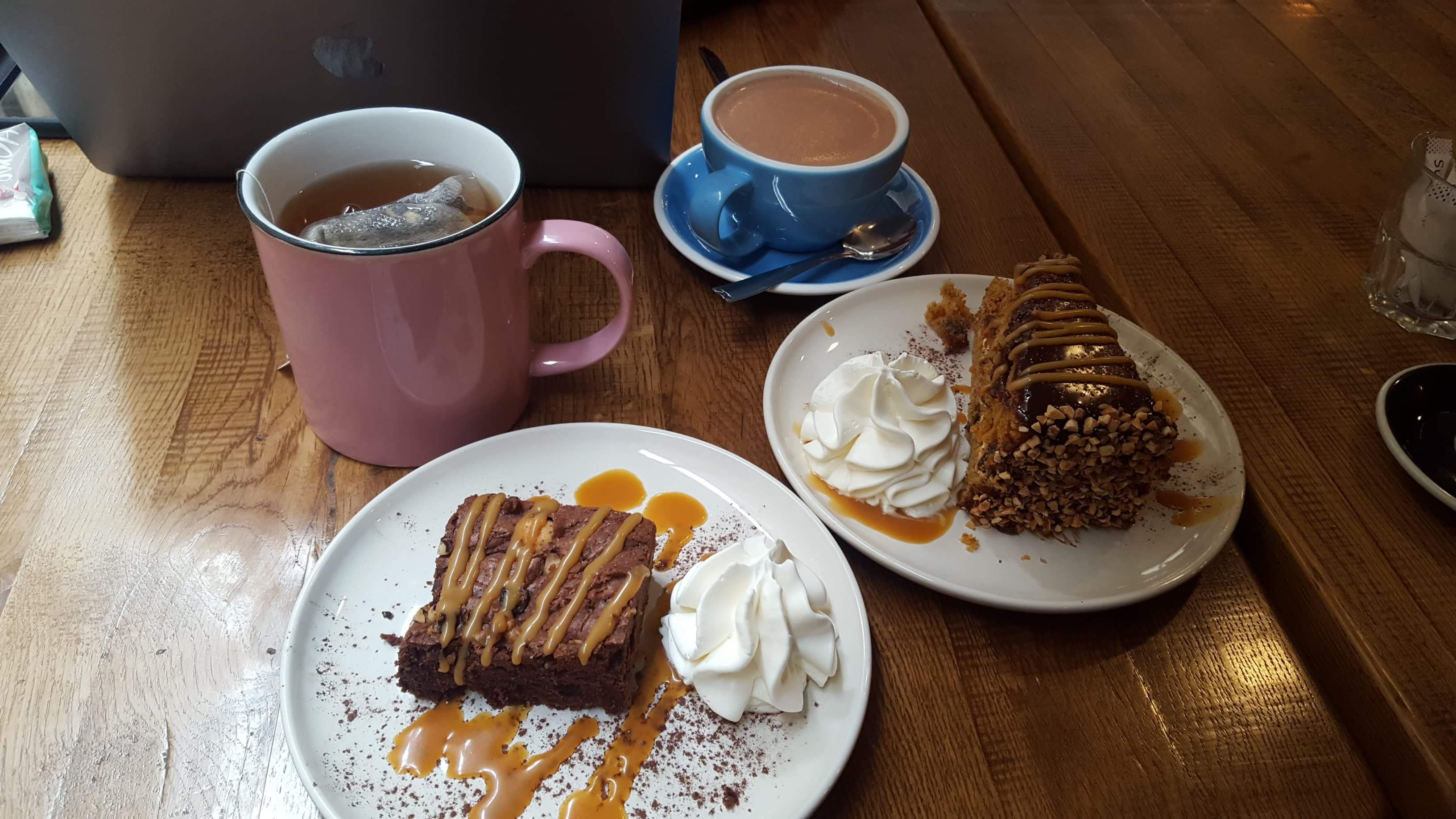 Pancakes salés et saumon gravelax très bons. L’oeuf mollet du saumon est froid et la brioche aussi et un peu sèche. Le carrot cake est excellent. Le thé est bon , par contre l’expresso est inbuvable. J’aime la décoration très british.