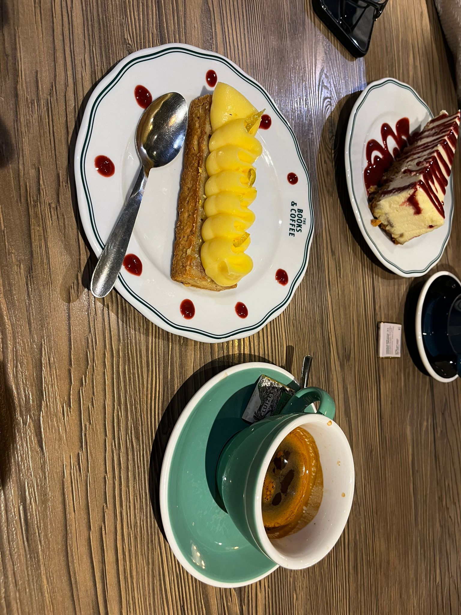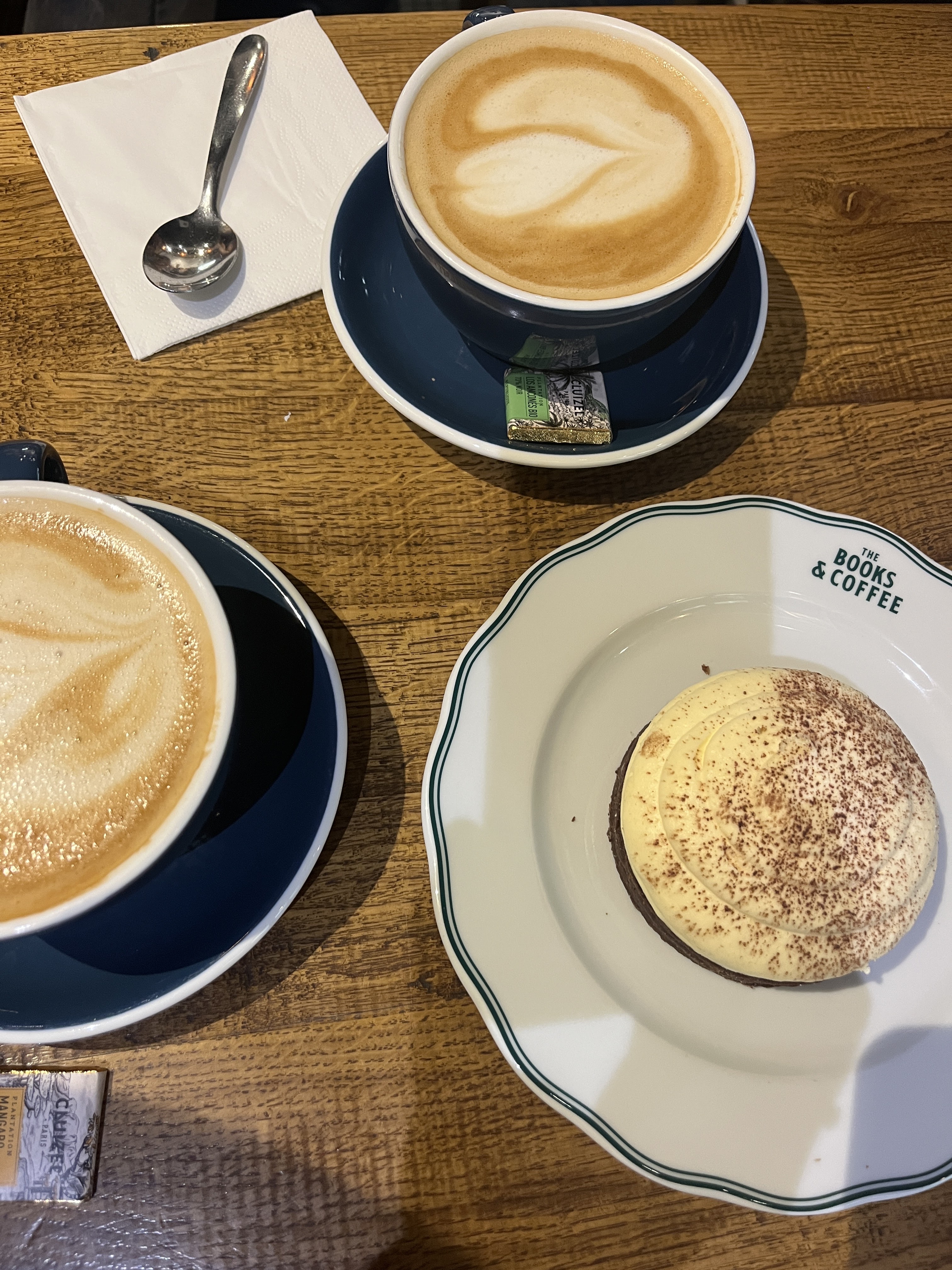 Petit quiproquo avec l'équipe du Books & Coffee qui nous annonce avoir une table si nous arrivons dans les 5mn, puis en arrivant à l'heure convenue il n'y en avait finalement plus en raison d'un probable défaut de communication dans l'équipe. C'est très grand et bruyant mais les patisseries étaient délicieuses. Le Chaï Latte, bon sans plus. Goûter agréable dans l'ensemble sans être extraordinaire.