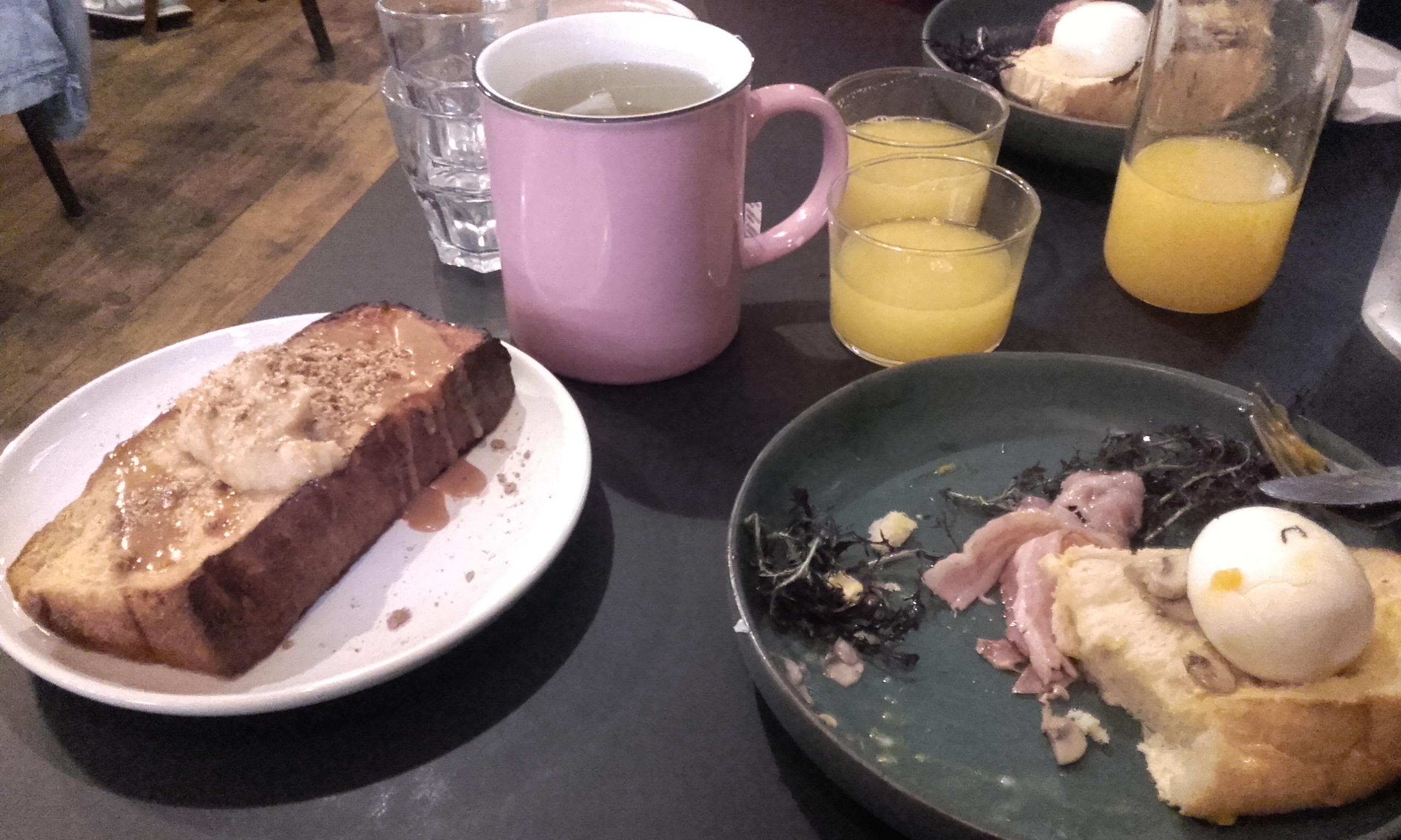 Rapport qualité/ quantité pas au rdv. 1 jus d’orange un thé, « un plat » et un mini pain perdu. 25€ et les quantités/qualité ne sont pas au rdv donc je repars en ayant faim. À tester en semaine mais malheureusement aucune possibilité de rajouter des produits à la commande le Dimanche donc choix très limité sur la carte.