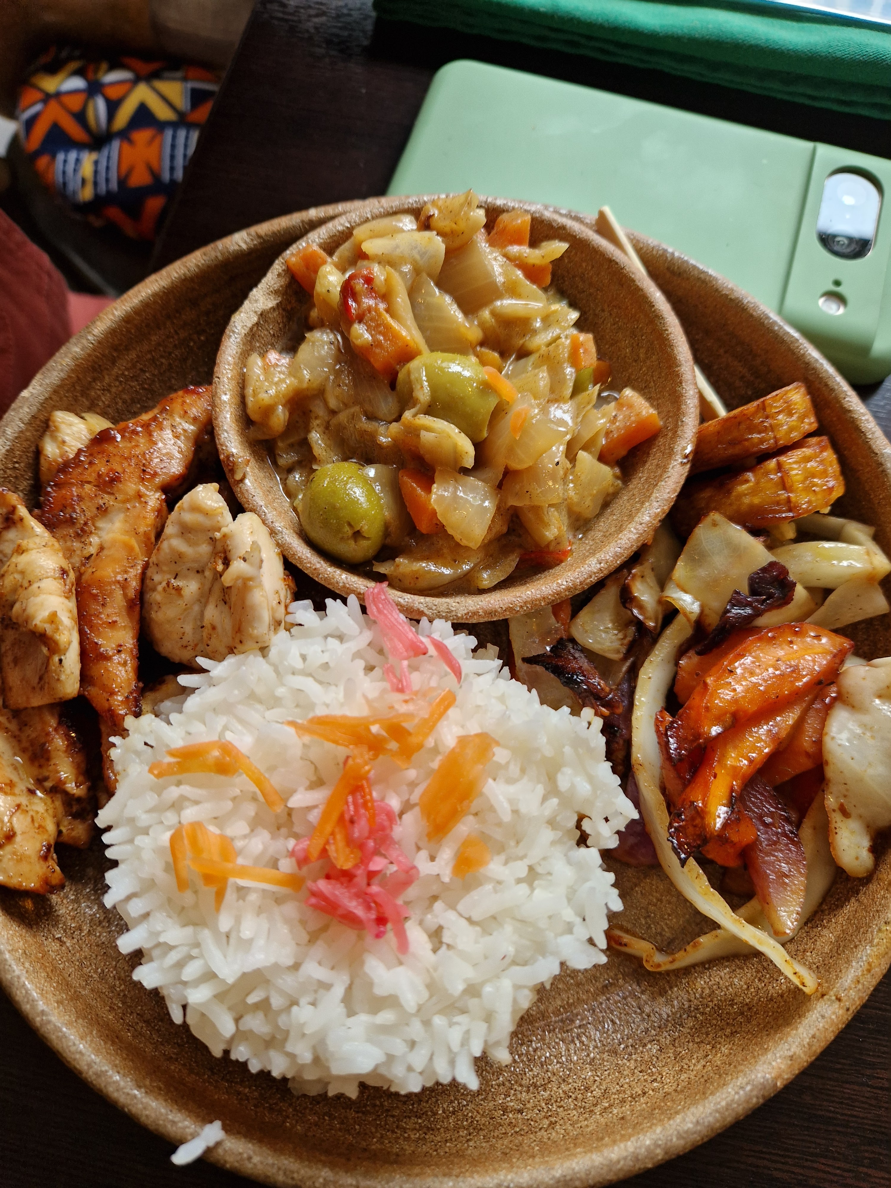 Excellent Yassa, jus et bananes plantains. Accueil hyper chaleureux, lieu convivial. On reviendra !!!!