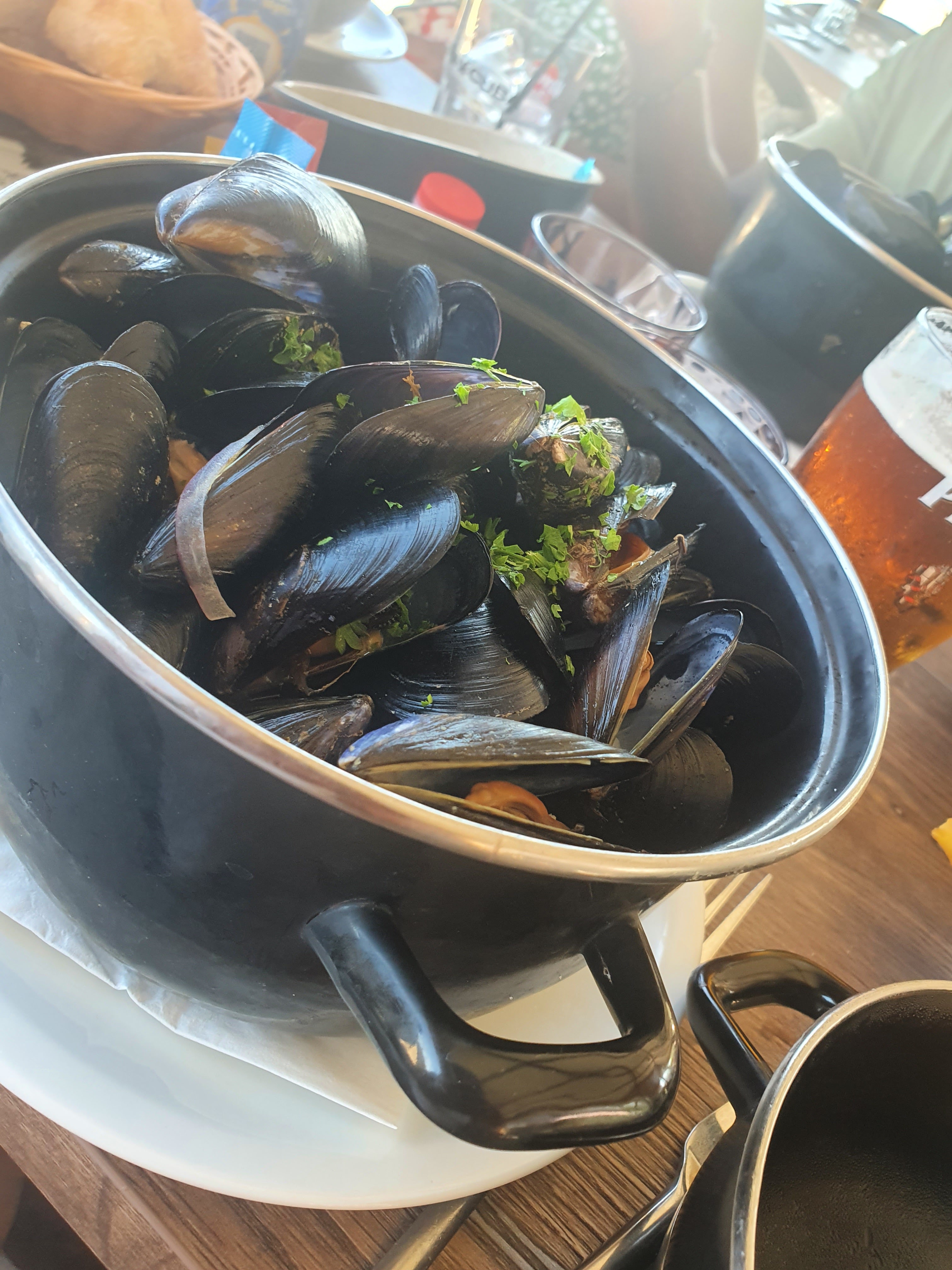 Moules très fraîches et on s’est régalés! Cadre idyllique de bord de plage. Et en plus un serveur très drôle et sympathique. On reviendra!