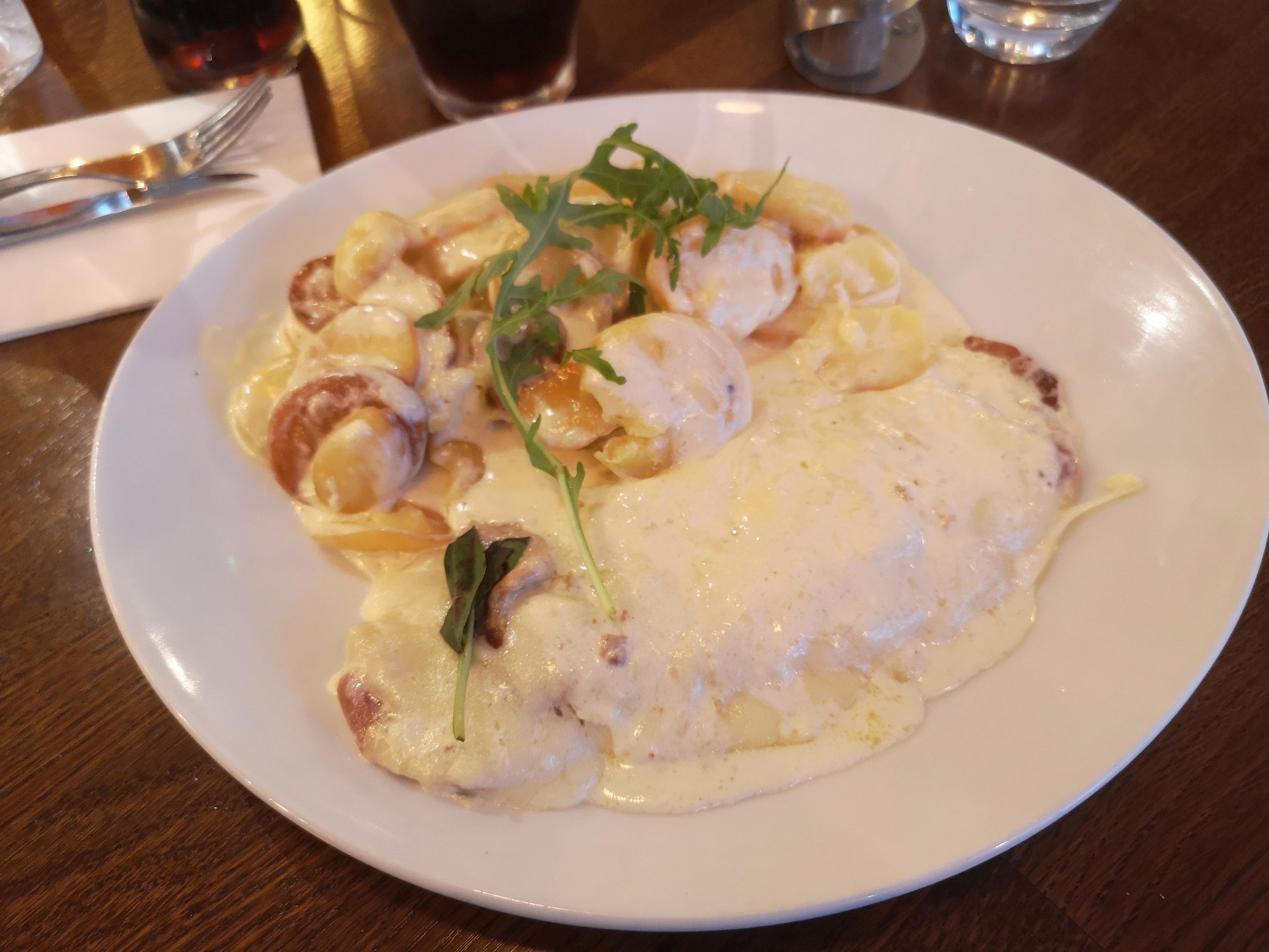 Très bel endroit, bons plats. Accueil sympa mais sans sourire. Très belles assiettes, pizzas xxl, bien garnies, un peu brûlées aujourd'hui. Carpaccio non assaisonné un peu fade malgré une très jolie présentation. Globalement un lieu à connaître où il fait bon se poser, savourer un bon moment. Un peu bruyant (bruit des couverts etc)niveau acoustique.