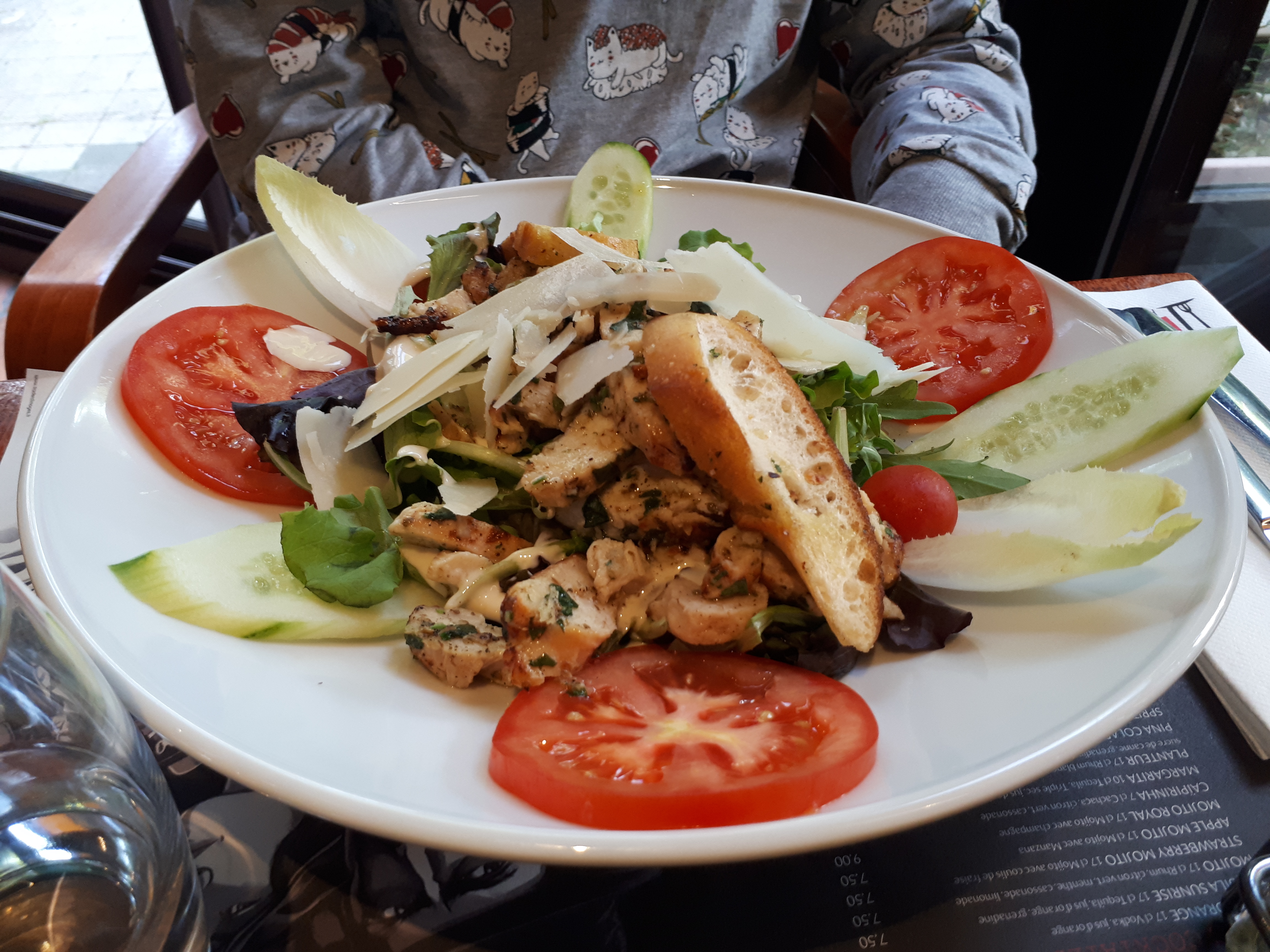 Les salades sont excellentes, l'endroit est agréable. 4 étoiles au lieu de 5 car ils n'acceptent pas les chiens en terrasse.