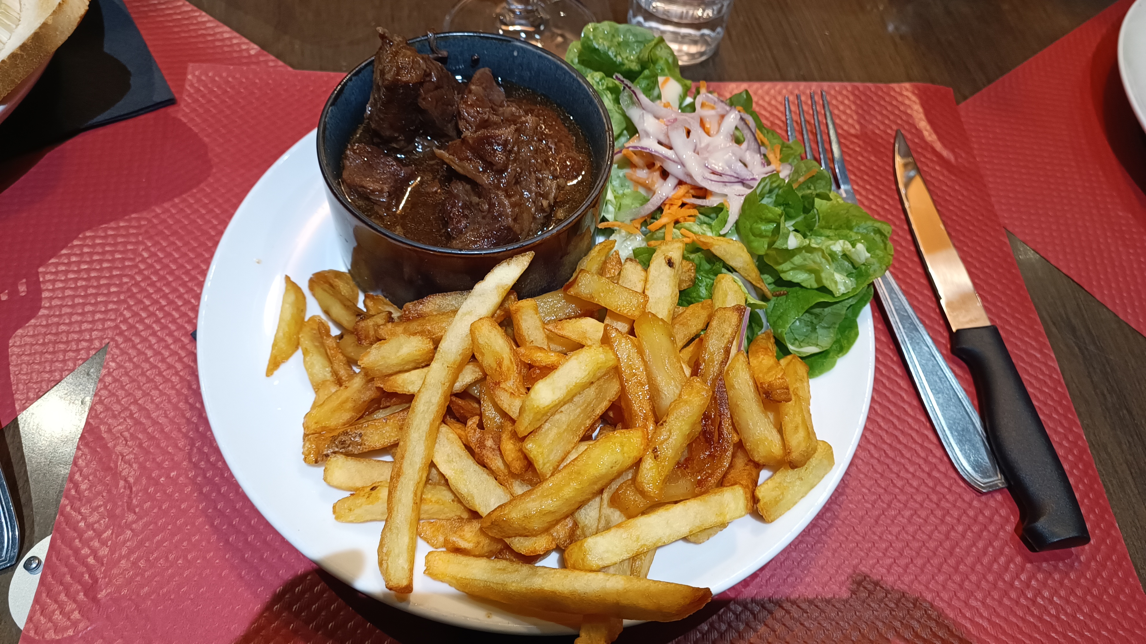 Personnel très peu avenant.le serveur n’est pas revenu vers nous pour savoir si nous voulions un dessert et,ou un café.très déçu par la carbonnade .viande très grasouillette😏😏😏