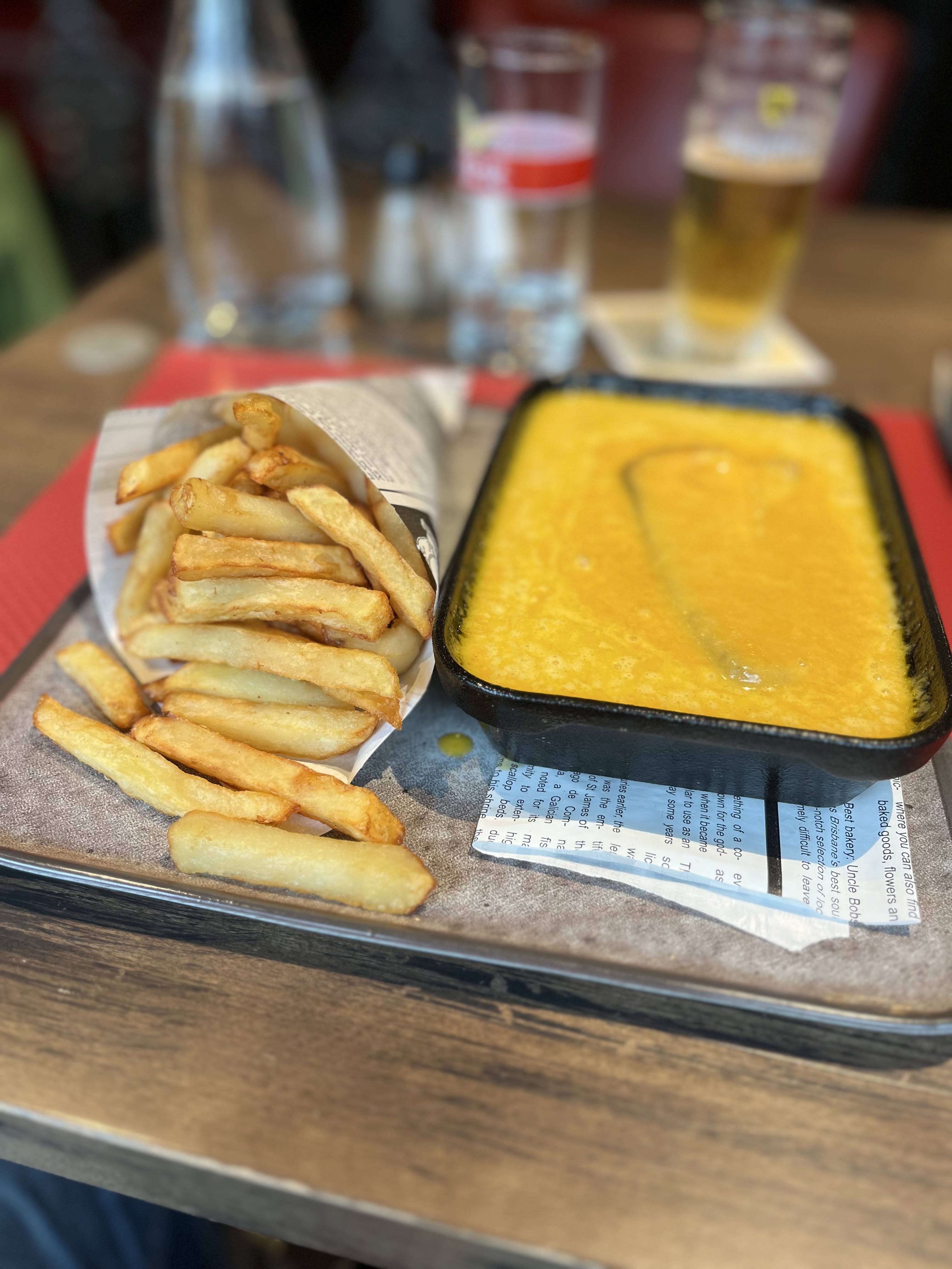 Welsh Avec frites en supplements (3€), Pinte de chouffe a 9.20€ !! Heureusement que le serveur était méga sympa et le cadre joli, en tout cas ce n'est pas la que j'irai boire un coup pour discuter !