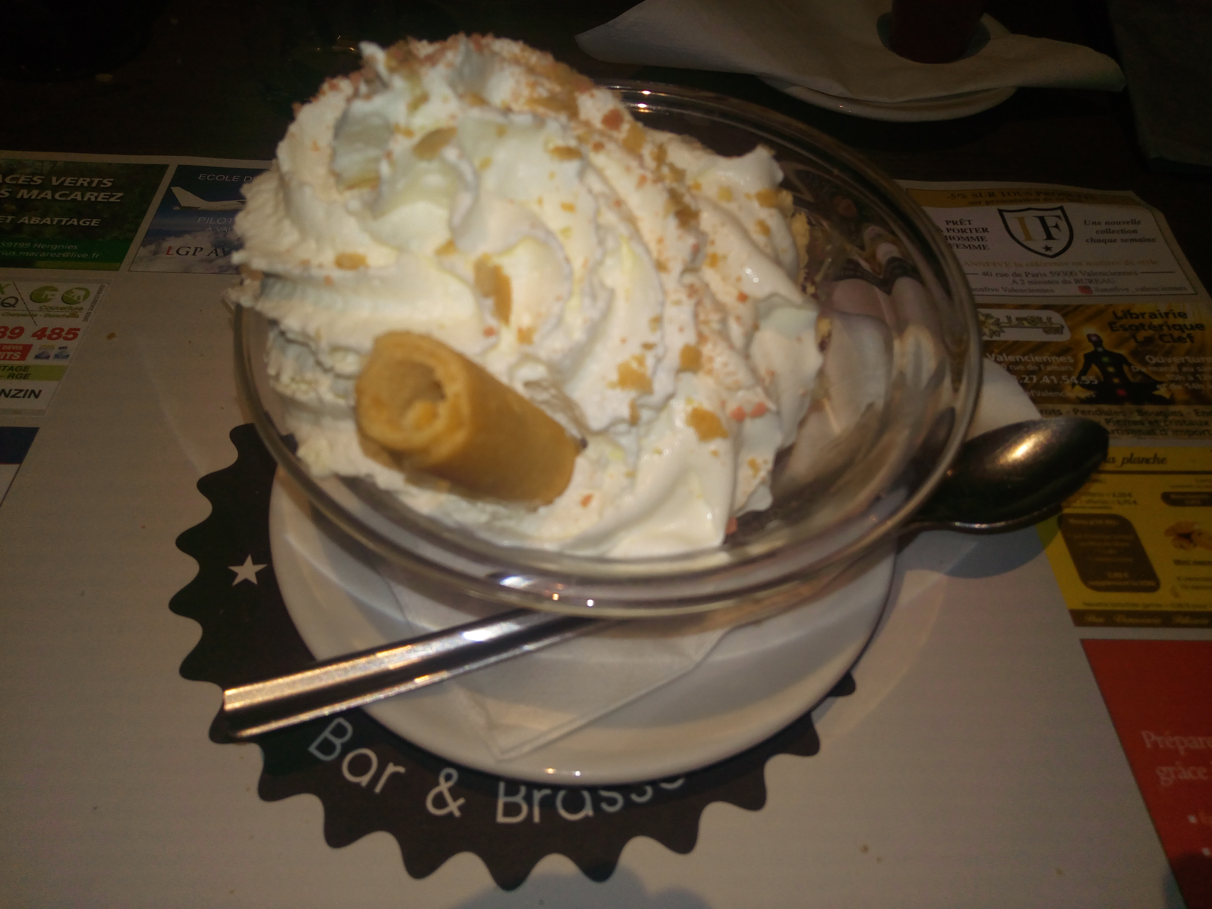 On est venu boire un verre lors de notre passage à Valenciennes. Bon que je paie 4,90 euros pour une bière, c'est un poil cher mais ça passe mais payer quasiment le même prix pour un petit chocolat chaud dans une petite tasse, c'est abusé, c'est le prix qu'on paie sur Paris.