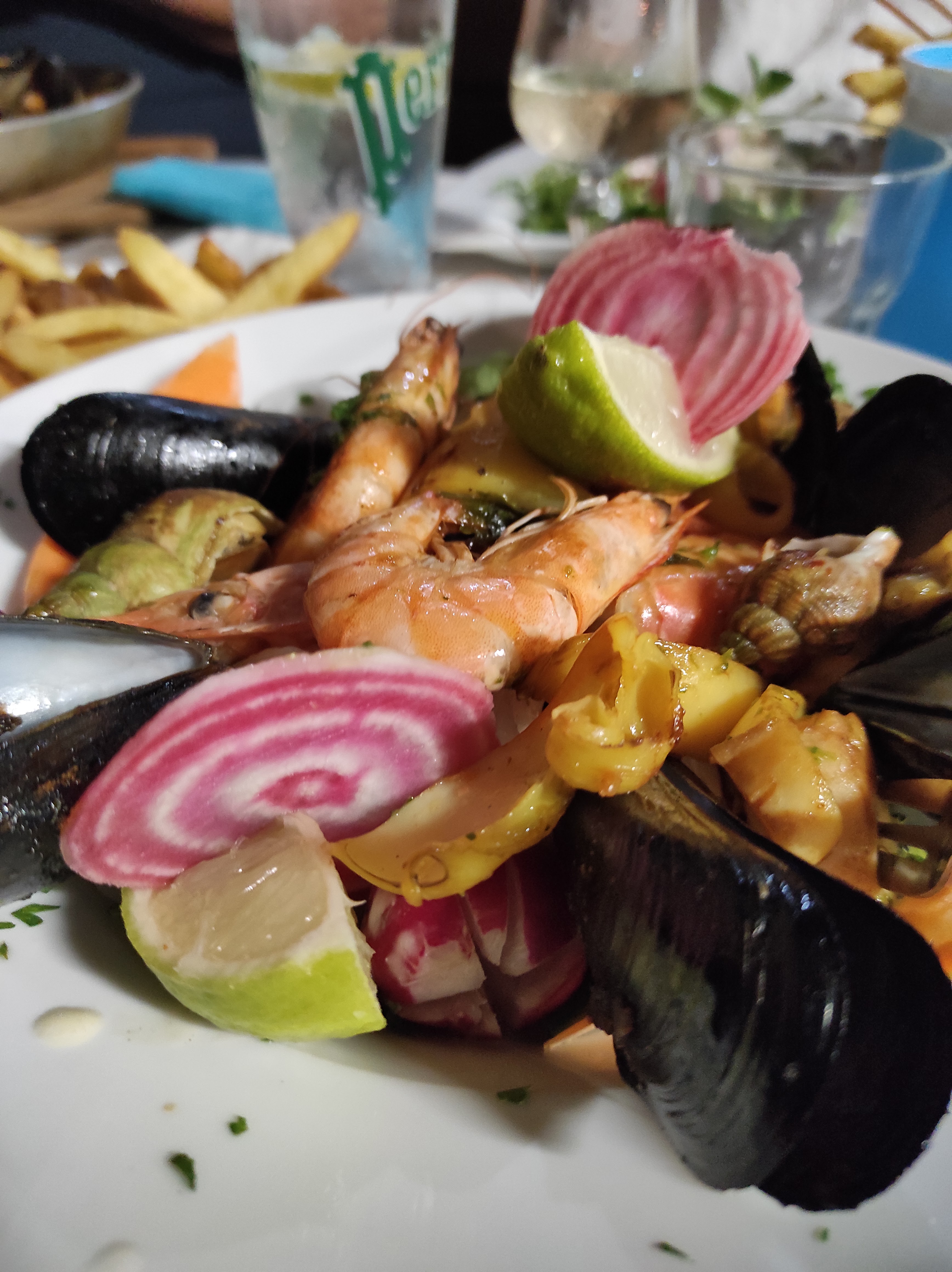 C'est la deuxième fois et certainement pas la dernière..nous reviendrons avec le même plaisir, nous régaler....plats copieux, fait maison..je me suis régalée avec les moules...délicieuses, servies avec crevettes et calamars, petits légumes, leur recette, délicieuse....sans parler du cadre et les pieds pratiquement dans le sable. Et la cerise sur le gâteau, est leur humour et gentillesse.