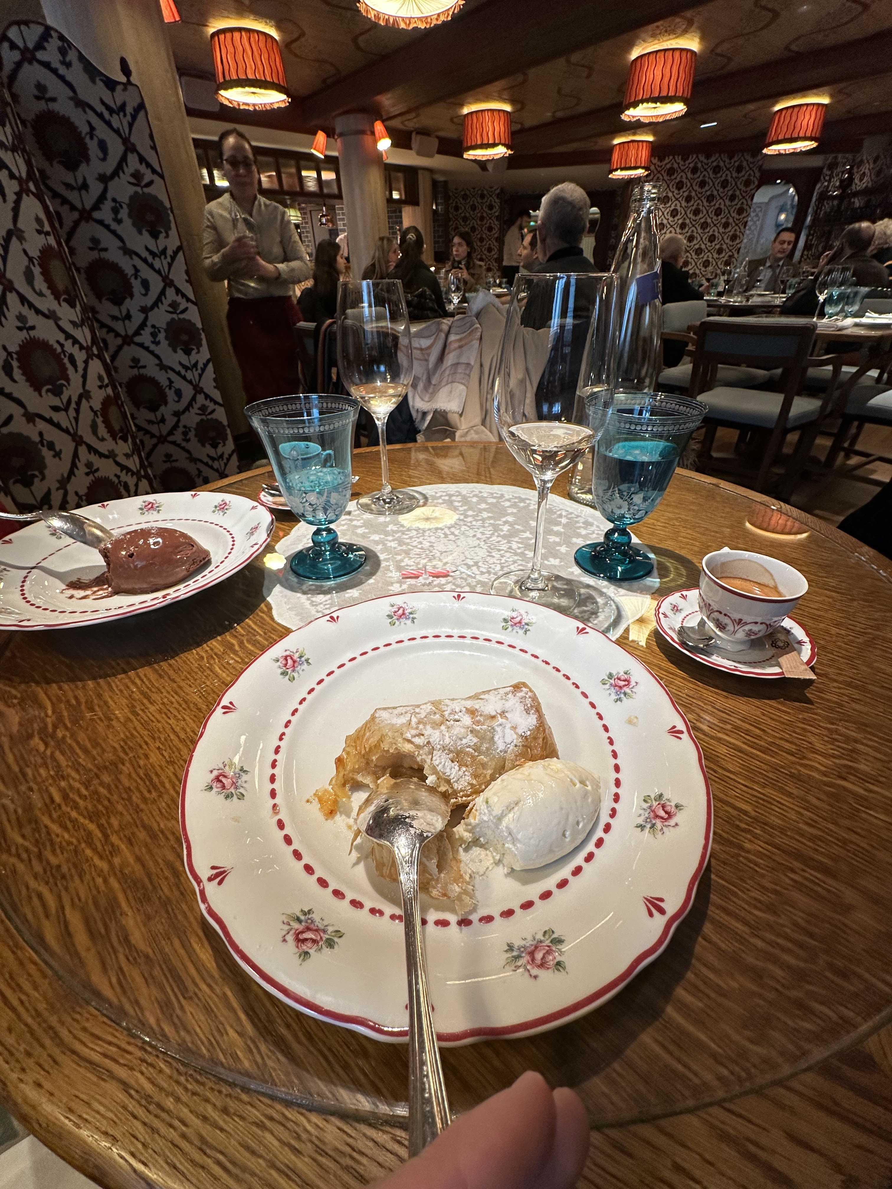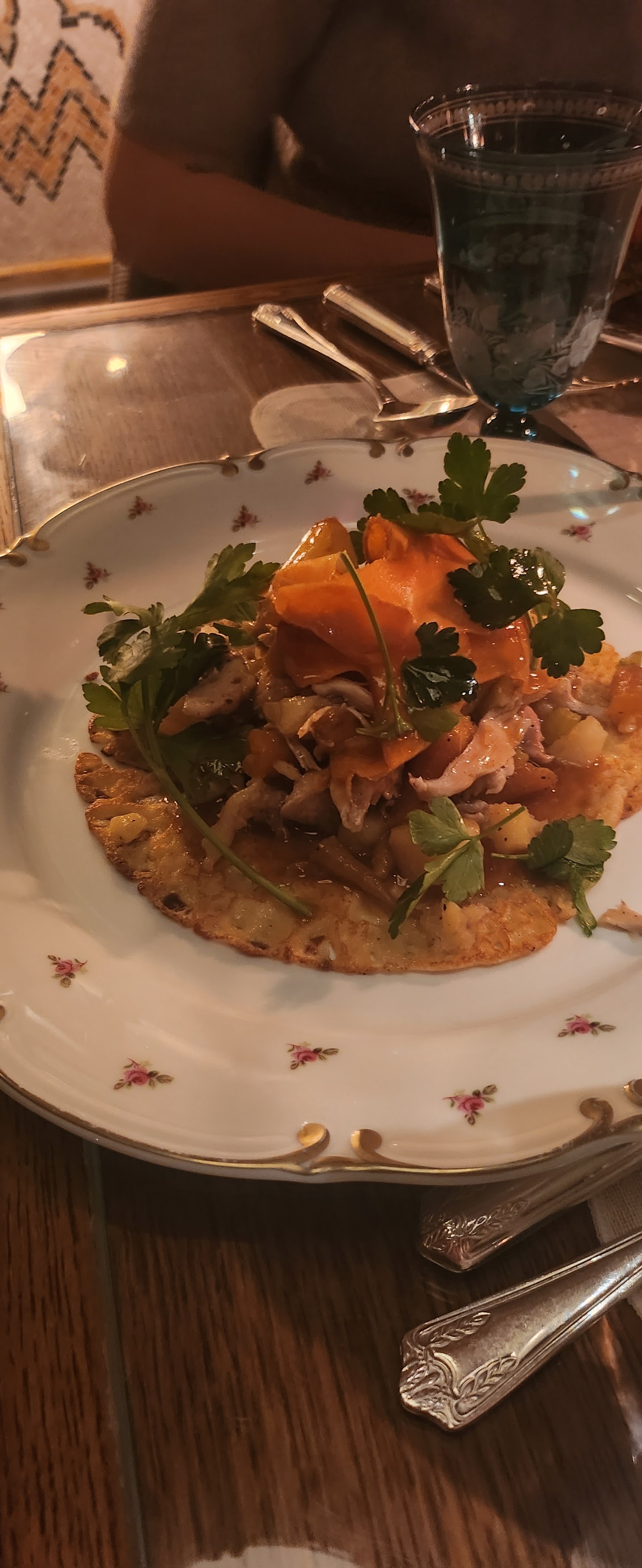 Déçue de ce dîner, cadre sympa et jolie vaisselle mais cuisine très décevante et le vin prix exorbitants 110€ premier prix !!! Nous aimons beaucoup le Tekes mais ici nous ne reviendrons pas.