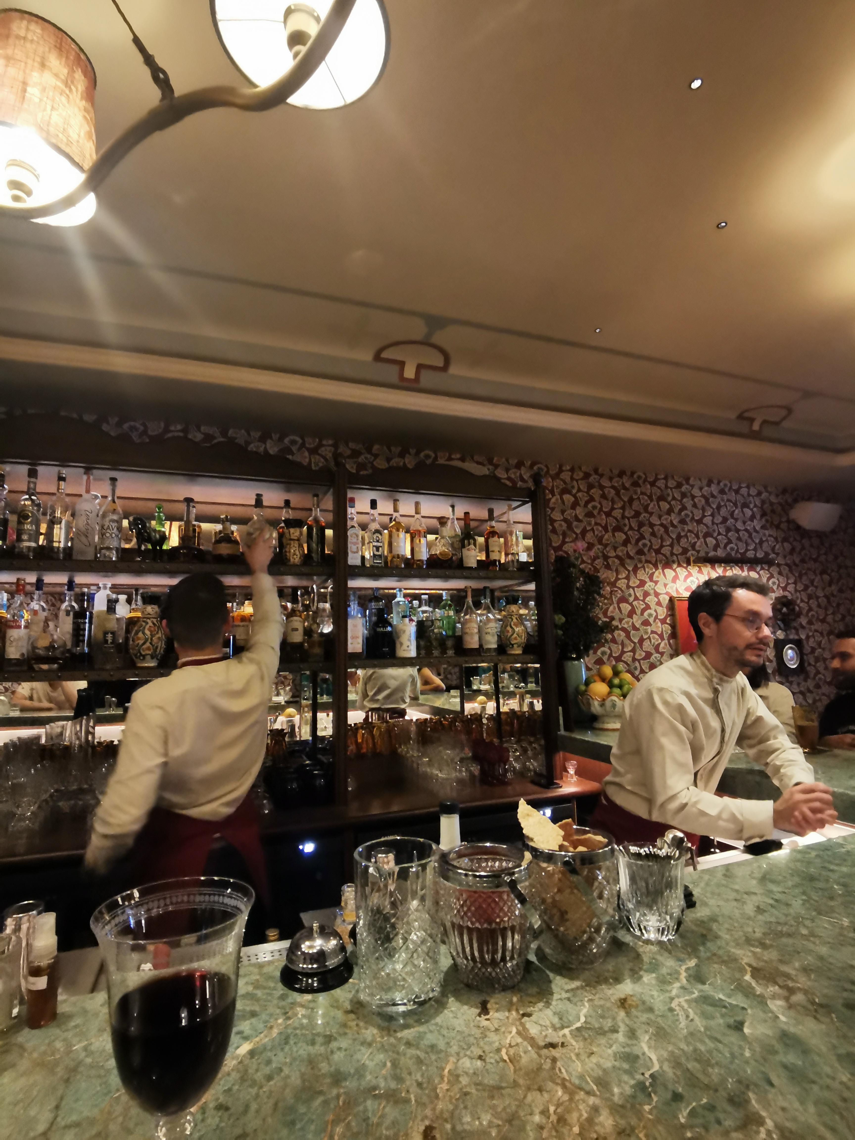 Avec mon ami, nous sommes allés boire un verre au bar du restaurant. Le service est attentionné, les cocktails intéressants et le bar est très beau ! Seul bémol, les serveurs qui se prennent plusieurs tournes de shots au milieu des clients... Un petit malaise. Également, les arrivées criées des clients par les serveurs, pour donner une ambiance chaleureuse... pareil, gênant. Dans l'ensemble une bonne expérience malgré tout !