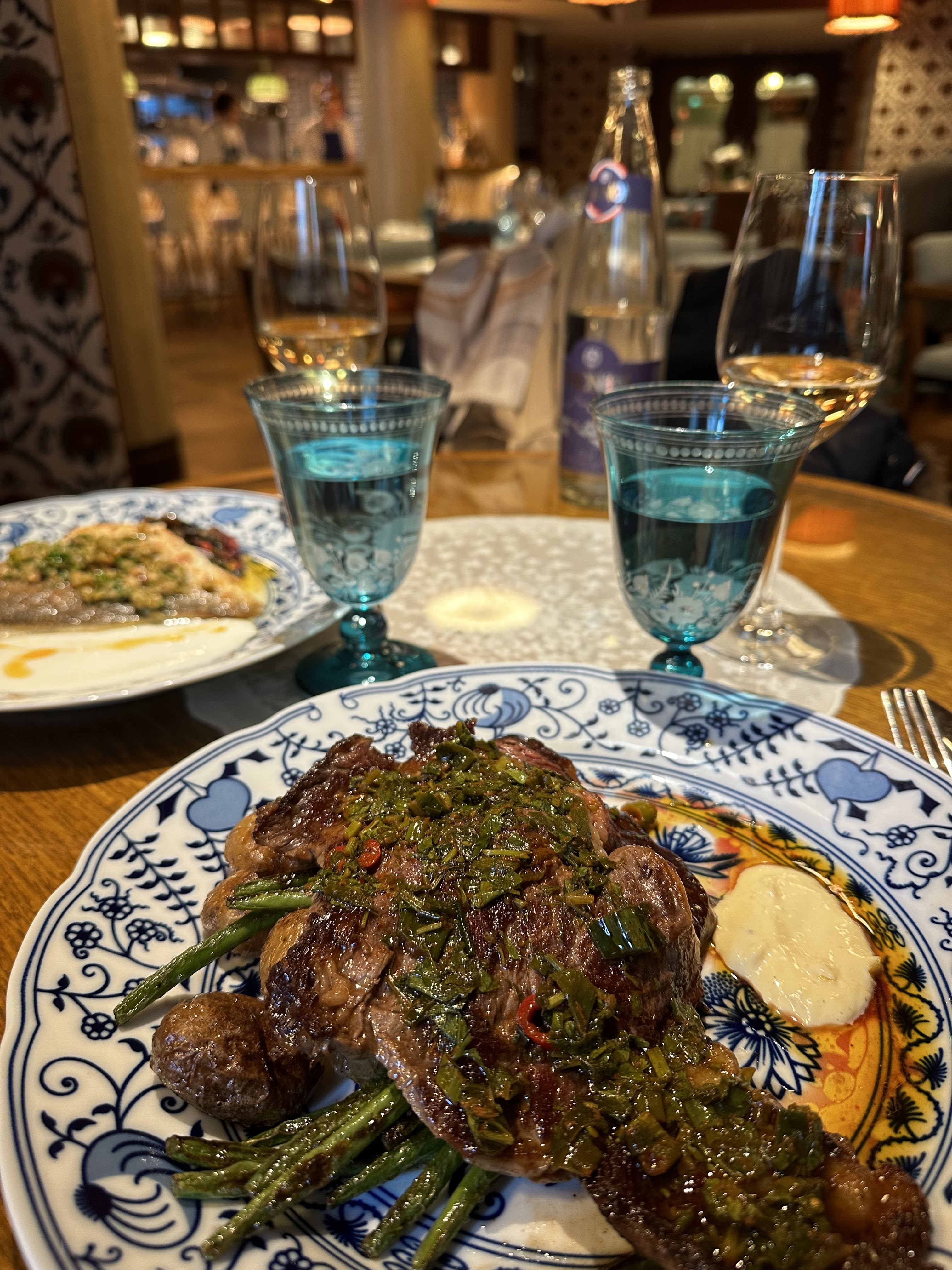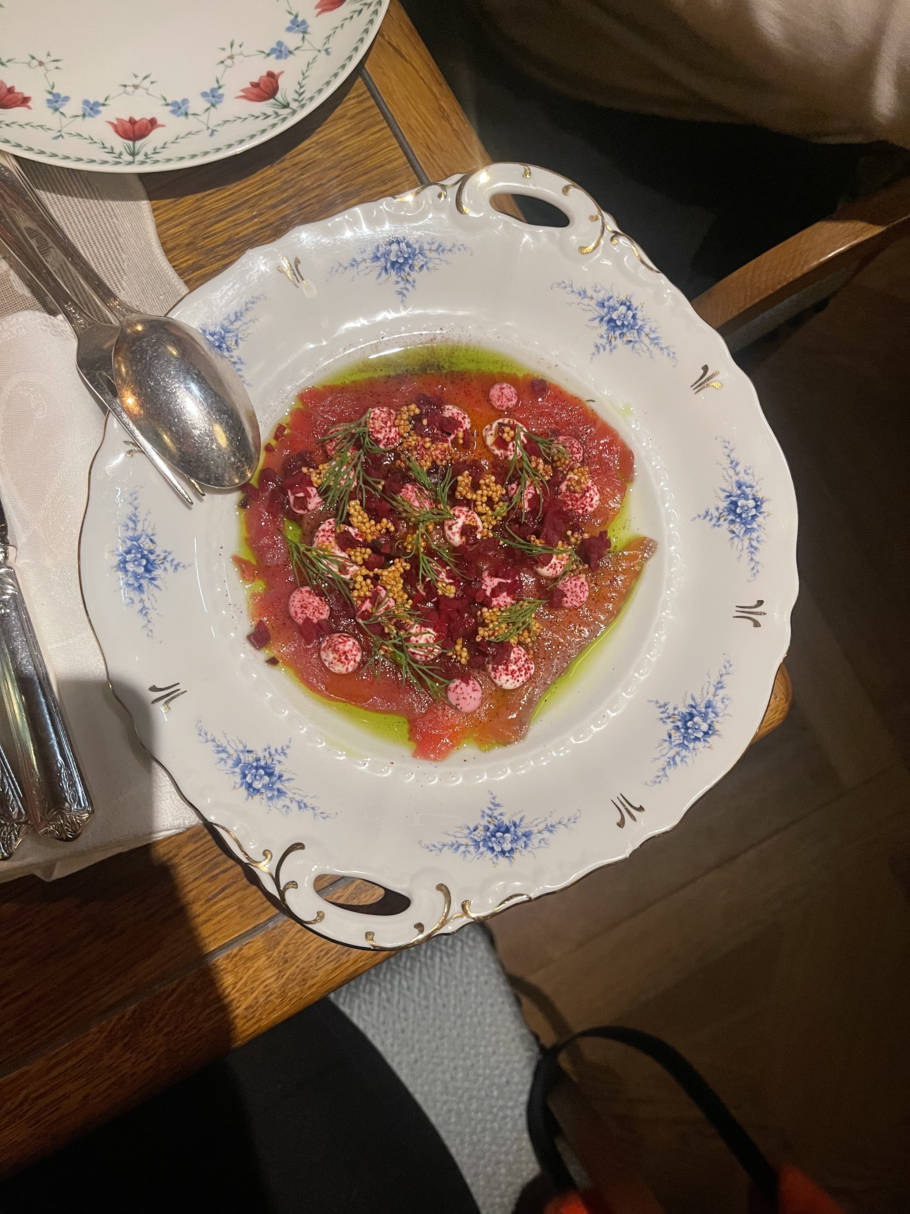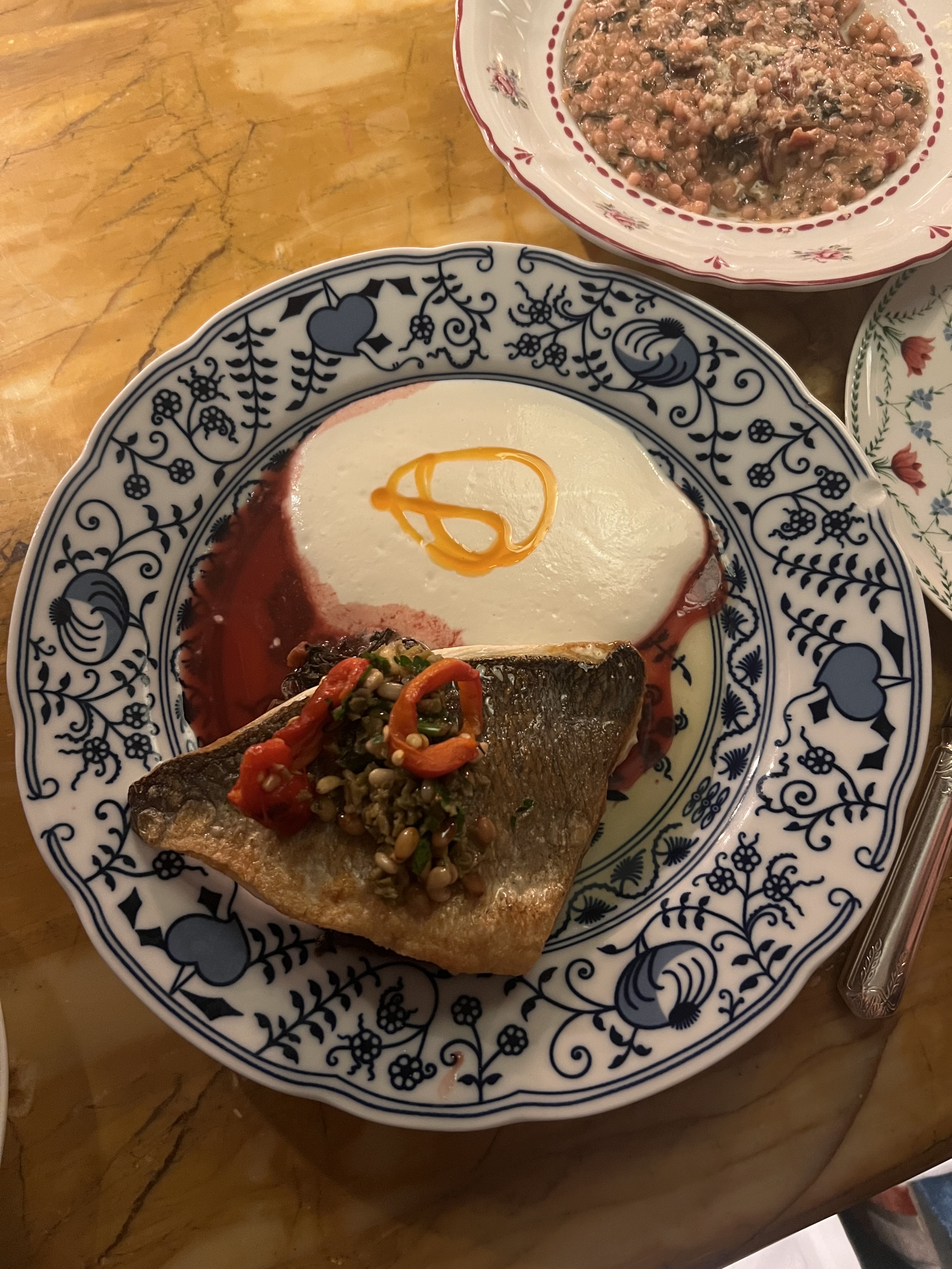 Vraiment pas top au final. Borsch qui ne ressemble à rien, daurade trop cuite avec des épinards flottants. Hareng sec et fumé. Bref c’est pas ashkénaze, c’est pas bon et c’est très cher pour ce que c’est.