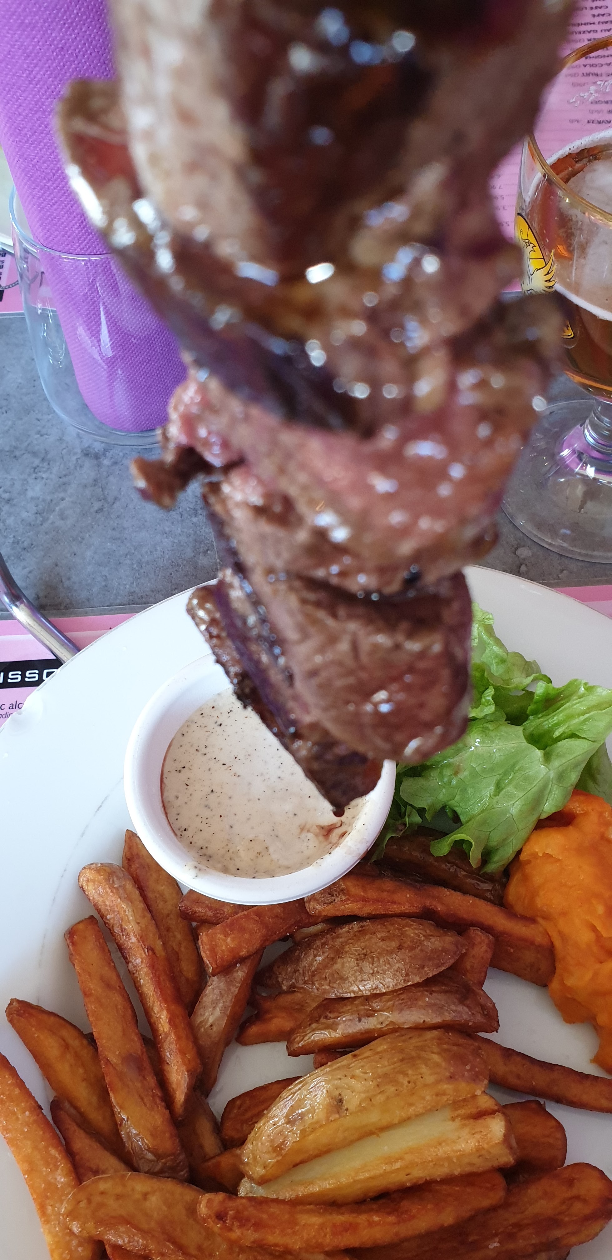 J'ai pris la brochette de boeuf, viande très tendre, les frites sont vraiment excellente. Nous reviendrons.