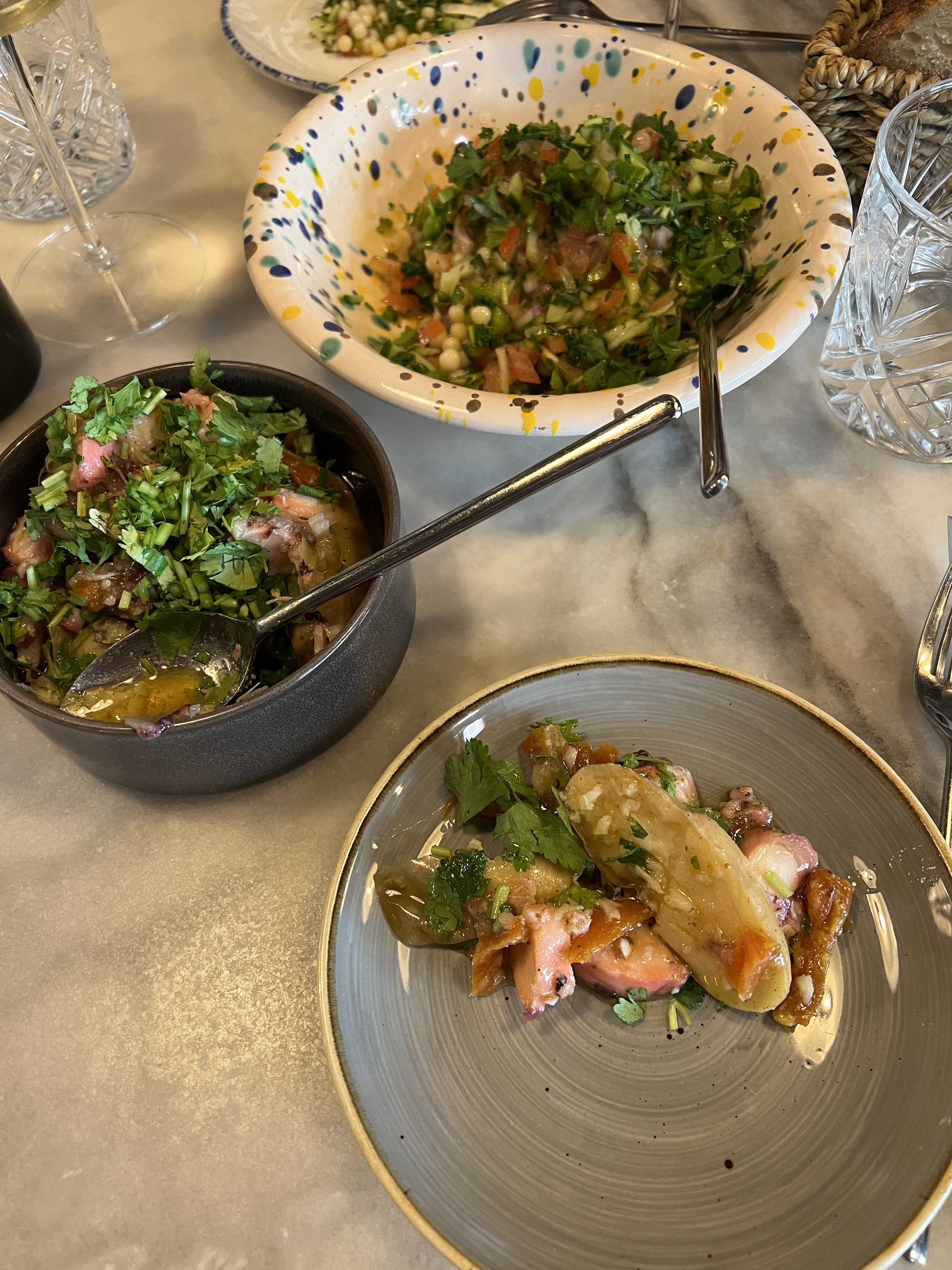 Très peu de nourriture et rien de spécial. Le plat de poulpe est constitué de quelques morceaux de poulpe posés dans un tas de pommes de terre.