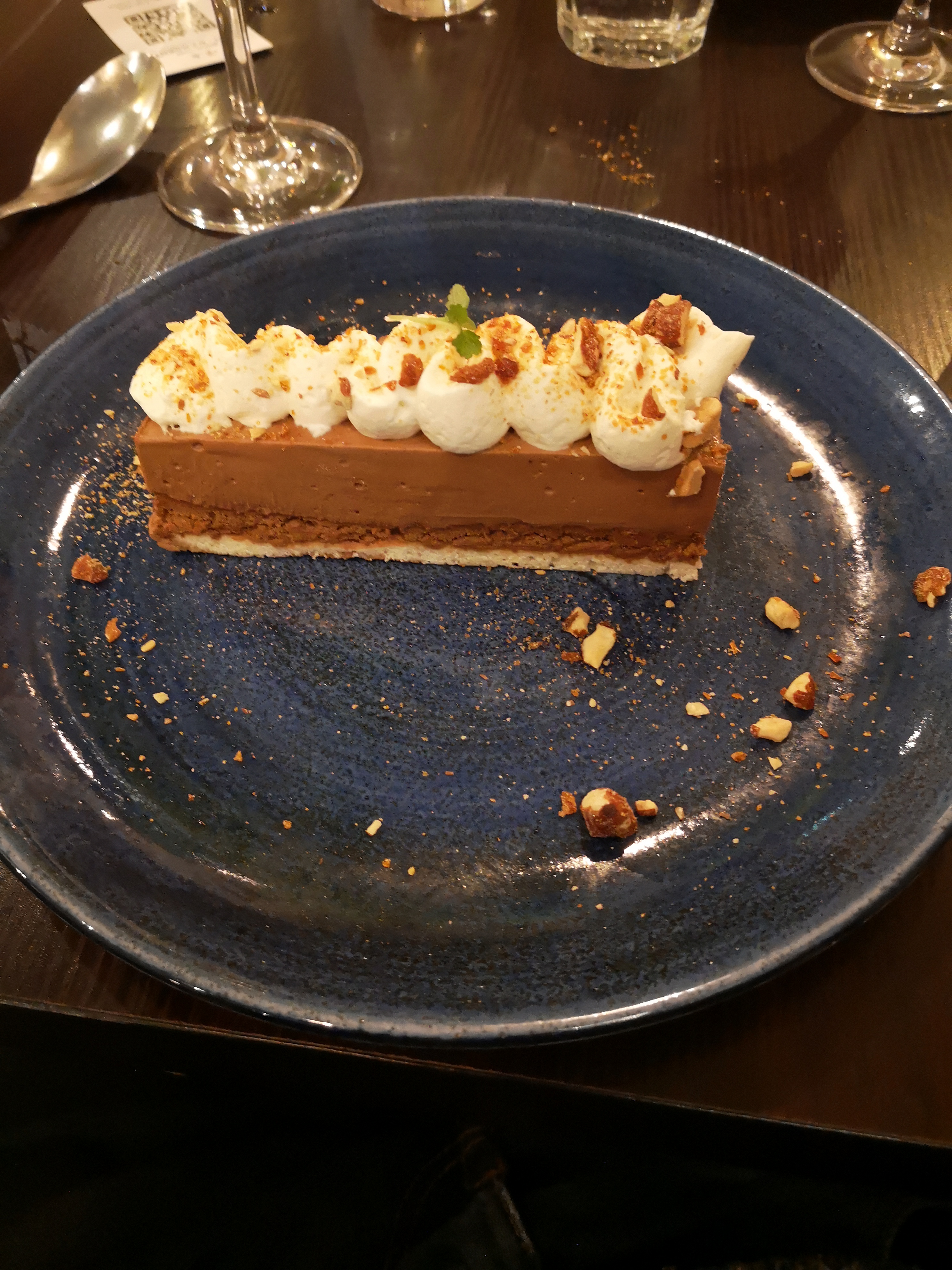 Que dire... Quel bouchon ! Le bouchon Bât-d'Argent est un très bon restaurant, avec des plats typiques de la région Lyonnaise. Leur carte des vins est complète, et variée avec des vins du Rhônes comme des vins de France. L'équipe est très agréable, très sympathique tout en étant très pro. En ce jour de libération et de redécouverte des terrasses, l'équipe était prête, et heureuse de discuter avec ses clients. Sans nul doute une des très bonnes adresses de Lyon ! La tarte aux pralines étant tellement bonne, l'envie de la goûter avant la photo était trop grande...