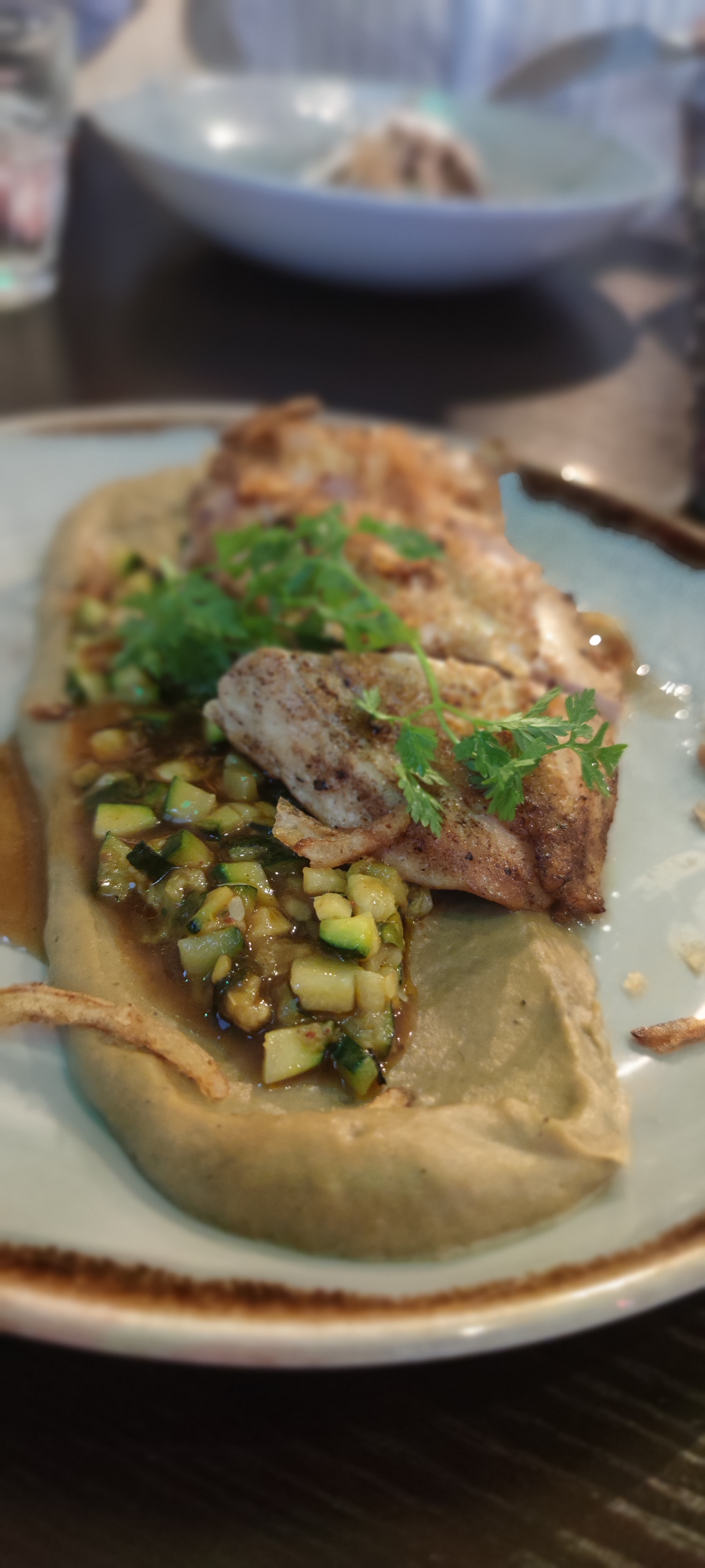 Je me suis régalée. Le dos de cabillaud avec le risotto excellent, l'éclair vanille fraise avec une crème pâtissière qui était délicieuse. Le personnel est très sympathique, professionnel et commerçant. Ne changez rien