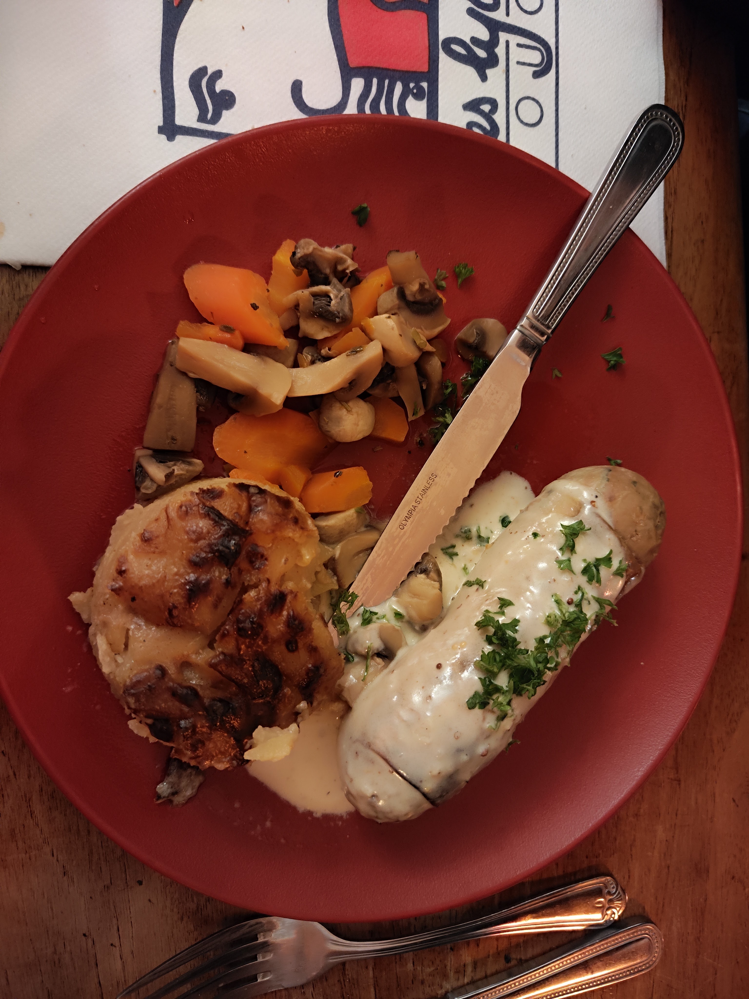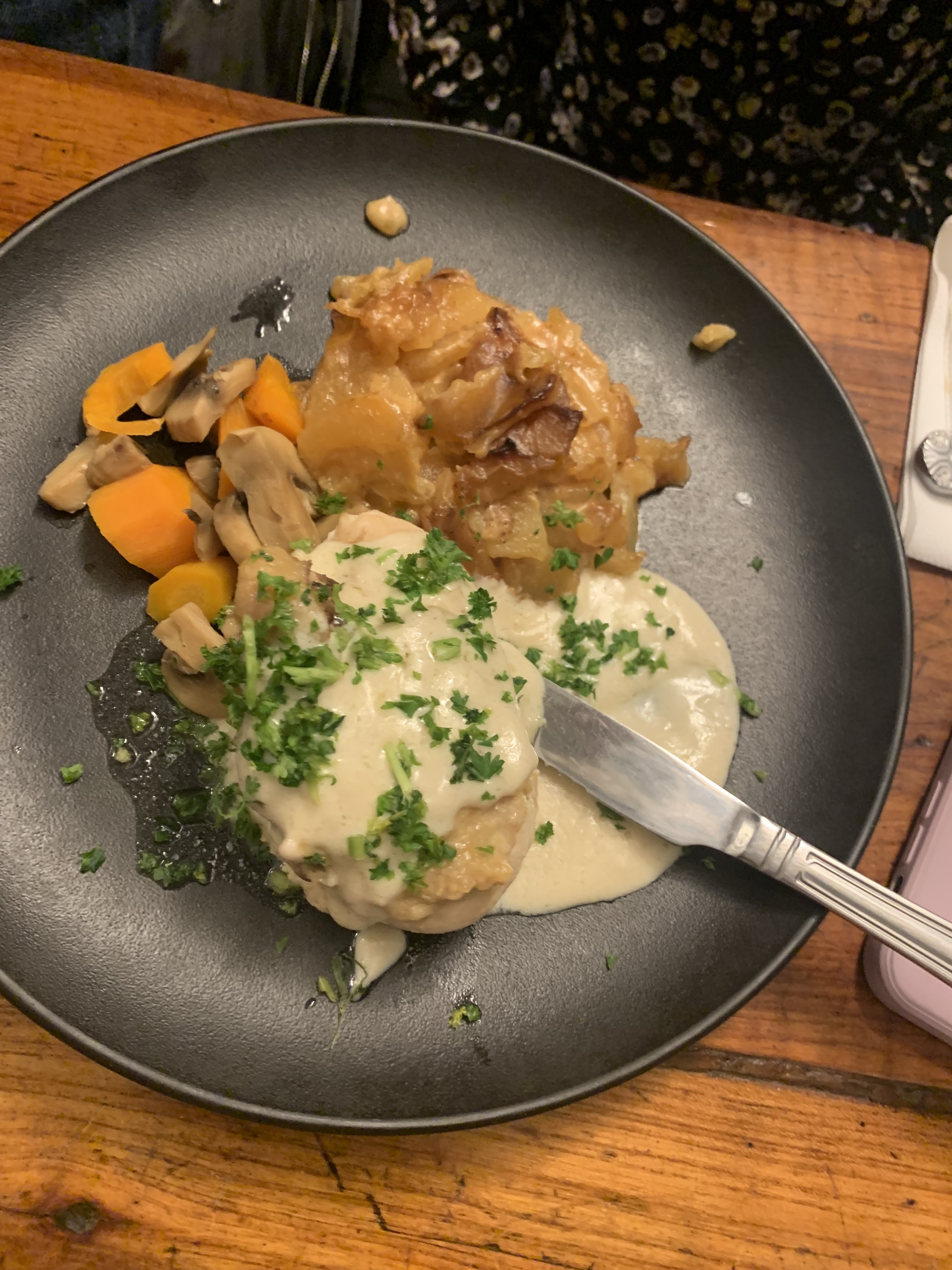 Très très bonne bouffe, on s'est régalés 😋, l'ambiance est au top ! voir même légèrement trop bruyant en salle du bas ☺️ La photo de l'assiette en dit beaucoup ! Vide je n'ai pas laissé une miette 😁
