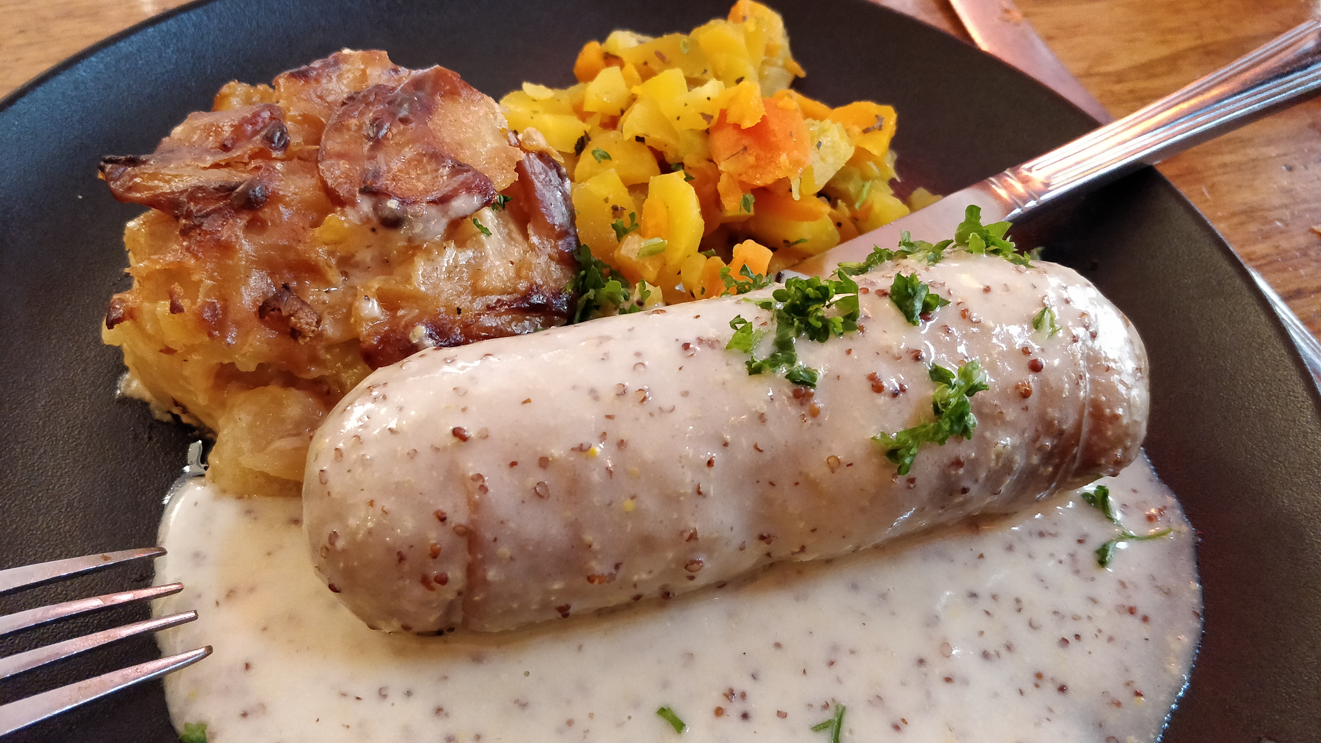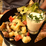 Si l’ambiance est bonne et le service très agréable, il n’en est pas de même pour la cuisine, loin de là. L’insipide caractérise parfaitement une cuisine manquant cruellement d’âme. A commencé par la salade de lentilles et de cervelas dans laquelle j’ai dû fouillé longuement avant d’y trouver quelques minuscules morceaux d’une saucisse peu goûteuse. Sans compter les morceaux d’une tomate fade - mais comment en vouloir à ce délicieux légume, nous ne sommes tout compte fait qu’en février. Puis est venu le tour du classique Tablier de sapeur. Une première pour moi. Sans élément de comparaison je me contenterais de dire que la texture était agréable, mais qu’il n’avait aucune sorte de goût sinon celui de la chapelure. Enfin j’ai eu le droit à une version fainéante de l’habituellement délicieuse cervelle de canut. Peu d’assaisonnement, pas de vinaigre, trop d’échalote … En somme un dîner gustativement désagréable dans un établissement touristique ? Ou qui surf sur une gloire passée ? Je l’ignore et ne chercherai pas à le savoir.
