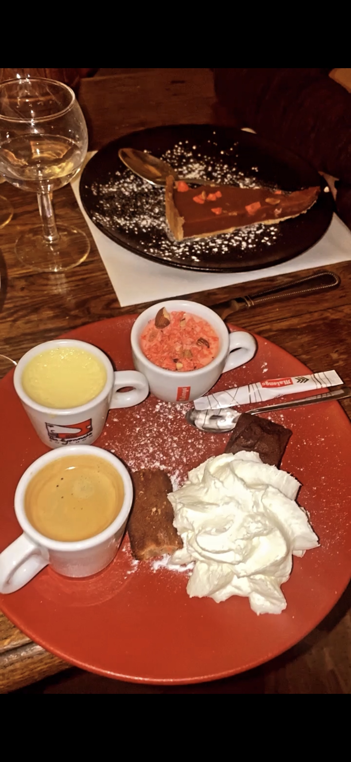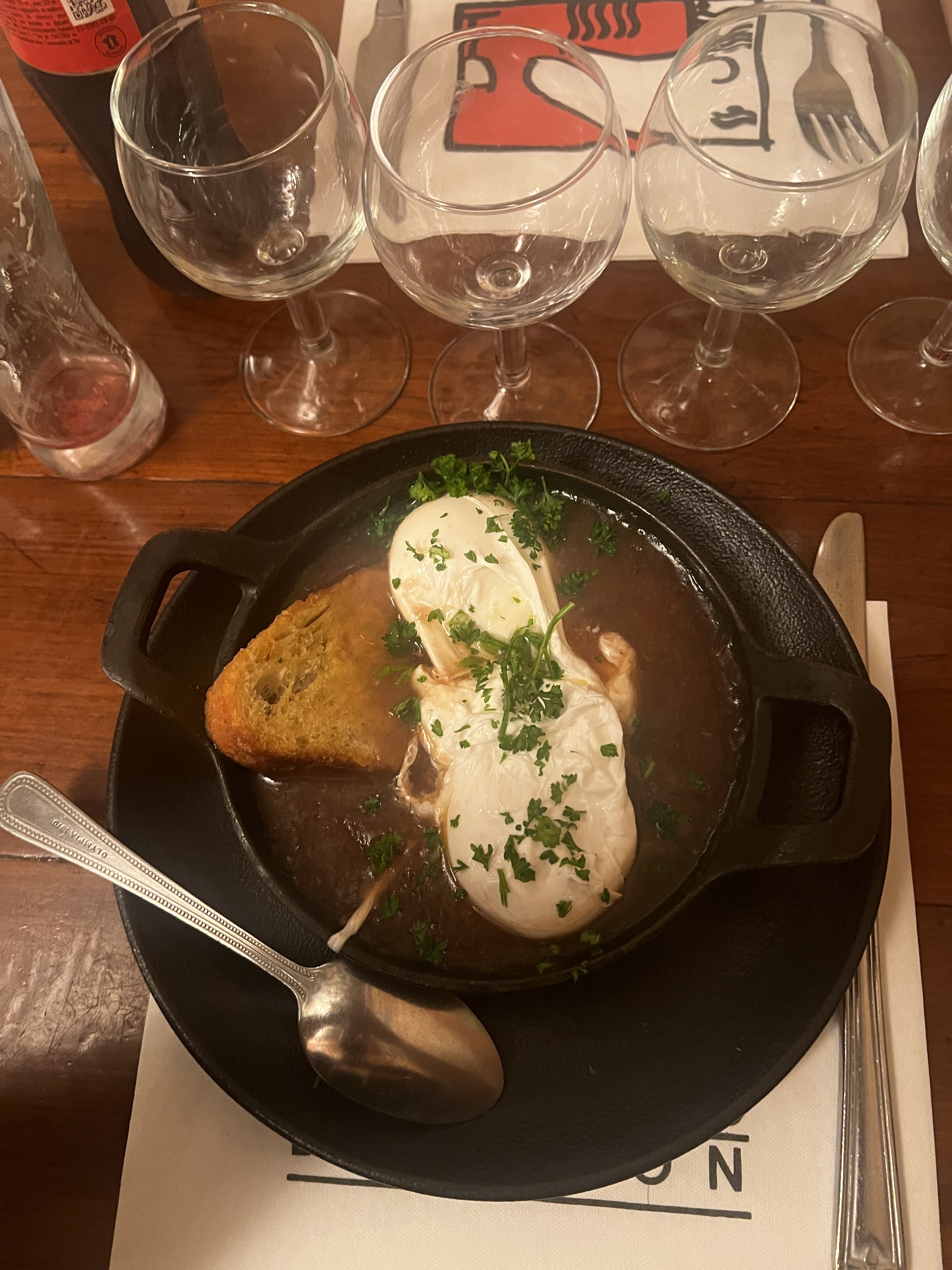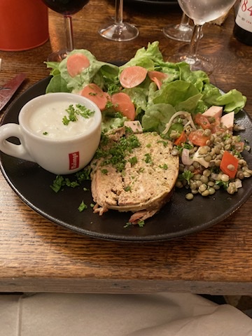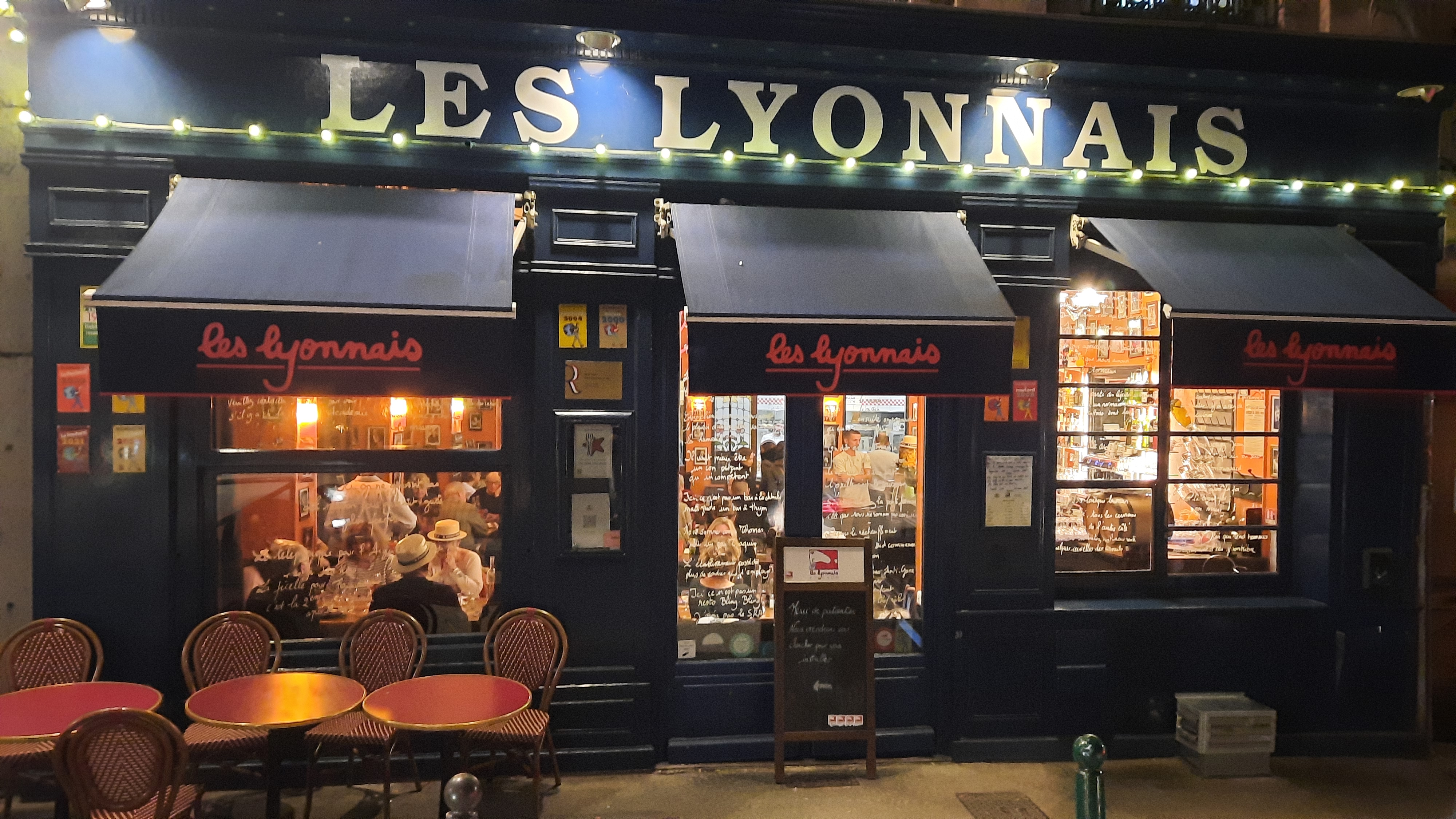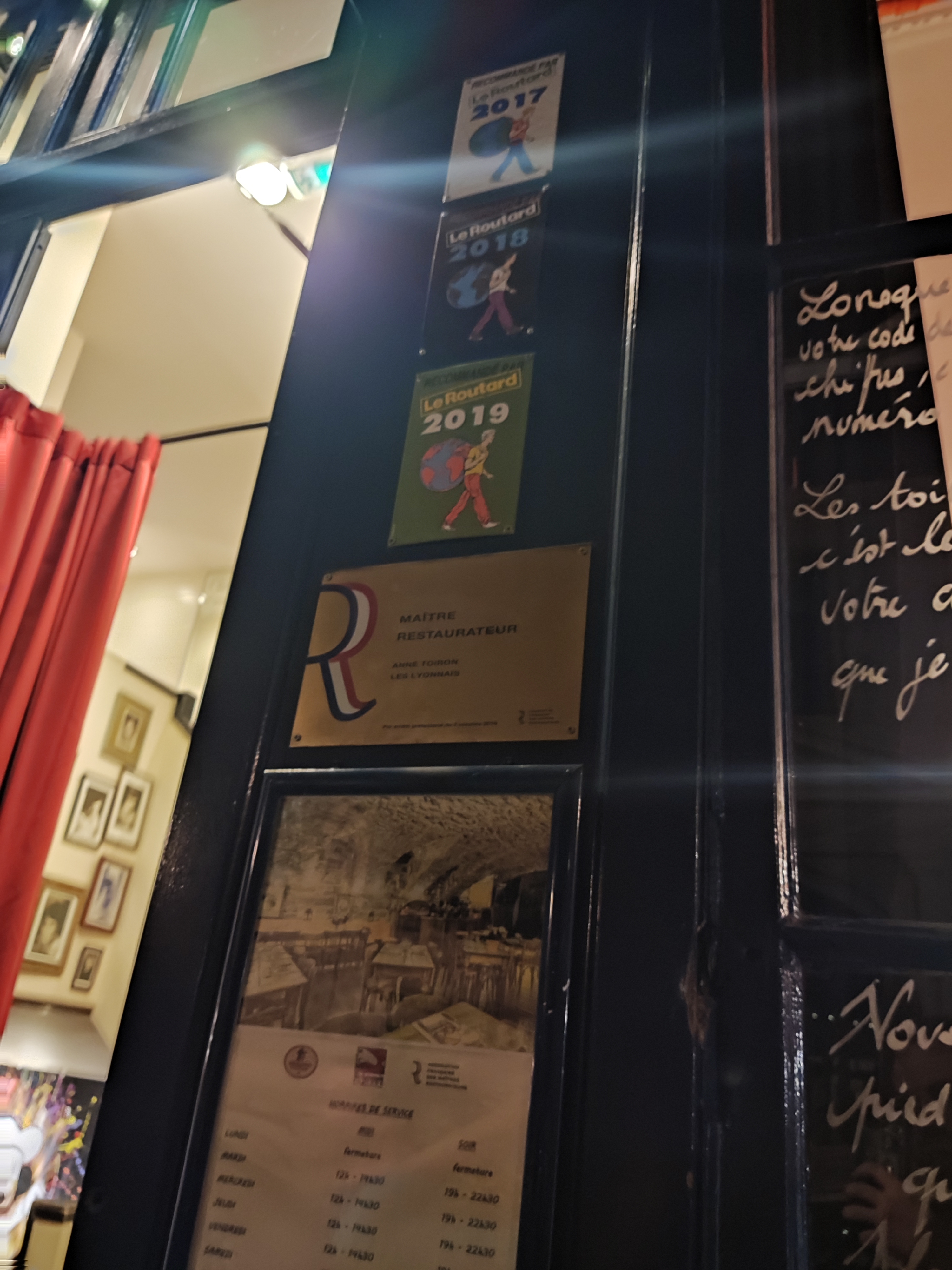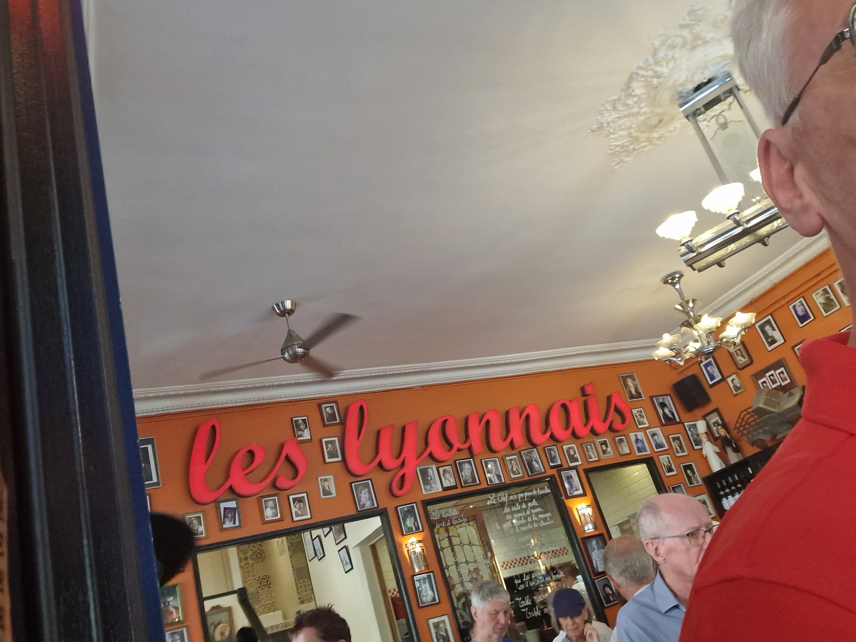🇨🇵 🍽 Les Lyonnais, Lyon C'était un rêve d'aller manger dans un bouchon (comprenez restaurant typique à Lyon). Voilà c'est chose faite, la vie est belle! Merci du conseil! Mais je ne savais pas qu'il fallait arriver tôt, car à 19h20 c'était déjà complet!! Alors ce fût un partage de table avec de très sympathiques inconnus, pas plus lyonnais que moi. Ambiance chaleureuse et beaucoup d'humour accompagnèrent ce délicieux repas traditionnel. Rien à redire. Conseil 1 : venez tôt! Conseil 2 : goûtez le Prestige (côtes du rhones) Conseil 3 : goûtez le rhum arrangé!