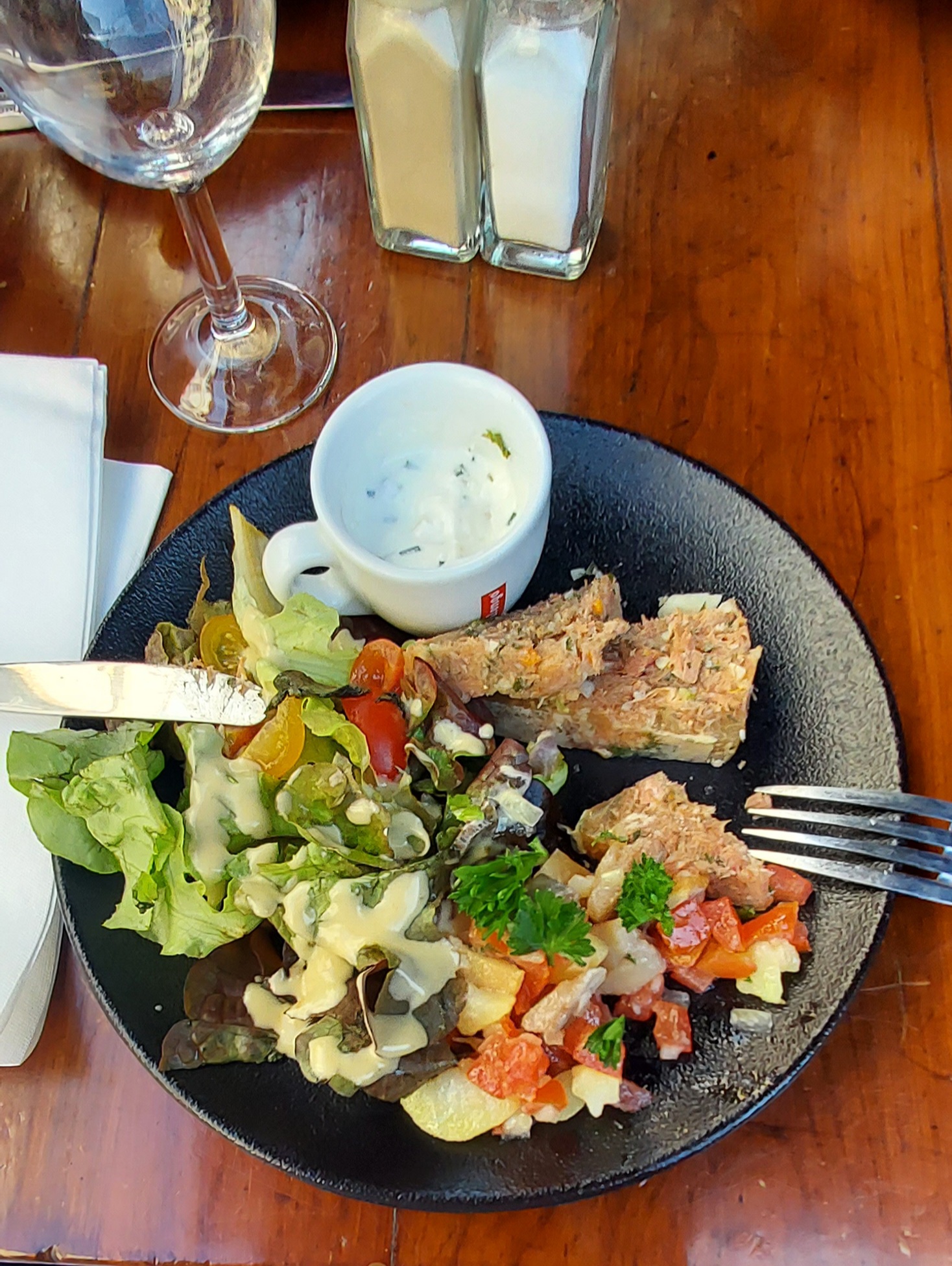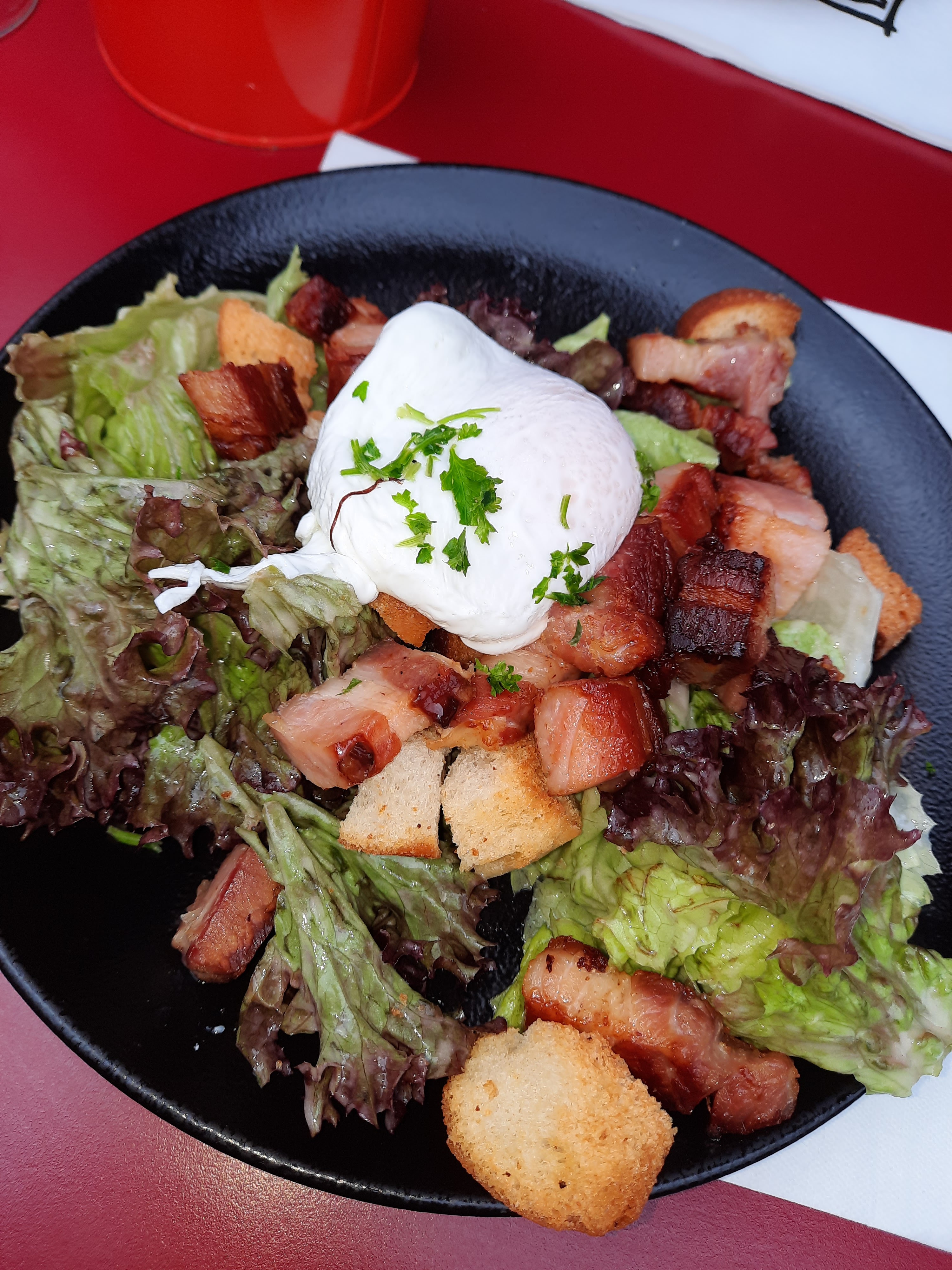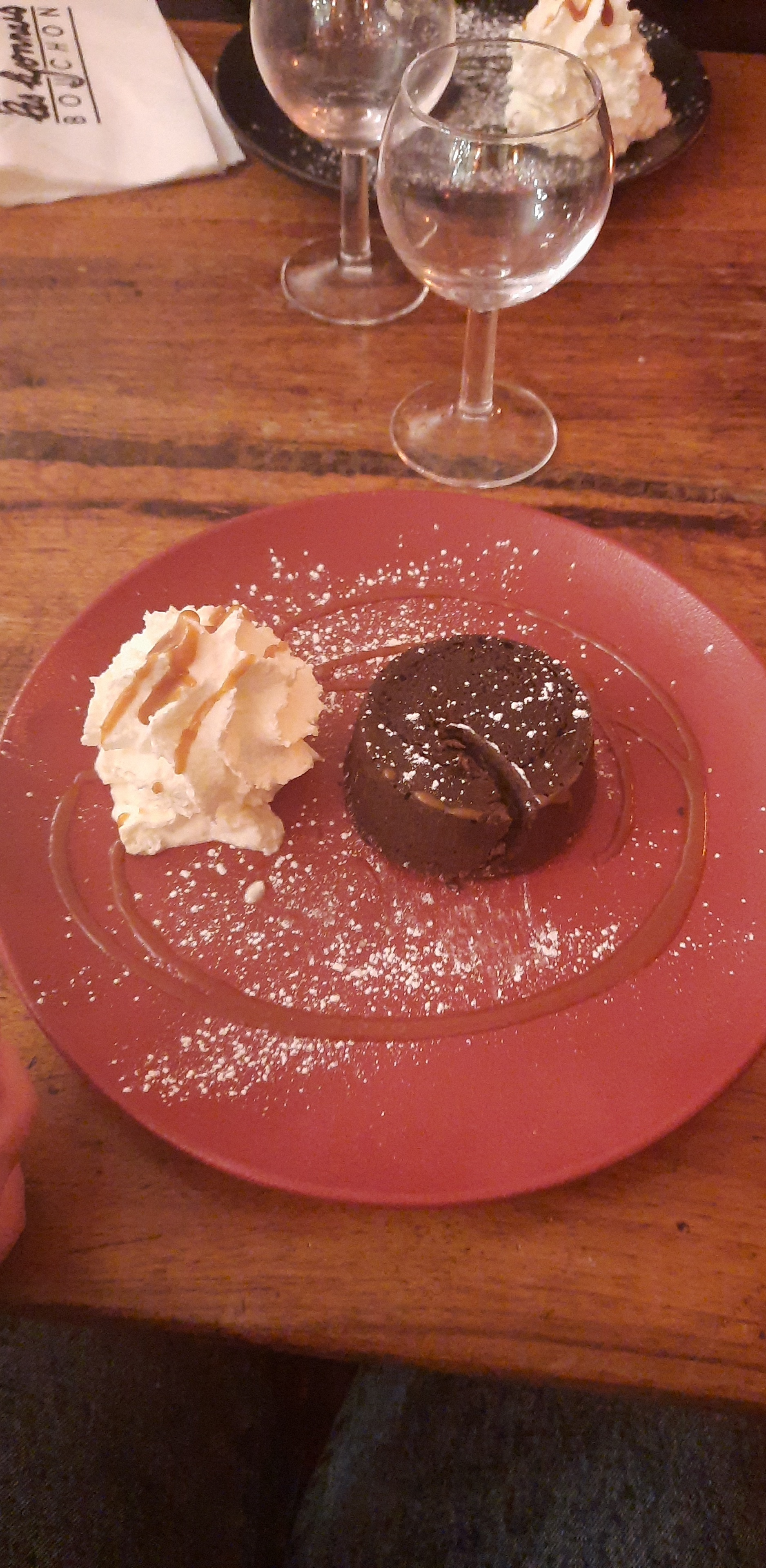 Le pain de la salade était trop dur, c'est-à-dire qu'il n'était pas croustillant. La viande était brûlée. Les desserts étaient très mauvais, même un dessert censé contenir une délicieuse crème faite à la main a été servi avec de la crème fouettée industrielle pressée à partir d'une bouteille prête à l'emploi. Je n'avais jamais entendu parler de la réputation des restaurants Bouchon de cette manière. Ce fut une déception pour moi.