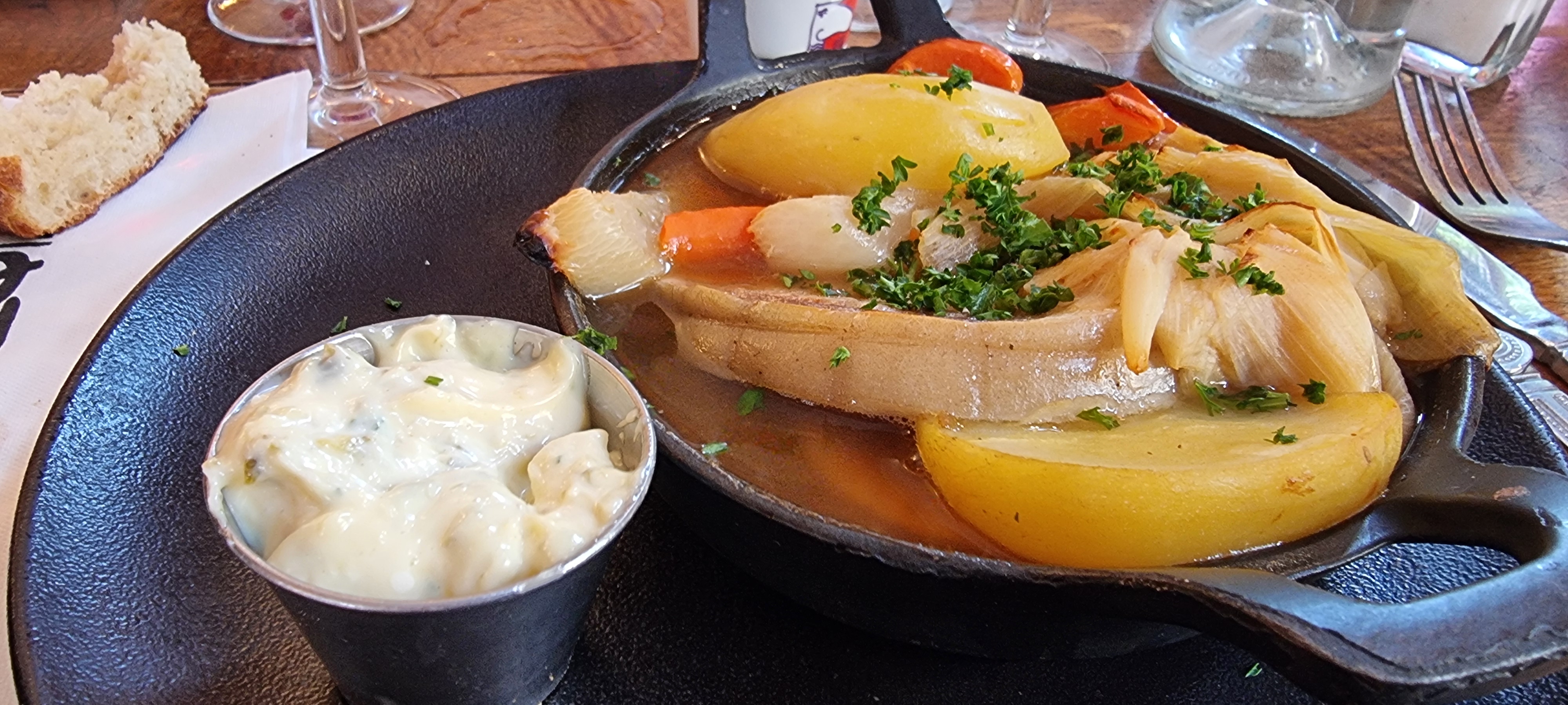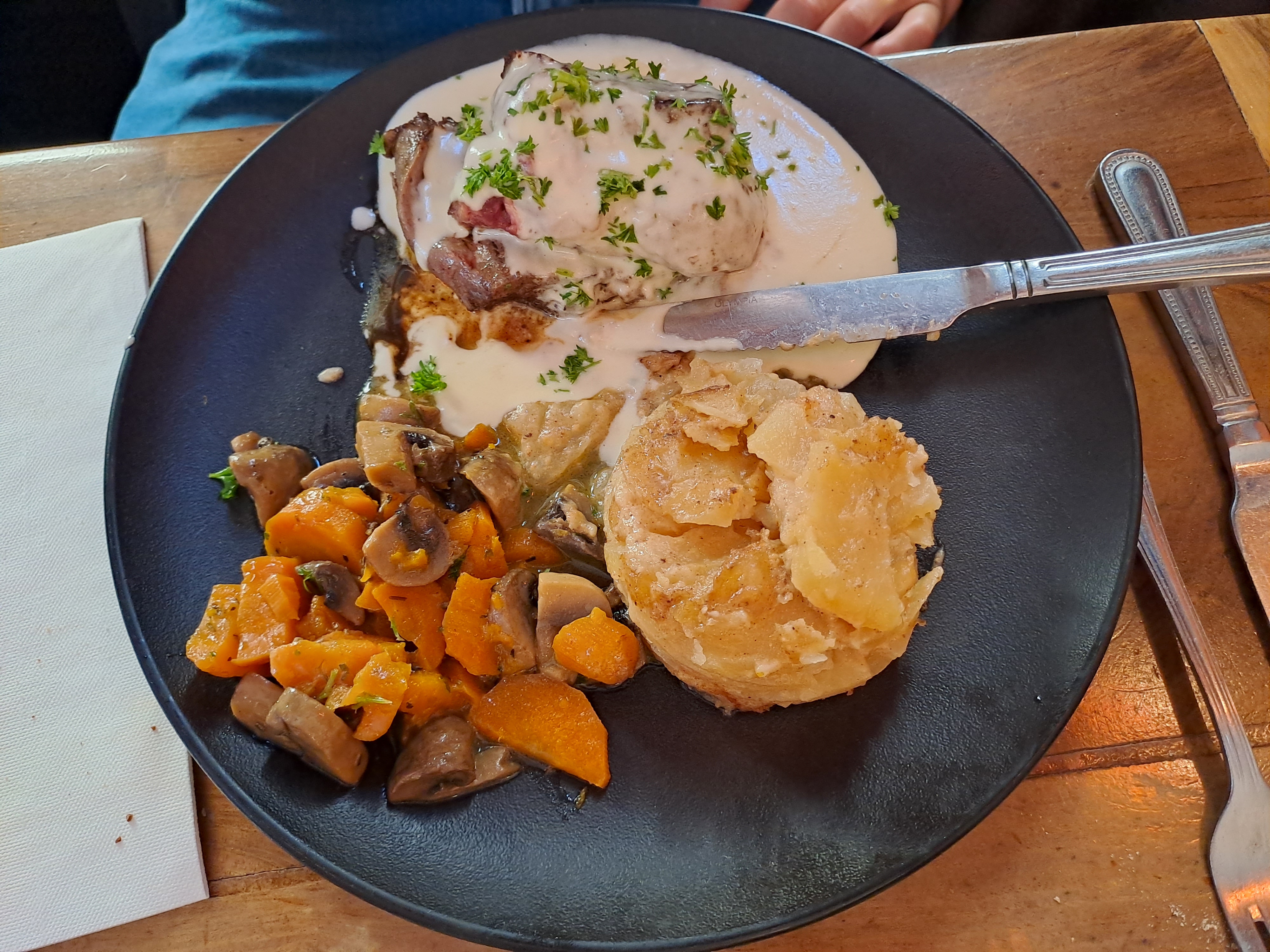 Accueil dans les règles sanitaires en vigueur. Personnels sympathique et attentionnés. Déçu par le filet de boeuf à la carte remplacé par une entrecôte (facturée malgré tout à 24.90€). Belle déco intérieure. Voilà ça reste un endroit typique mais onéreux.