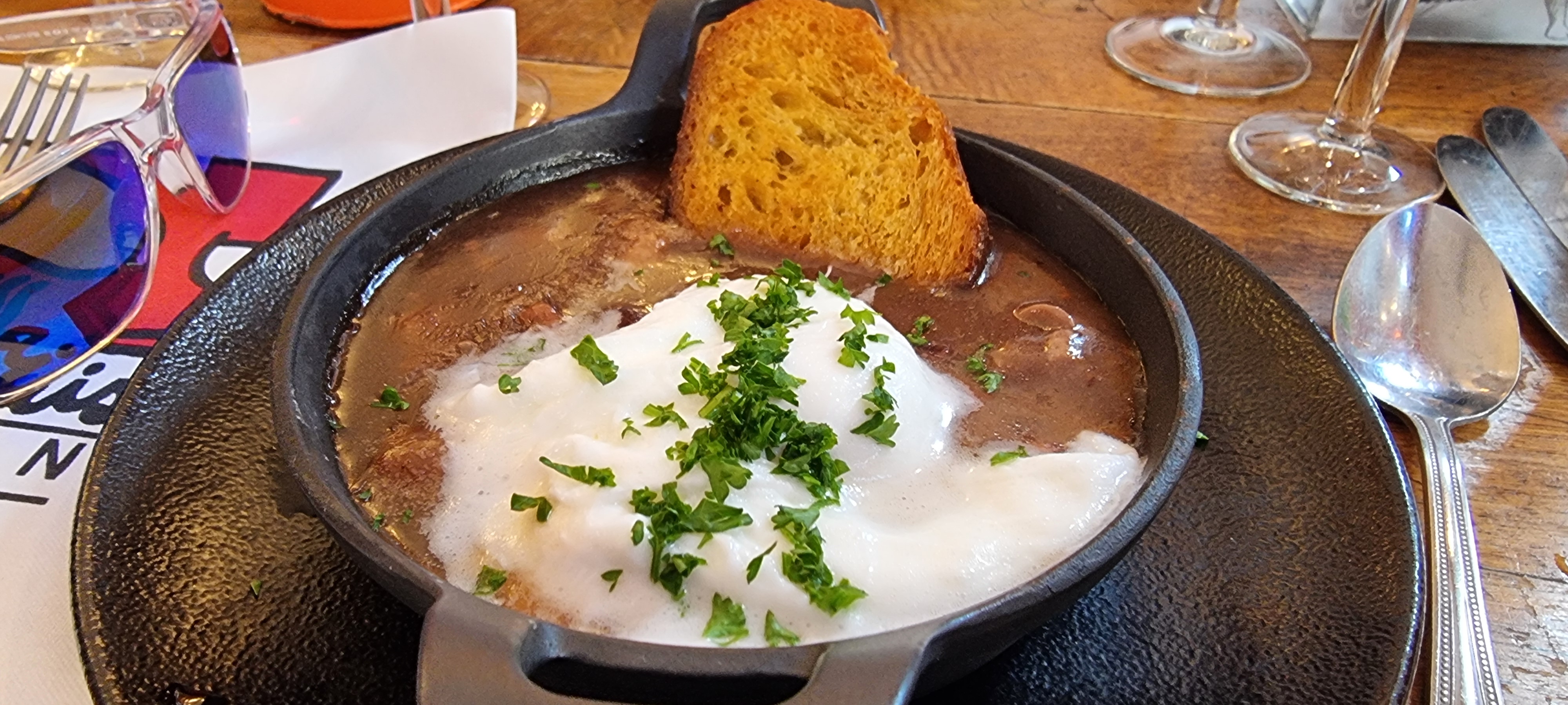 Menu exceptionnel !! Oeufs moeurette, saucisses, côté de boeuf (une tuerie), raviole bref je recommande!! Le personnel hyper sympa, très convivial ! Foncez y les yeux fermés ♥️♥️